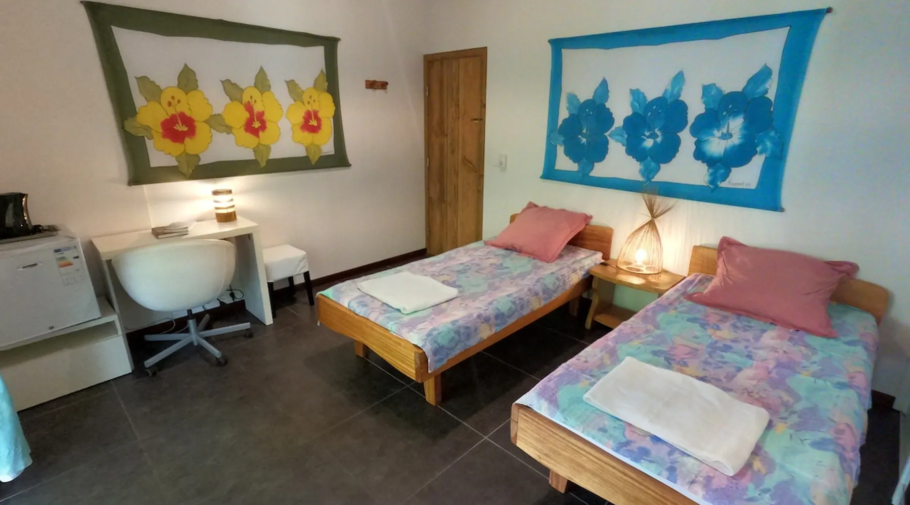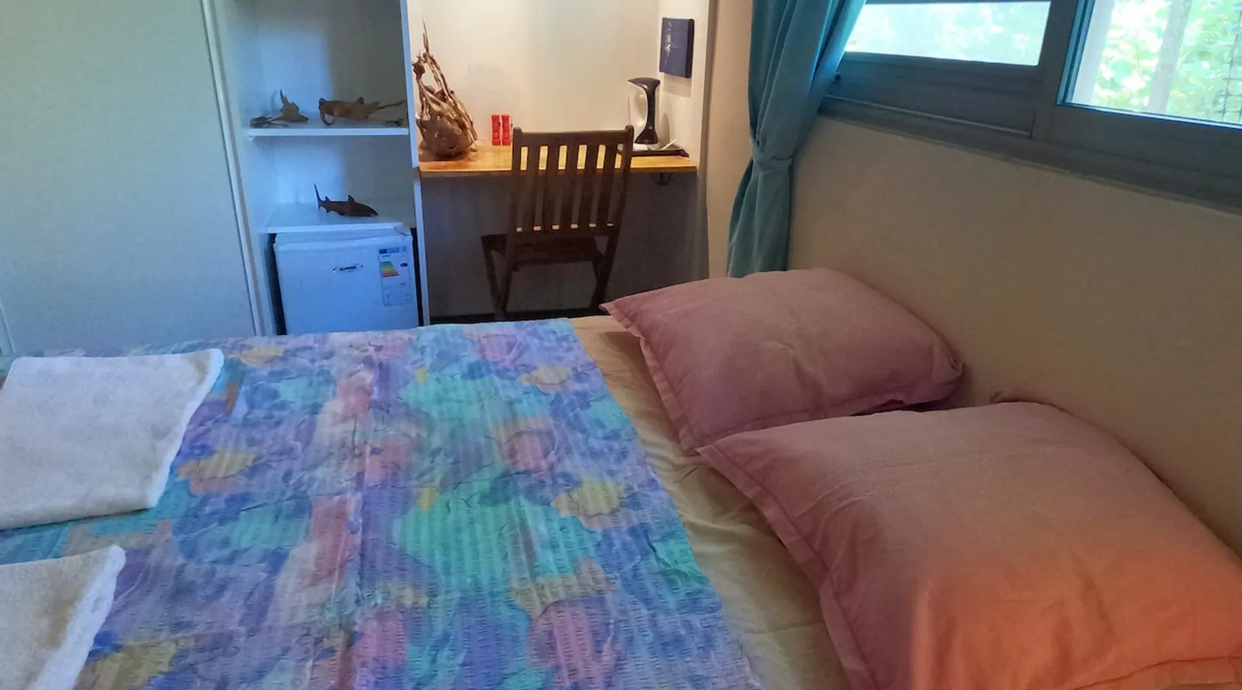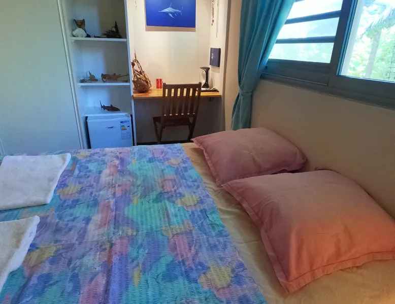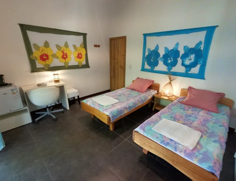 Our charming fare will seduce you with its flower garden close to the lagoon and its beach. We are located 5-10 minutes by bike from the Tiputa pass, where you will find snacks and shops. In order to discover the island, we lend you bicycles for free. We can also help you organize your stay by contacting service providers (diving clubs, excursionists). It is really with great pleasure that we will help you. The space 1 bedroom on the lagoon side (2 single beds) and 1 bedroom on the garden side (1 double bed) with independent entrance. Accommodation overlooking the lagoon. Mini-fridge and electric kettle in each room. Microwave and crockery available. We do not do half board, but breakfast is possible (with extra) on request when booking. In order to reduce plastic waste, we offer you unlimited drinking water for free. Guest access Deck and garden to share with us and our 6 adorable cats. Other things to note Non-smoking house. We will pick you up at the airport, for this, let us know your time and flight number. Registration Details Exempt