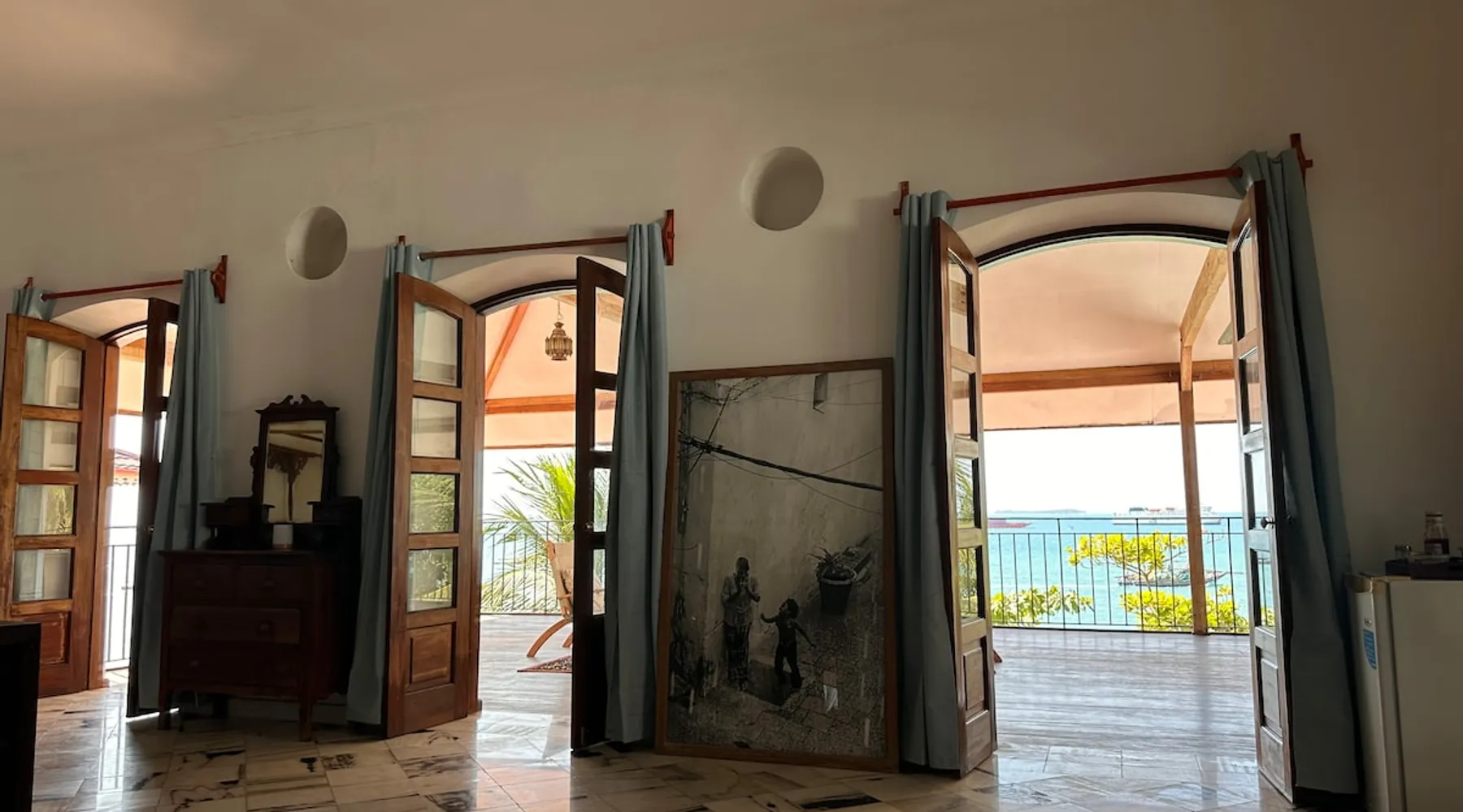 This amazing 150+ square meter apartment is situated in the heart of the Stone Town in Zanzibar. On the third floor of the first British Consulate in East Africa., it is a walk through history. Livingstone, Burton, Speak, Kirk, Grant and Nishal have lived here at some time in history. Its veranda has wonderful views of the sea, beach and Forodhani Gardens. The sunsets from it are amazing. Its minutes away from the best restaurants, bars, ATM machine, post office and taxi stands. Guest access They have access to the entire spacious apartment all to themselves. Other things to note The apartment is in an old historic building up a flight a stairs above a restaurant on the beach. There is usually nightly music at sunset overlooking the ocean and sometimes a lively scene of locals on the beach.