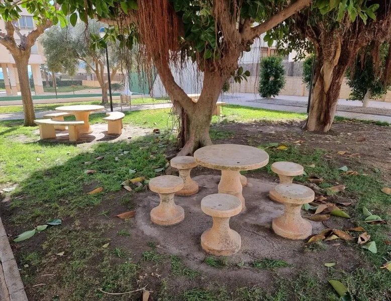 Beachfront Location: Torre Edinso in El Campello offers direct beachfront access with stunning sea views. Guests can relax in the lush garden or enjoy the tennis court and year-round outdoor swimming pool. Spacious Accommodations: The apartment features three bedrooms and two bathrooms, a fully equipped kitchen, and a comfortable living room. Free WiFi is available throughout the property. Convenient Facilities: The property includes a elevator, family rooms, and a children's playground. Free on-site private parking is provided, and Alicante–Elche Miguel Hernández Airport is 17 mi away. Nearby Attractions: Muchavista Beach is just a few steps away, and attractions such as Alicante Golf and Terra Natura are within 24 mi. Highly rated by guests for its excellent amenities. This apartment offers a pool with a view. This spacious apartment consists of 1 living room, 3 separate bedrooms and 2 bathrooms with a shower and a bidet. The well-equipped kitchen features a refrigerator, an oven, a microwave and a toaster. The air-conditioned apartment provides a flat-screen TV, a washing machine, a coffee machine, heating as well as sea views. The unit offers 6 beds.