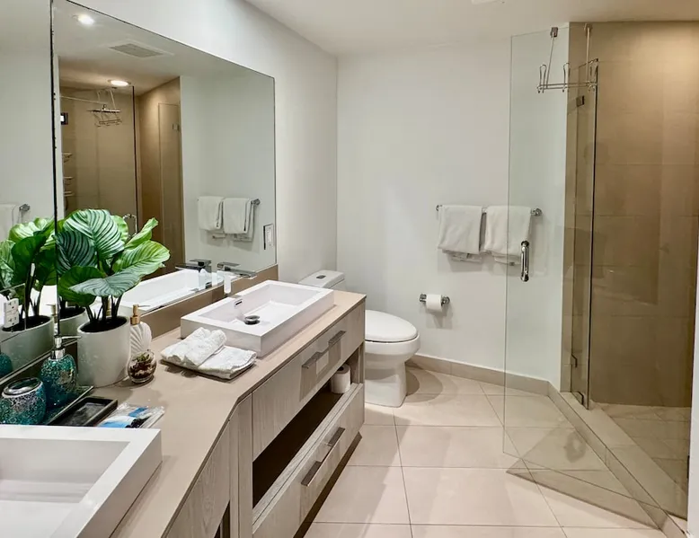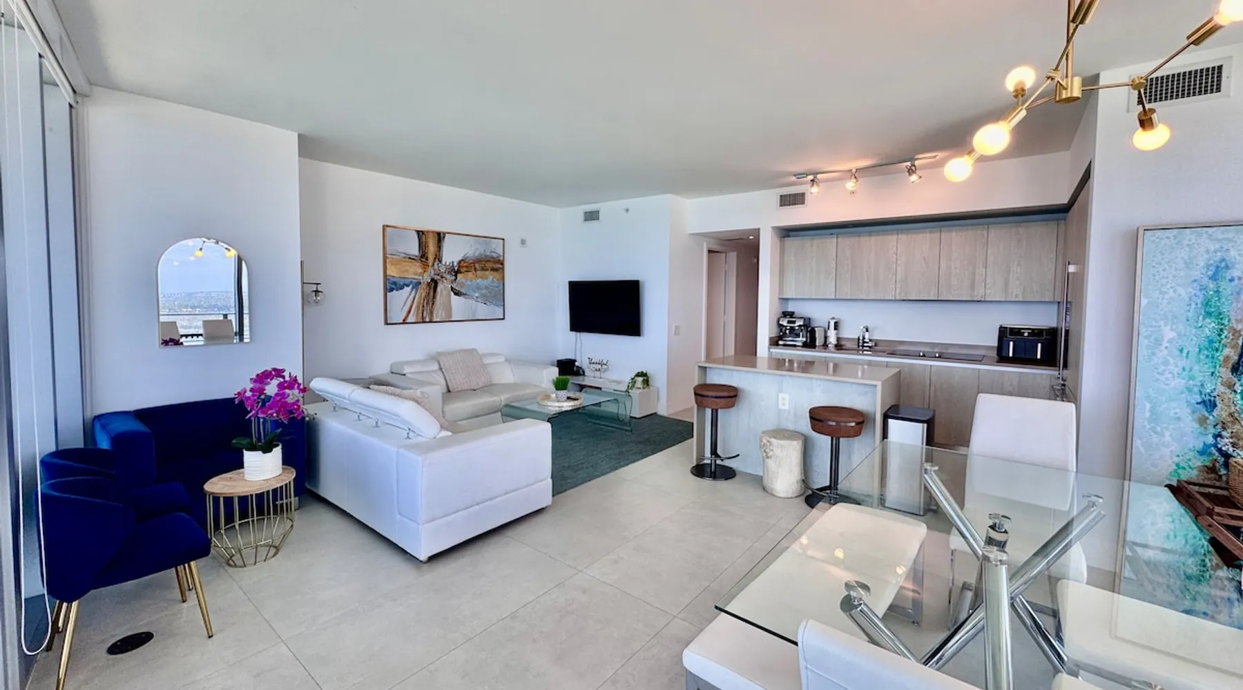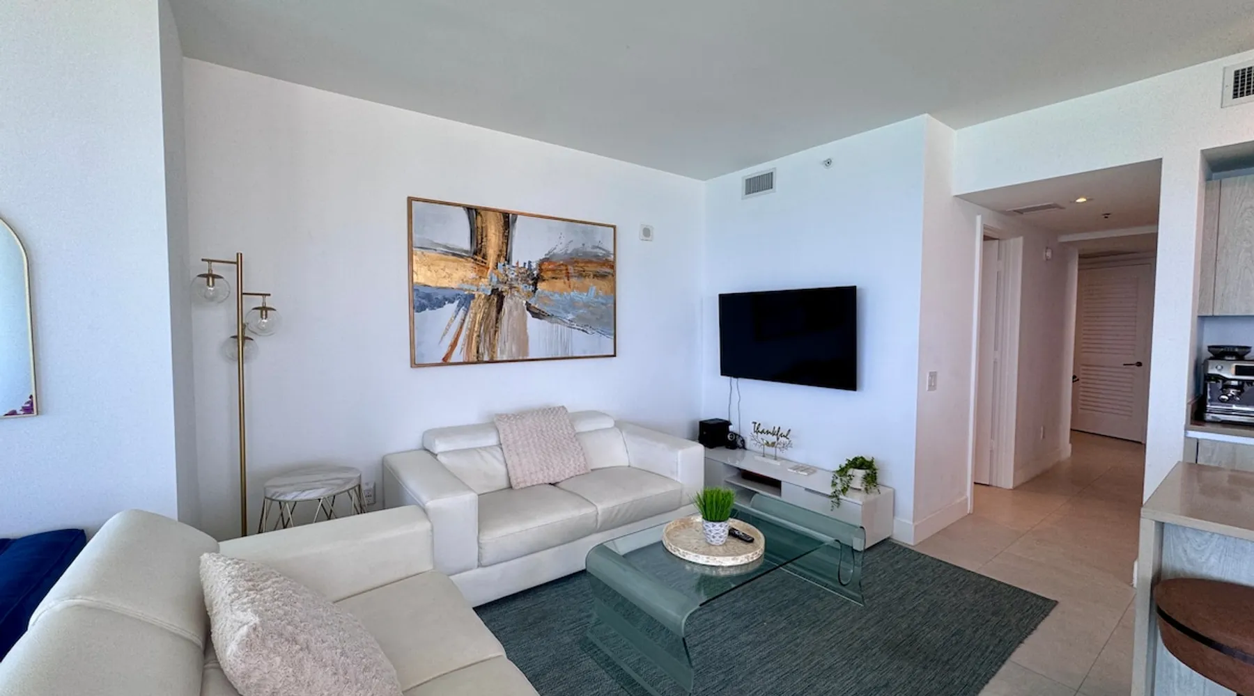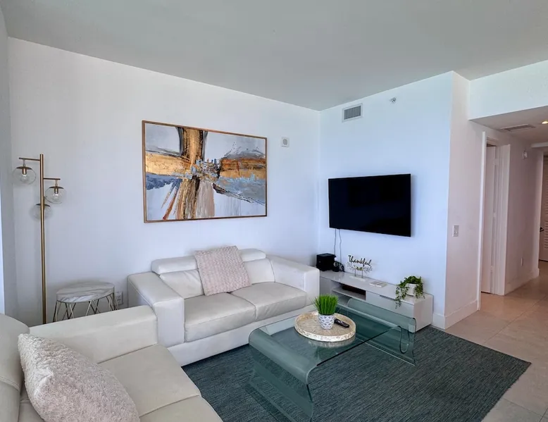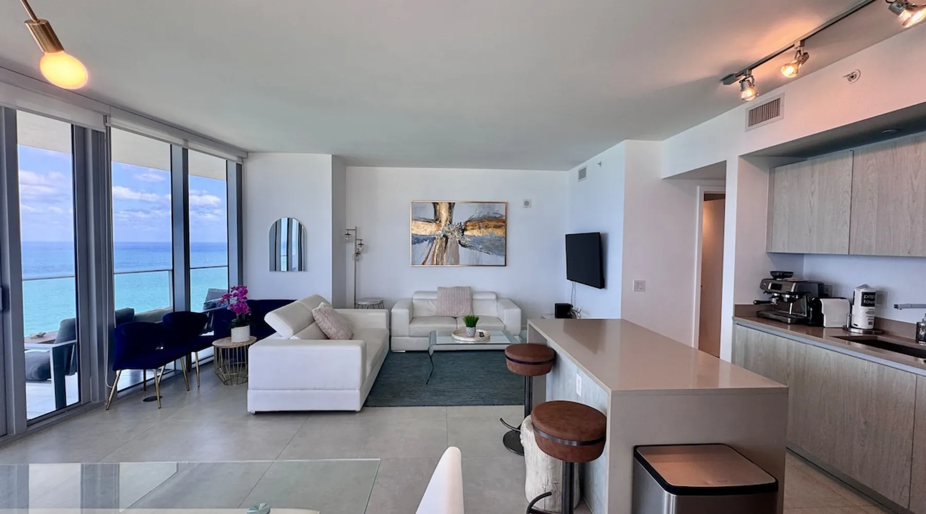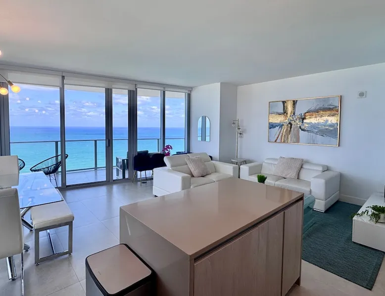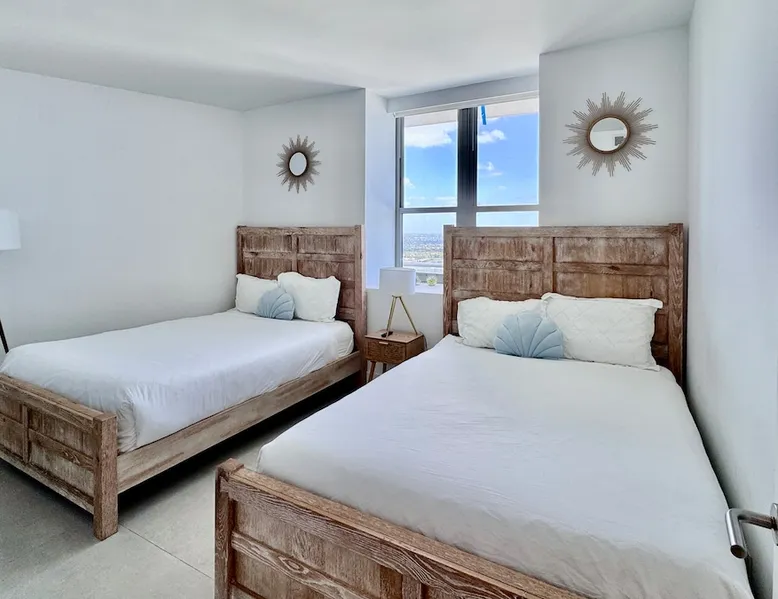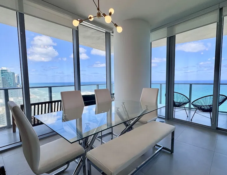 ✨Welcome to our newly renovated beachfront oceanfront getaway in a luxury resort, where open spaces create a bright, airy retreat! 🏝️Perched on the 26th floor in the heart of Hollywood Beach, our stunning unit offers wraparound balconies, ocean views, and access to upscale beach-inspired amenities. Whether for sun-soaked relaxation or vibrant coastal vibes, this is your perfect escape. ⚠️IT IS IMPORTANT to review and agree with everything described in "Other things to note"⚠️ The space 🏙️Located in the vibrant heart of the coast, Lyfe Resort Miami places you just steps from everything that makes this destination unforgettable. A short walk leads to the sparkling shoreline, perfect for sun-soaked days, water sports, or peaceful sunrise strolls along the sand. Whether you’re here to relax by the ocean or simply enjoy the ease of the resort, this location puts it all at your fingertips, making it an ideal base for families, couples, and business travelers alike. ⸻ 🛋️ Living Room: The living area is bright and inviting, with floor-to-ceiling windows that fill the space with natural light and showcase sweeping ocean views. Two plush couches provide plenty of seating for relaxation, while modern décor, a 55-inch smart TV, and an open layout make it an ideal spot for lounging, entertaining, or working remotely. ⸻ 🥂Dining Area: The dining area features a sleek glass table with seating for six, perfect for family meals or entertaining. Panoramic windows surround the space, filling it with natural light and offering breathtaking views of the ocean. ⸻ 🍳 Kitchen: The modern kitchen is fully equipped with stainless steel appliances, custom cabinetry, and ample counter space, making it perfect for everything from casual breakfasts to elegant dinners. A spacious island with bar seating for three adds a stylish spot for quick bites or conversation while enjoying the open layout and ocean views. ⸻ 🛏️Master Bedroom(Ocean-View): The master bedroom offers a plush king-size bed with premium linens, a work-friendly desk, and a 43-inch Smart TV with streaming access for guests, supported by high-speed Wi-Fi (90 Mbps). Large windows showcase sweeping ocean views, and sliding doors lead directly to the balcony. A spacious closet keeps your belongings organized, and the in-room bathroom adds privacy and convenience. ⸻ 🛏️Second Bedroom(Intercostal/city, Ocean-View): The second bedroom is designed for families or friends, featuring two queen beds with soft bedding, a 43-inch Smart TV with streaming access for guests supported by high-speed Wi-Fi (90 Mbps), and a generous closet. ⸻ 🛁Master Bathroom: The master bathroom, located in the primary bedroom, offers a full-size bathtub with shower, a spacious vanity with dual sinks, bright lighting, and a sleek mirror. Fresh towels and essential toiletries are provided for your stay. ⸻ 🛁Second Bathroom: The second bathroom, accessible from the living area, features a sleek walk-in shower, spacious vanity, and elegant finishes. Fresh towels and essential toiletries are provided for your comfort. ⸻ 🌅Private Balcony: The private balcony offers sweeping views of the ocean, Intracoastal, and city skyline. With cozy seating, it’s the perfect spot for morning coffee, evening wine, or simply enjoying the fresh sea breeze. ⸻ 🧺 Washer/Dryer: A washer and dryer are available in the unit, providing the convenience of doing laundry during your stay so you can always have fresh clothes on hand. Guest access 🏖️ Beach Access & Service: The designated beach area, just a 5-minute walk from the resort, offers 2 lounge chairs and 1 umbrella for your comfort. Fresh beach towels are provided by the Resort Beach Service and are intended for use at the beach for your convenience. ✅ Included in resort fee ⸻ 🏊 Rooftop Pools & Sun Deck (9th floor): Two infinity-edge ocean-view pools, including a rooftop pool with sweeping views of the Atlantic. Located on the 9th floor, featuring a sundeck and private cabanas. Jacuzzi also available. ✅ Included in resort fee ⸻ 🏋️ Fitness Center(9th floor): Stay active in the fully equipped fitness center, featuring Oceanview cardio machines, free weights, and strength training equipment designed to keep your routine on track. ✅ Included in resort fee ⸻ 🧑💼 Concierge Service: 24-hour personal concierge and room service for all guests. ✅ Included in resort fee ⸻ 🍽️ Terrazas Restaurant & Bar (Poolside): Located right next to the rooftop pool, Terrazas serves fresh seafood, seasonal dishes, and South Florida-inspired cuisine. Enjoy food and drinks poolside from the adjacent full-service bar. 💲 Paid separately ⸻ 🍣 ETARU Restaurant: Located just a few steps from Terrazas, ETARU offers contemporary Japanese Robatayaki cuisine in a waterfront setting. 💲 Paid separately. Other things to note 👥 Guest Policy: The unit accommodates up to 6 guests and includes all essentials for a short-term stay. For additional personal items, nearby shops and supermarkets are available. Wristbands provided by the resort must be worn by all guests when using resort amenities. No parties or unregistered guests allowed. ⸻ 🔑 Check-In Method: You will check in with the hotel receptionist. Three days prior to your arrival, you’ll receive all information how to access the property. ⸻ 💳 Additional Fees you will be charged at Check-In: • Security deposit: $250 (will be refund after check-out and arrive to your bank within 7 days depending on your bank) • Resort Fee: $40 + tax per night (all guests) • Credit card and ID must match the reservation or accompanying guest • All guests are required to sign a check-in form upon arrival. • For stays over 30 days, please contact the resort for current rates, fees, and amenity details. ✅ Paid directly to the resort at check-in. ℹ️ Please note: The resort manages these rates, and they may update them without i