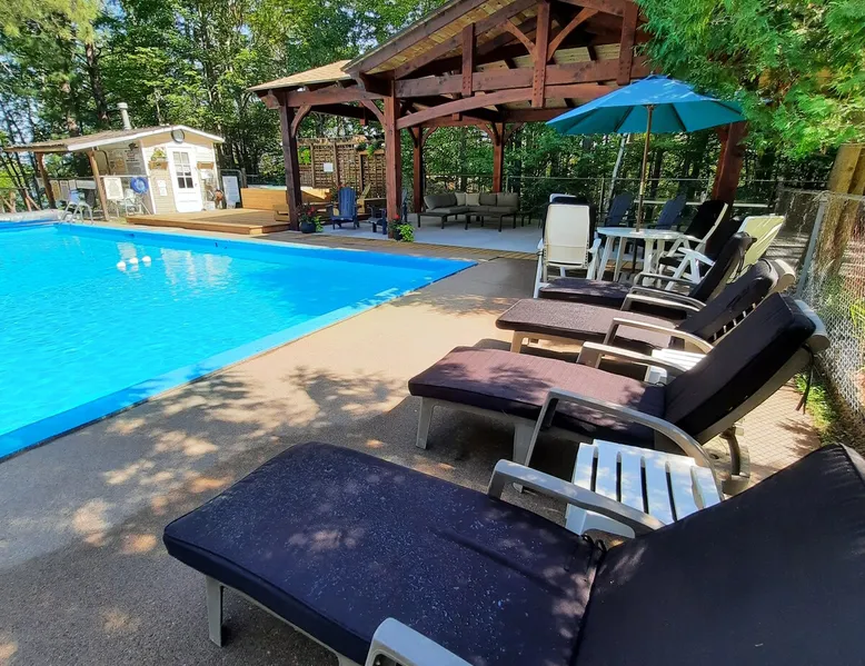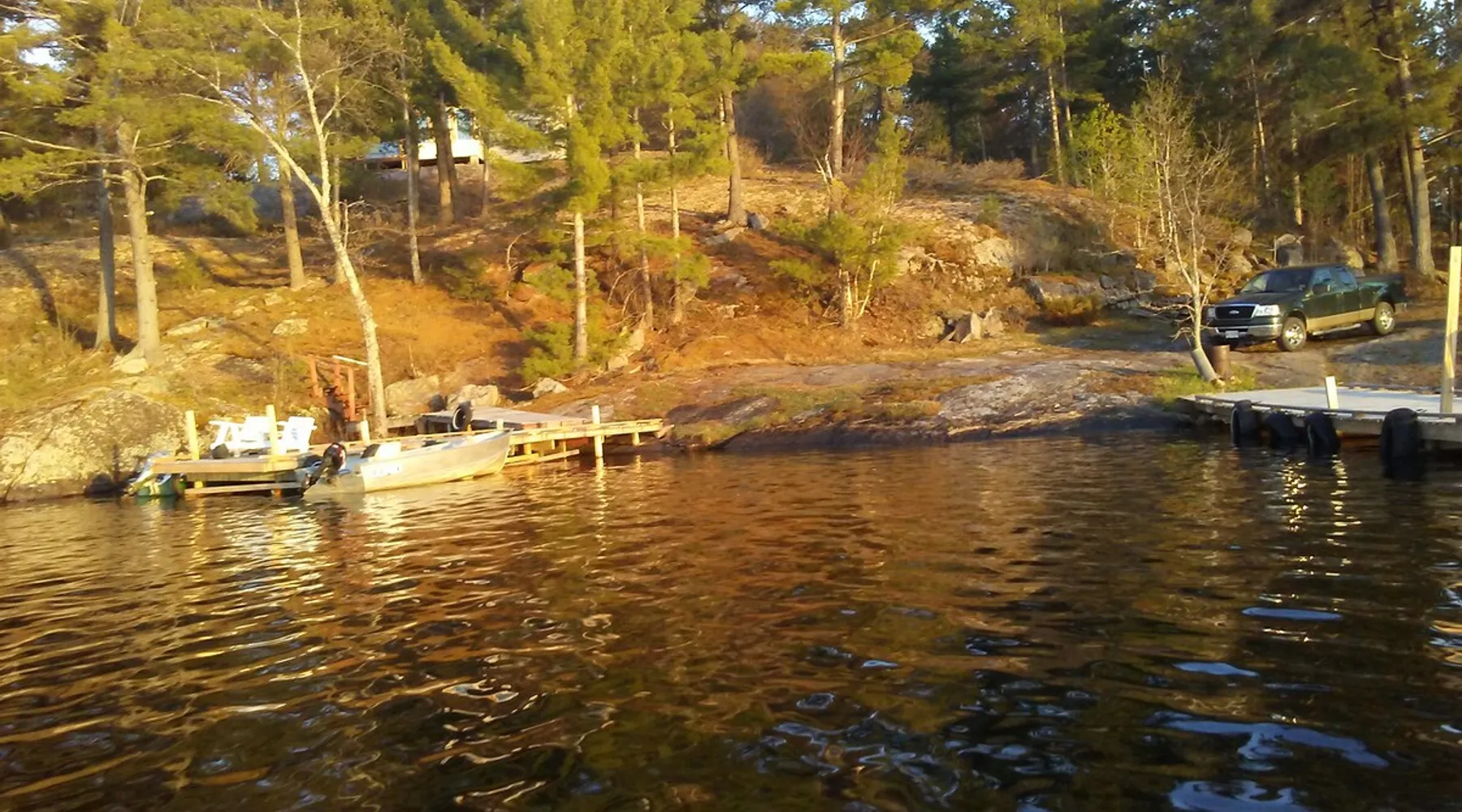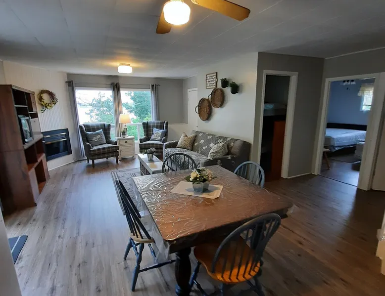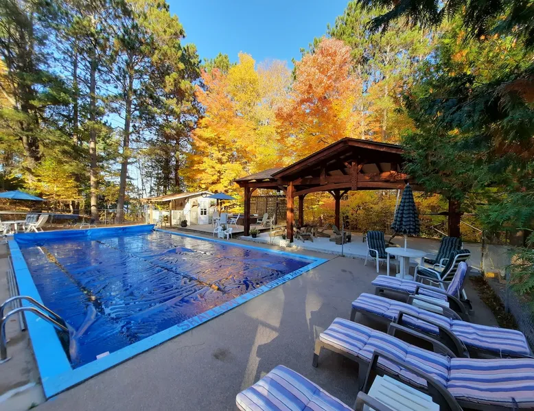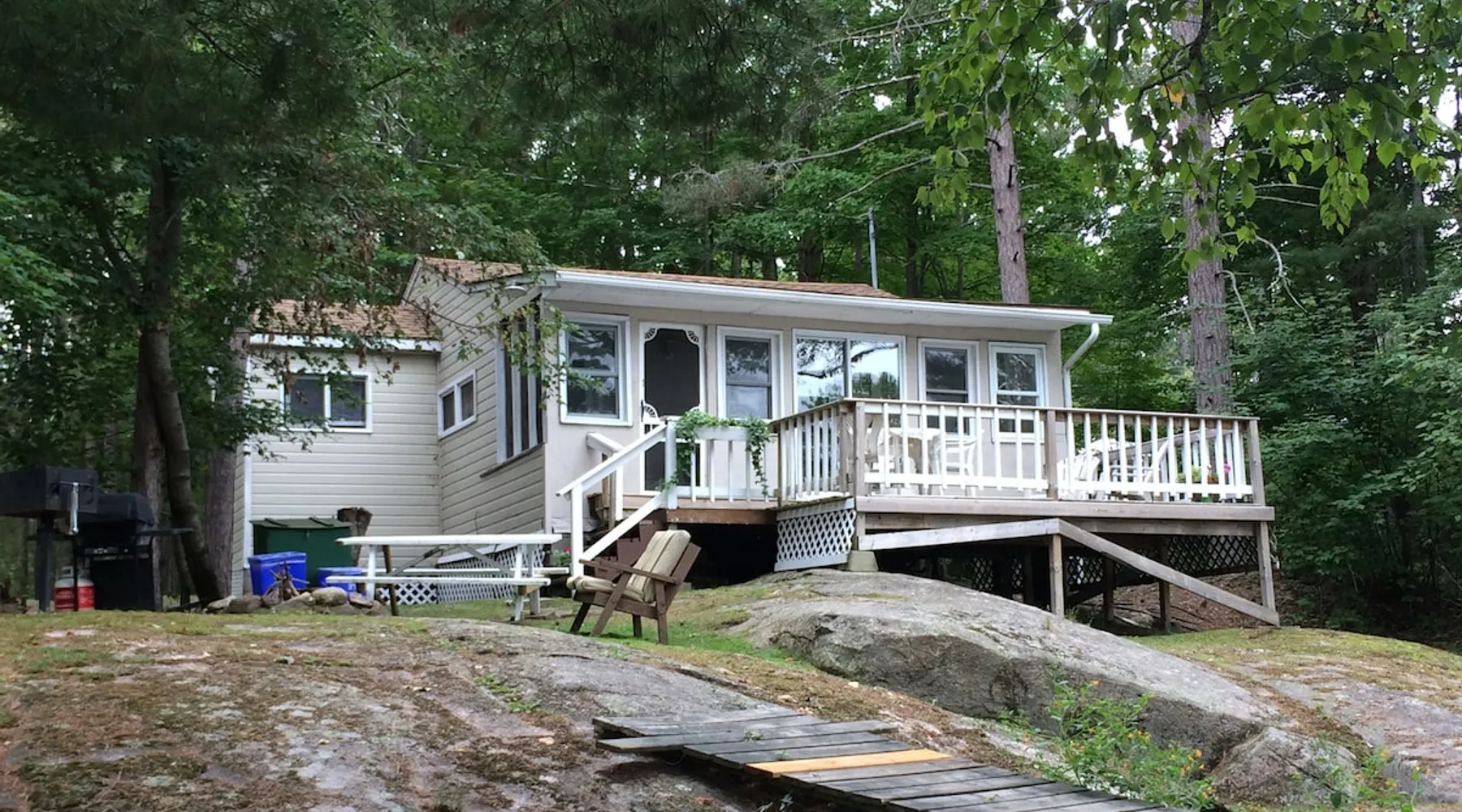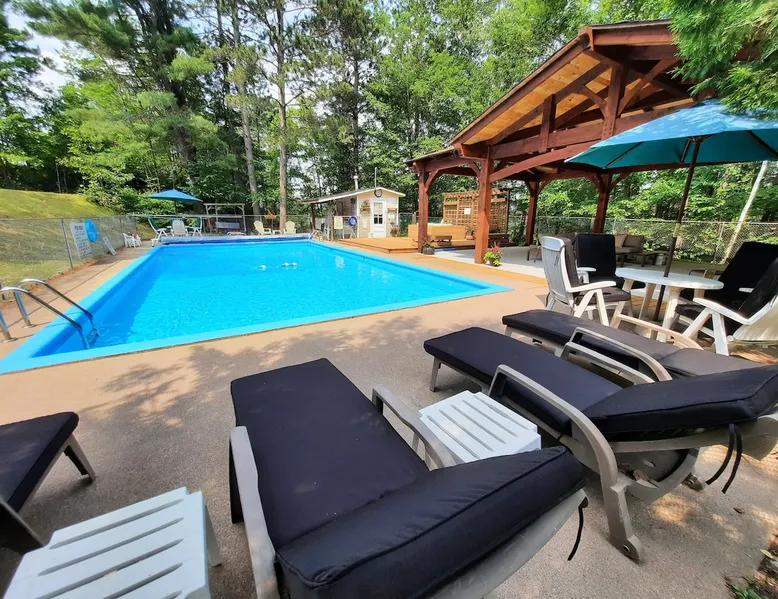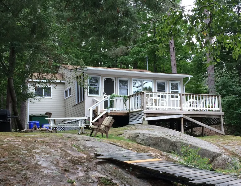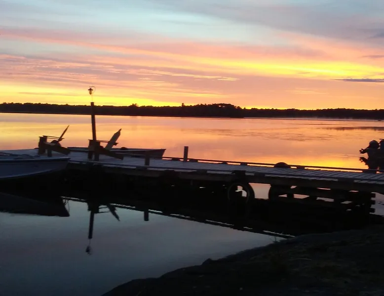 Very Private Lakefront cottages on the Picturesque South Bay of Lake Nipissing. Small safe family resort on 17 acres. Only 6 full housekeeping 2 and 3 bedroom cottages to choose from. All cottages are well maintained with quality beds, furnishings and fixtures. Many resort amenities for your enjoyment included, canoes, kayaks, paddle boat, games room, horse shoe pits. kids play center, seasonal inground heated pool and whirlpool. Fishing boat rental available. 30 minutes south of North Bay. The space Couples getaway Lakefront Honeymoon Fireplace chalet is very private among the tall pines and wonderful evening sunsets. There are 6 well spaced apart lakefront cottages. There is only one calendar , so other cottages may be available . The seasonal Inground heated pool and whirlpool is centrally located and available for all to use. Hours are 11am to 8 pm for use. The pool is seasonal. All water toys and games room are included with reservation. Fishing boats for rent 2-3 day and weekly.. No Pets please. Seasonal Pool area open end of June to September per weather conditions. All cottages are left open for 2 days between reservations for sanitize, cleaning and safety. Book early, summer bookings began early this year. Email us and we can let you know which cottages are open for your dates of choice. Thank you. Dan Guest access Your own private cottage with private driveway. The over 17 acre small resort is only for our guests. We do not rent equipment out to non guests. Very safe area and quiet. There are 6 lakefront housekeeping cottages . All resort amenities are for our guests to enjoy. Every cottage has there own area with camp fire, 2 bbq's , charcoal and propane. Outdoor seating with picnic table and Muskoka chairs. Tables and chairs on deck as well as in your screened porch. Other things to note Complimentary lake and depth maps. Our own fishing hot spot map as well. Our whole family loves fishing and boating.Resort amenities are for our guests only. We do not rent equipment to non guests. the government tax on cottage rentals of 13% is due upon arrival. There is tax on fishing boat rentals of 13%. We request all quite after 11 pm .Thank You. Except for the loons. Please we are asking our guests to please bring there towels, toiletries and bedding.