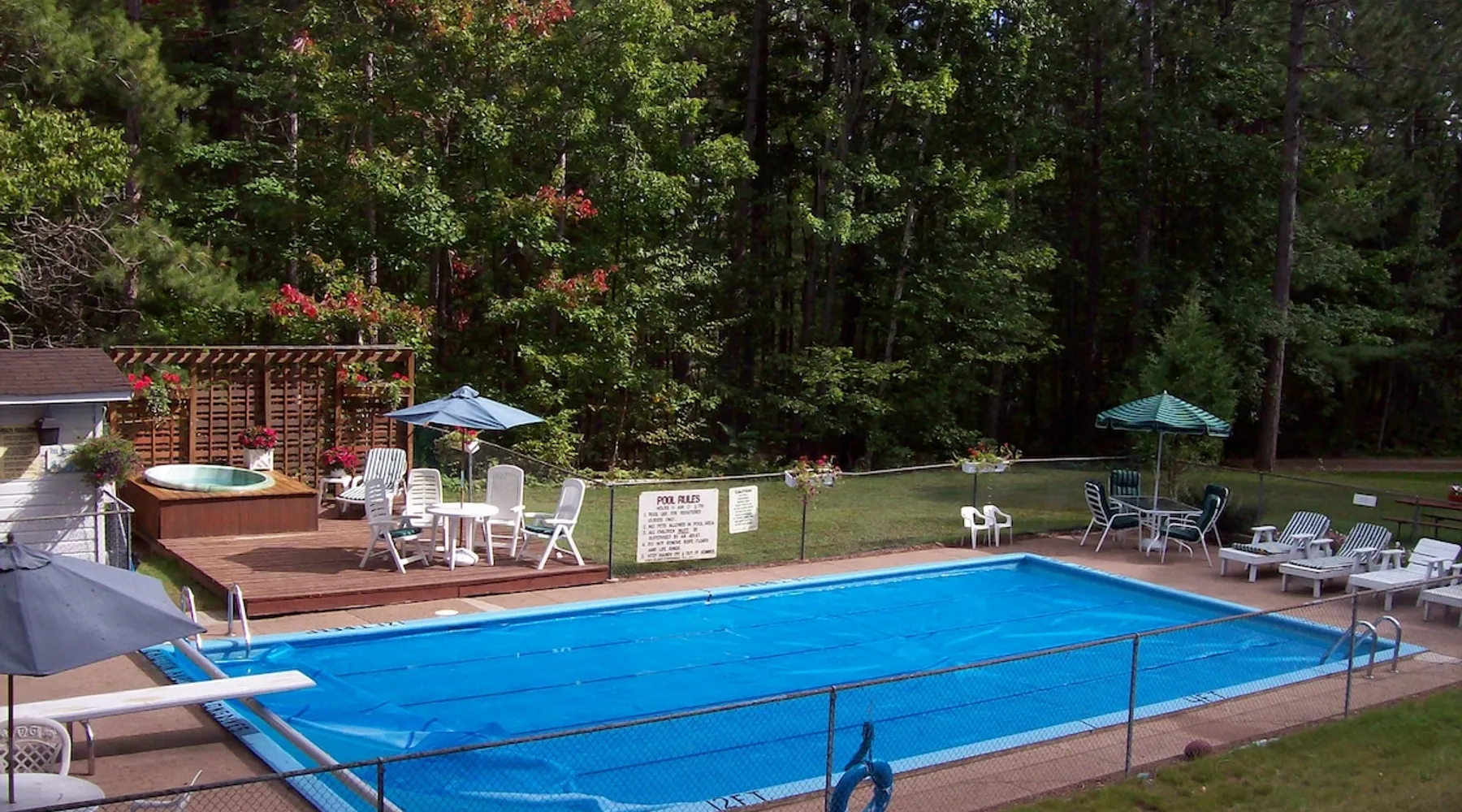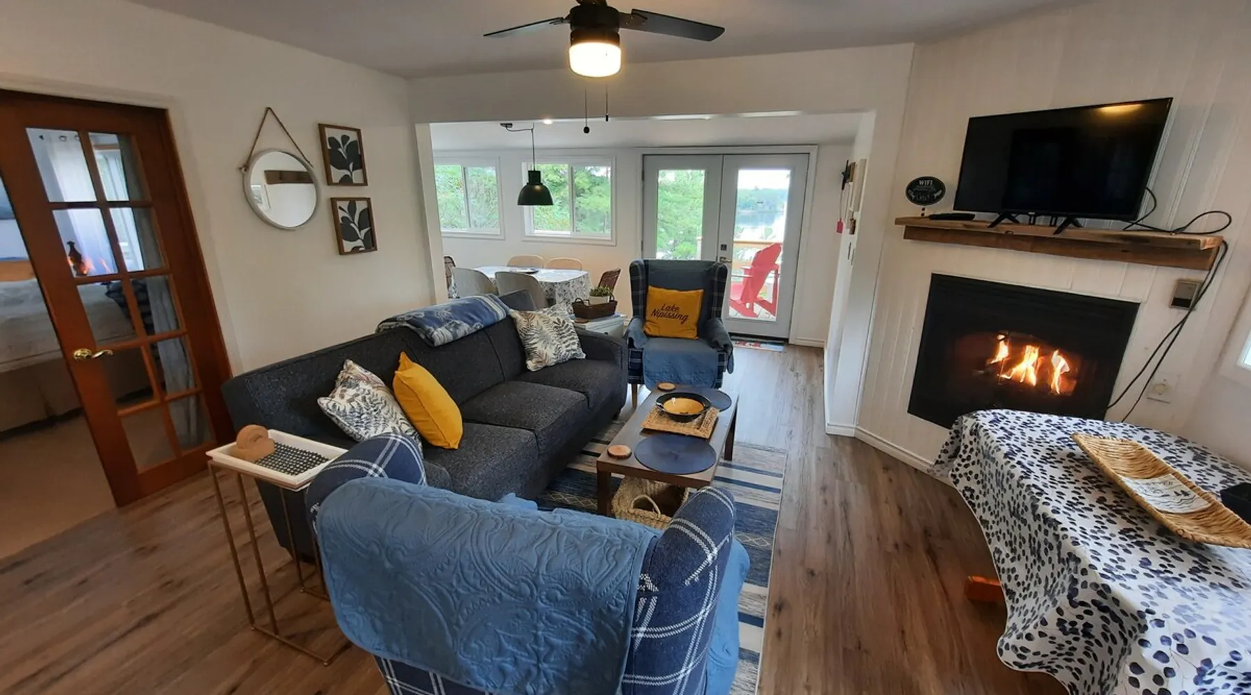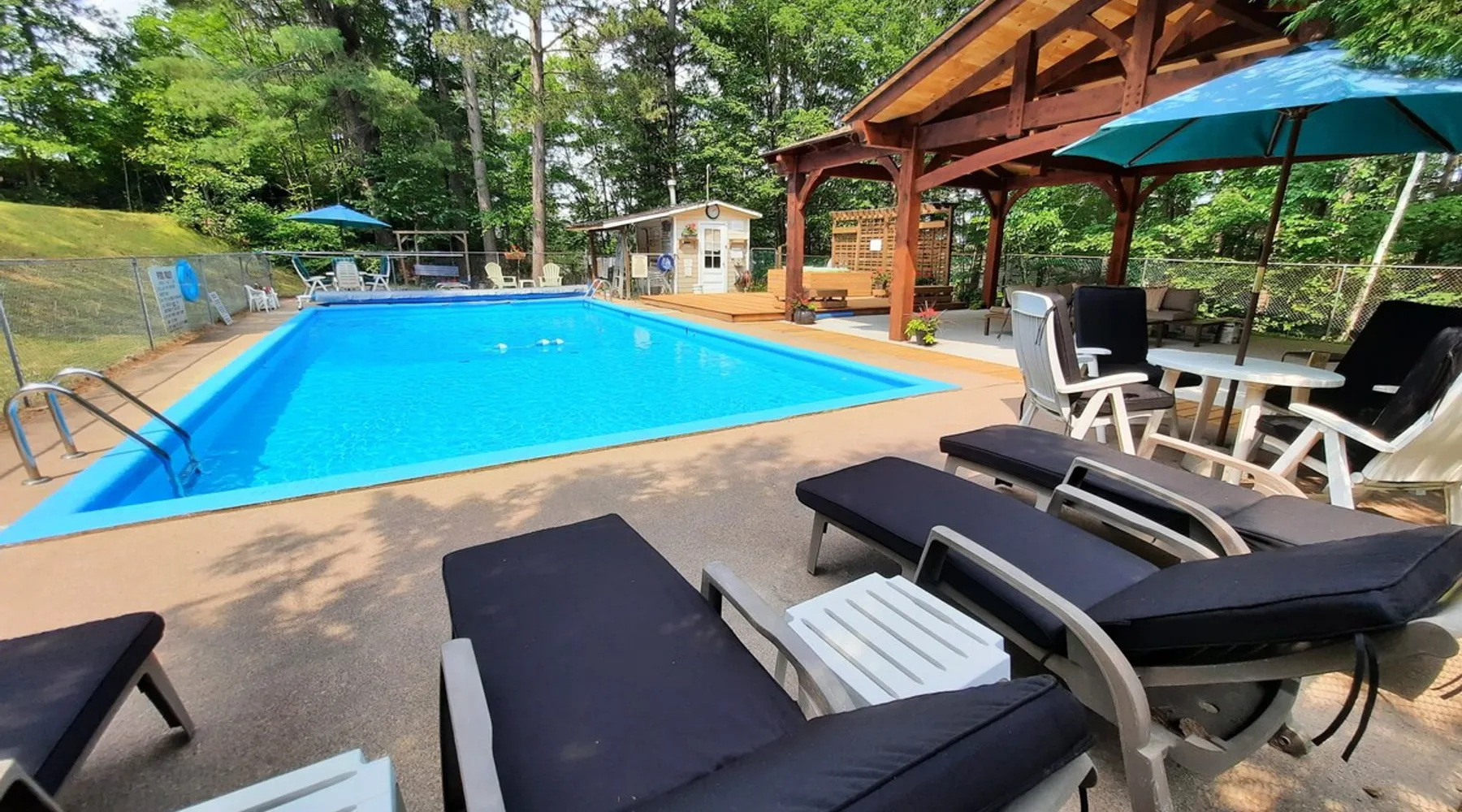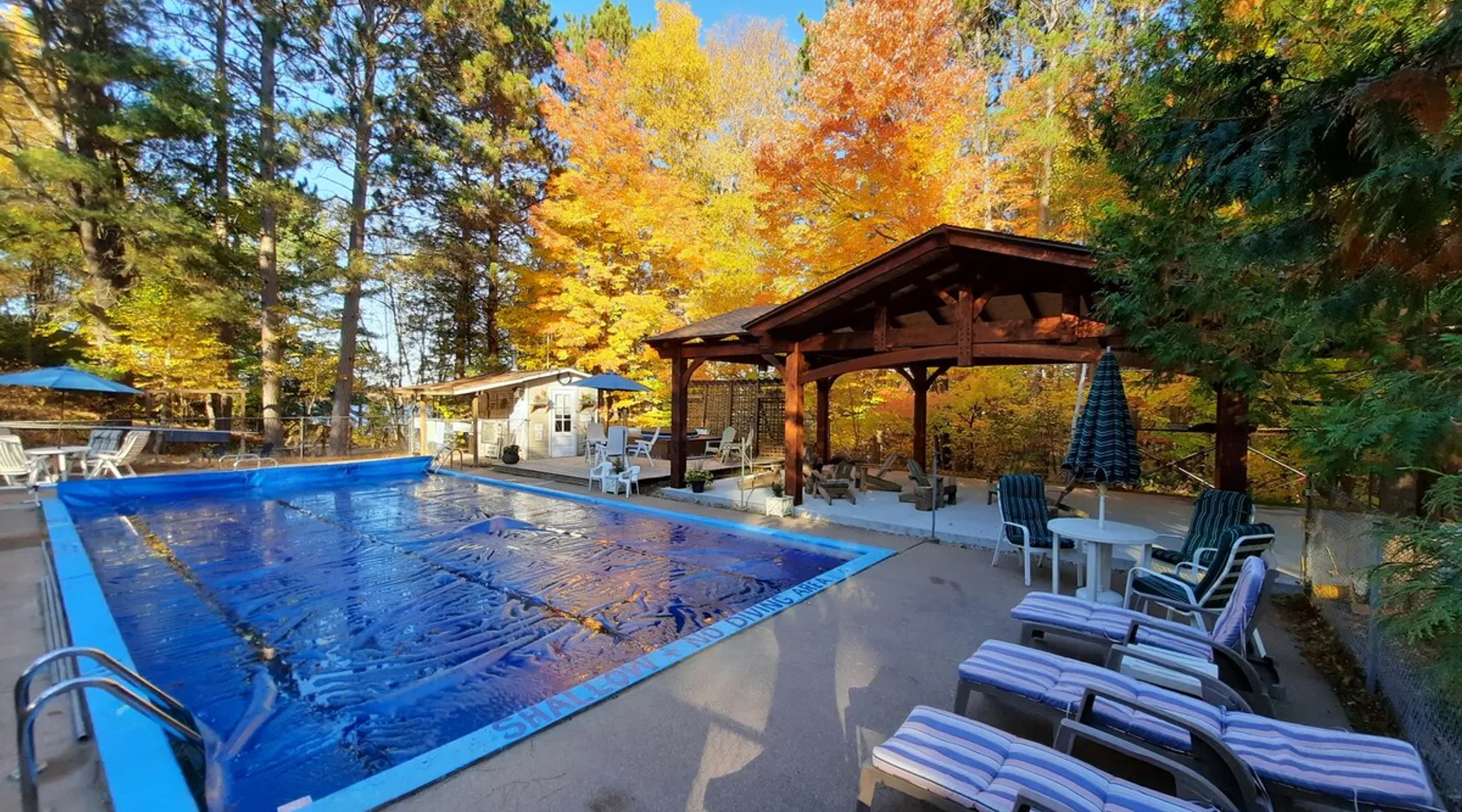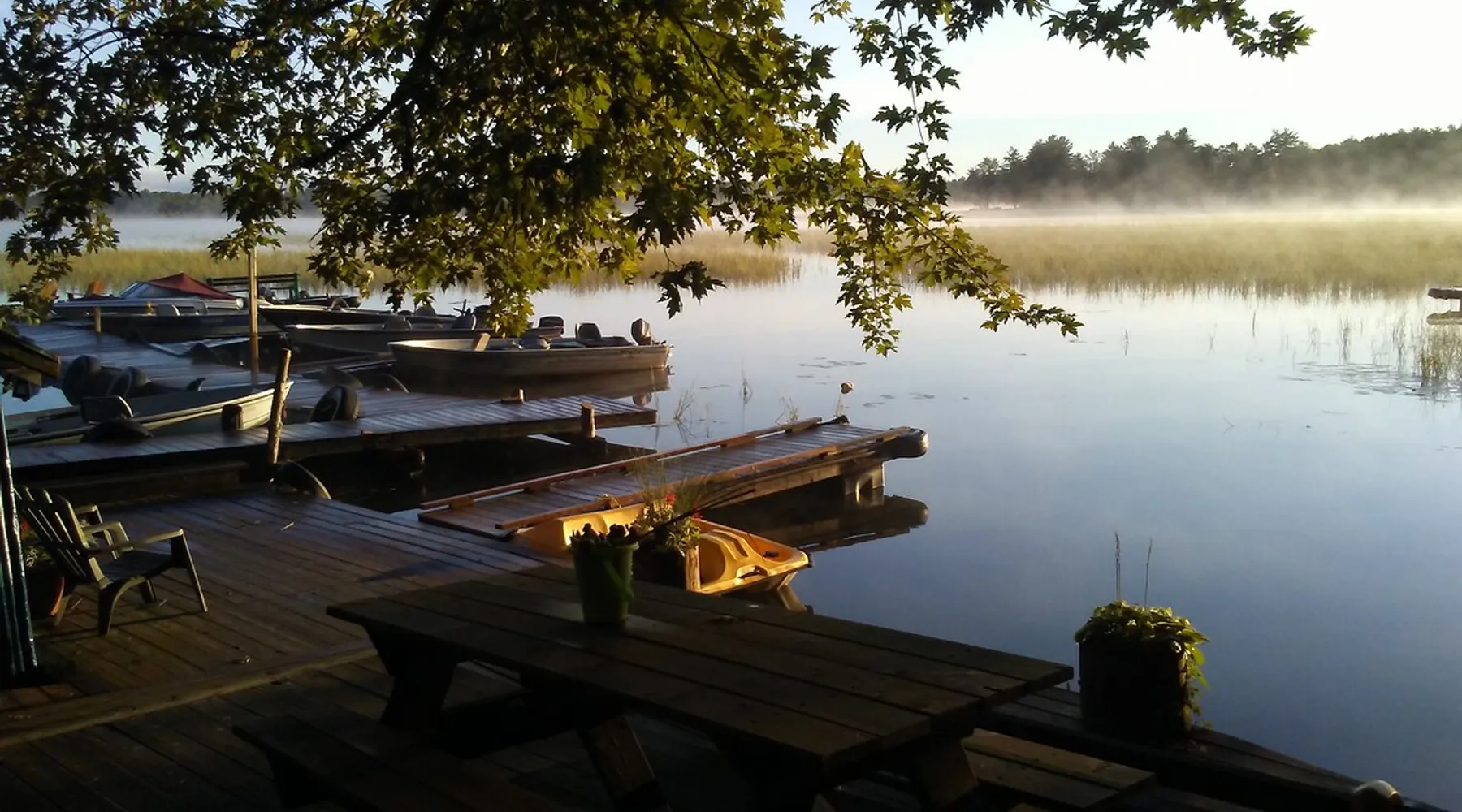 Very Private Lakefront cottages on the Picturesque South Bay of Lake Nipissing. Small safe family resort on 17 acres. Only 6 full housekeeping 2 and 3 bedroom cottages to choose from. All cottages are well maintained with quality beds, furnishings and fixtures. Many resort amenities for your enjoyment included, canoes, kayaks, paddle boat, games room, horse shoe pits. kids play center, seasonal inground heated pool and whirlpool. Fishing boat rental available. 30 minutes south of North Bay. The space Couples getaway Lakefront Honeymoon Fireplace chalet is very private among the tall pines and wonderful evening sunsets. There are 6 well spaced apart lakefront cottages. There is only one calendar , so other cottages may be available . The seasonal Inground heated pool and whirlpool is centrally located and available for all to use. Hours are 11am to 8 pm for use. The pool is seasonal. All water toys and games room are included with reservation. Fishing boats for rent 2-3 day and weekly.. No Pets please. Seasonal Pool area open end of June to September per weather conditions. All cottages are left open for 2 days between reservations for sanitize, cleaning and safety. Book early, summer bookings began early this year. Email us and we can let you know which cottages are open for your dates of choice. Thank you. Dan Guest access Your own private cottage with private driveway. The over 17 acre small resort is only for our guests. We do not rent equipment out to non guests. Very safe area and quiet. There are 6 lakefront housekeeping cottages . All resort amenities are for our guests to enjoy. Every cottage has there own area with camp fire, 2 bbq's , charcoal and propane. Outdoor seating with picnic table and Muskoka chairs. Tables and chairs on deck as well as in your screened porch. Other things to note Complimentary lake and depth maps. Our own fishing hot spot map as well. Our whole family loves fishing and boating.Resort amenities are for our guests only. We do not rent equipment to non guests. the government tax on cottage rentals of 13% is due upon arrival. There is tax on fishing boat rentals of 13%. We request all quite after 11 pm .Thank You. Except for the loons. Please we are asking our guests to please bring there towels, toiletries and bedding.
