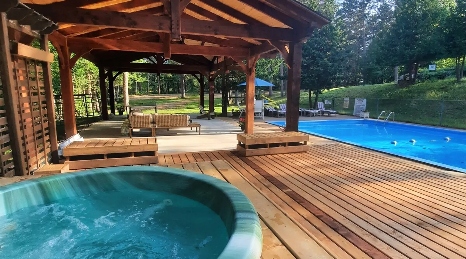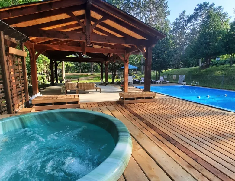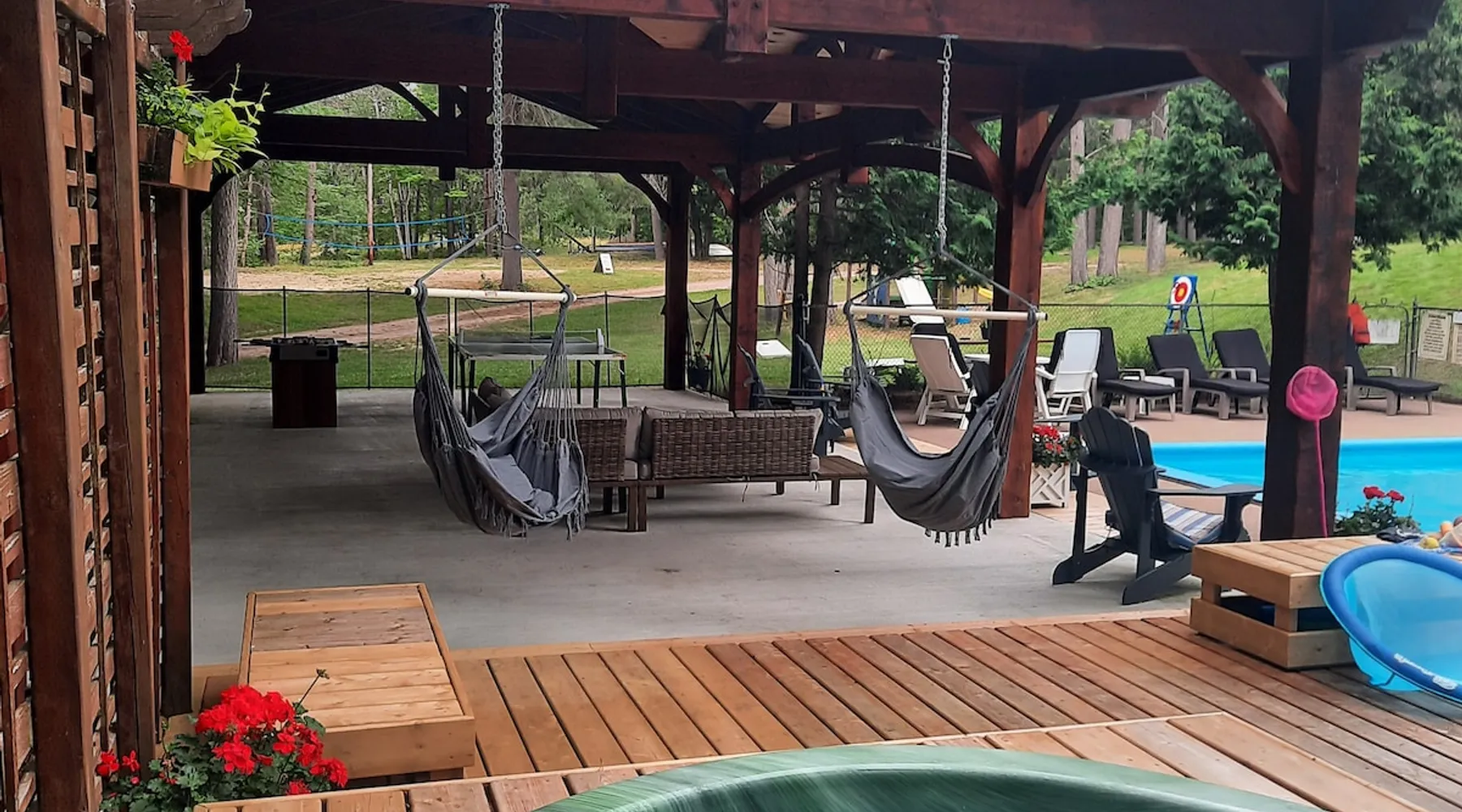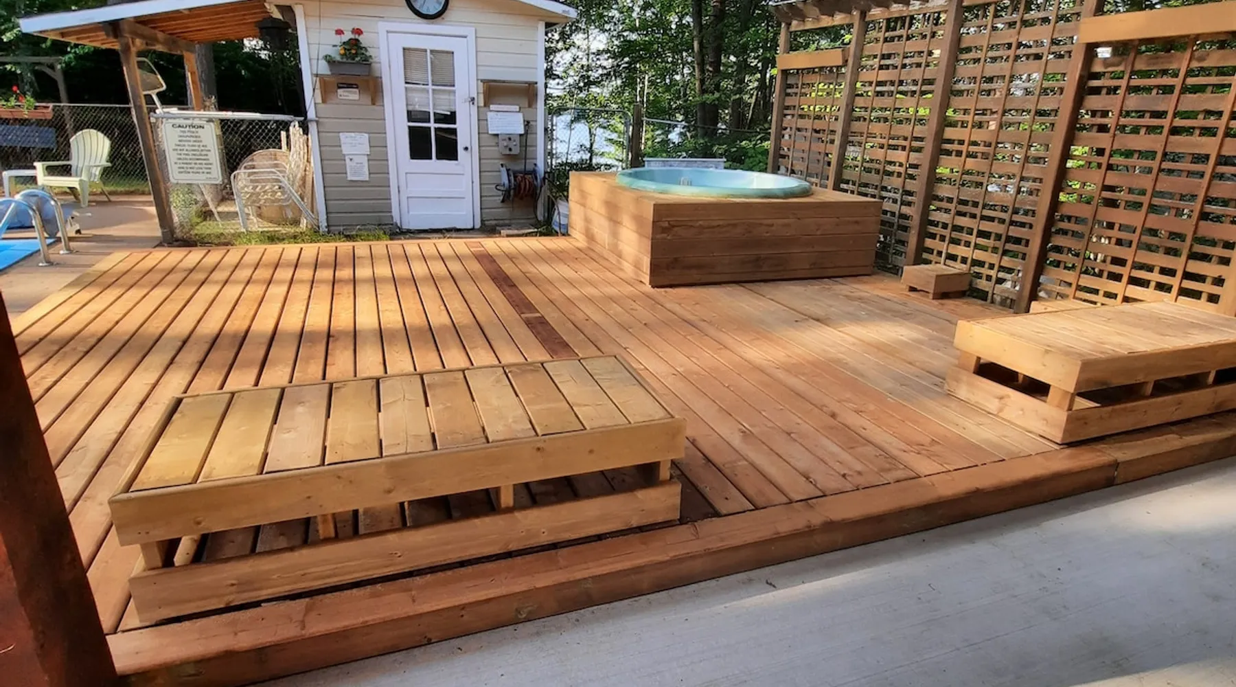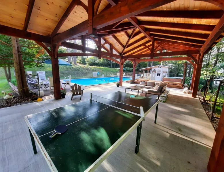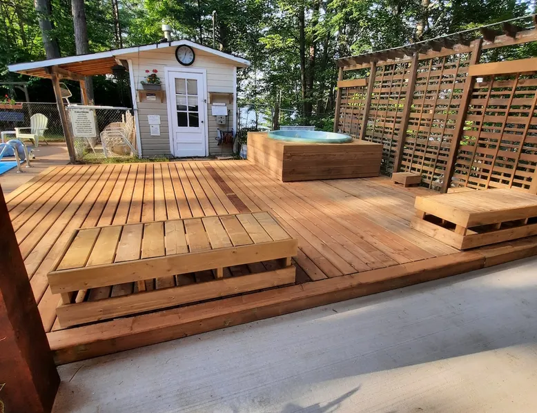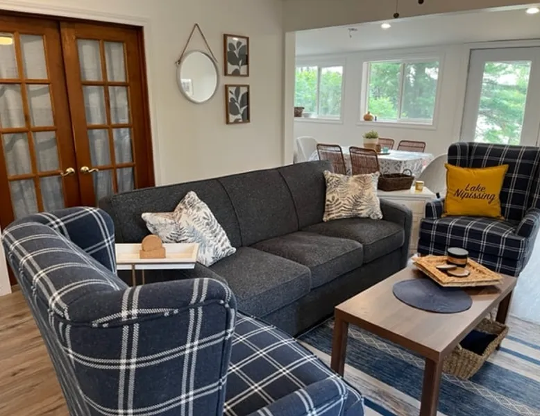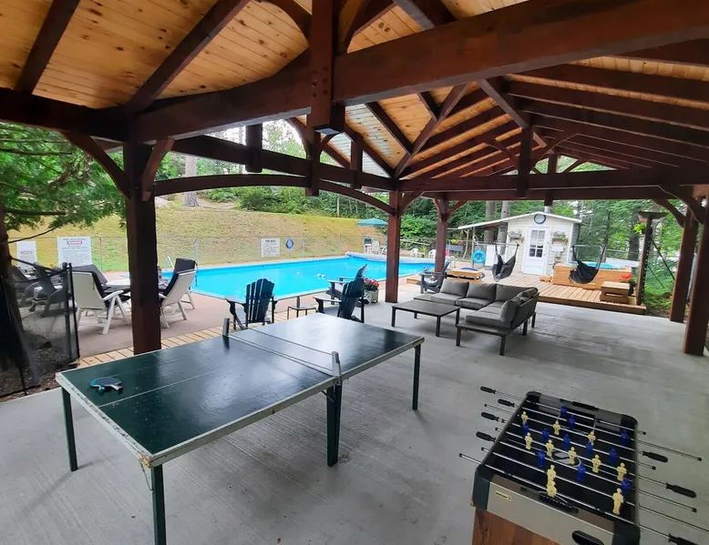 Very Private Lakefront cottages on the Picturesque South Bay of Lake Nipissing. Small safe family resort on 17 acres. Only 6 full housekeeping 2 and 3 bedroom cottages to choose from. All cottages are well maintained with quality beds, furnishings and fixtures. Many resort amenities for your enjoyment included, canoes, kayaks, paddle boat, games room, horse shoe pits. kids play center, seasonal inground heated pool and whirlpool. Fishing boat rental available. 30 minutes south of North Bay. The space Couples getaway Lakefront Honeymoon Fireplace chalet is very private among the tall pines and wonderful evening sunsets. There are 6 well spaced apart lakefront cottages. There is only one calendar , so other cottages may be available . The seasonal Inground heated pool and whirlpool is centrally located and available for all to use. Hours are 11am to 8 pm for use. The pool is seasonal. All water toys and games room are included with reservation. Fishing boats for rent 2-3 day and weekly.. No Pets please. Seasonal Pool area open end of June to September per weather conditions. All cottages are left open for 2 days between reservations for sanitize, cleaning and safety. Book early, summer bookings began early this year. Email us and we can let you know which cottages are open for your dates of choice. Thank you. Dan Guest access Your own private cottage with private driveway. The over 17 acre small resort is only for our guests. We do not rent equipment out to non guests. Very safe area and quiet. There are 6 lakefront housekeeping cottages . All resort amenities are for our guests to enjoy. Every cottage has there own area with camp fire, 2 bbq's , charcoal and propane. Outdoor seating with picnic table and Muskoka chairs. Tables and chairs on deck as well as in your screened porch. Other things to note Complimentary lake and depth maps. Our own fishing hot spot map as well. Our whole family loves fishing and boating.Resort amenities are for our guests only. We do not rent equipment to non guests. the government tax on cottage rentals of 13% is due upon arrival. There is tax on fishing boat rentals of 13%. We request all quite after 11 pm .Thank You. Except for the loons. Please we are asking our guests to please bring there towels, toiletries and bedding.