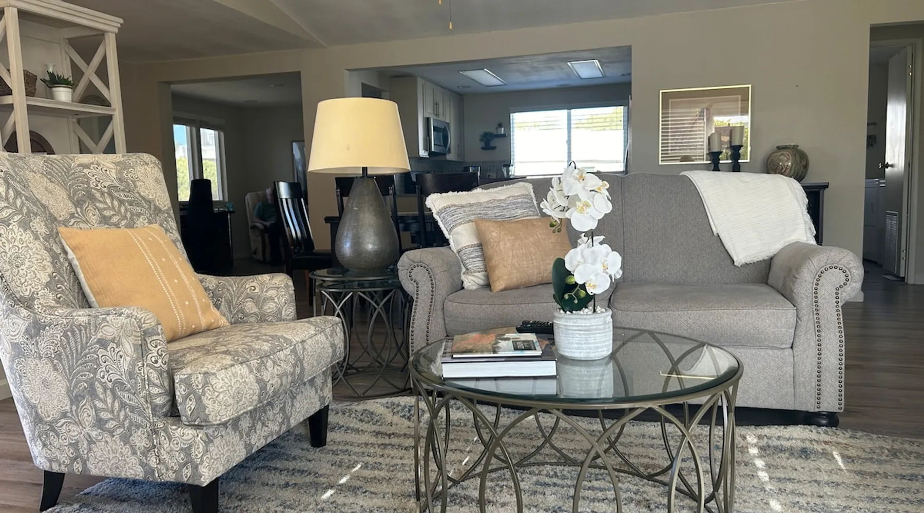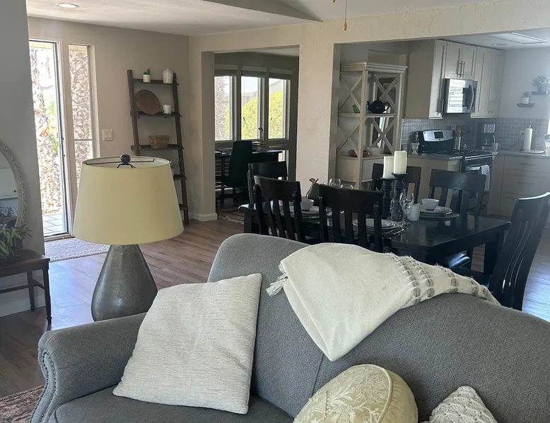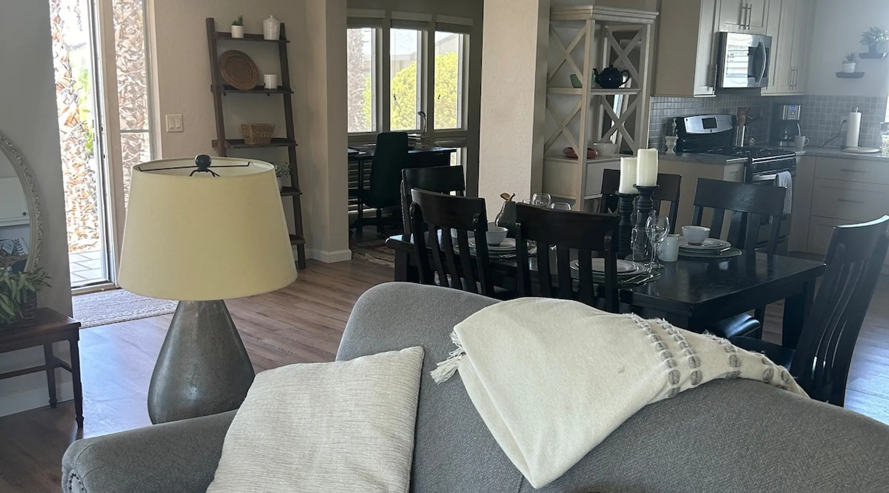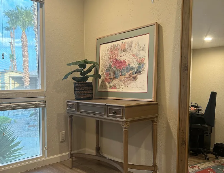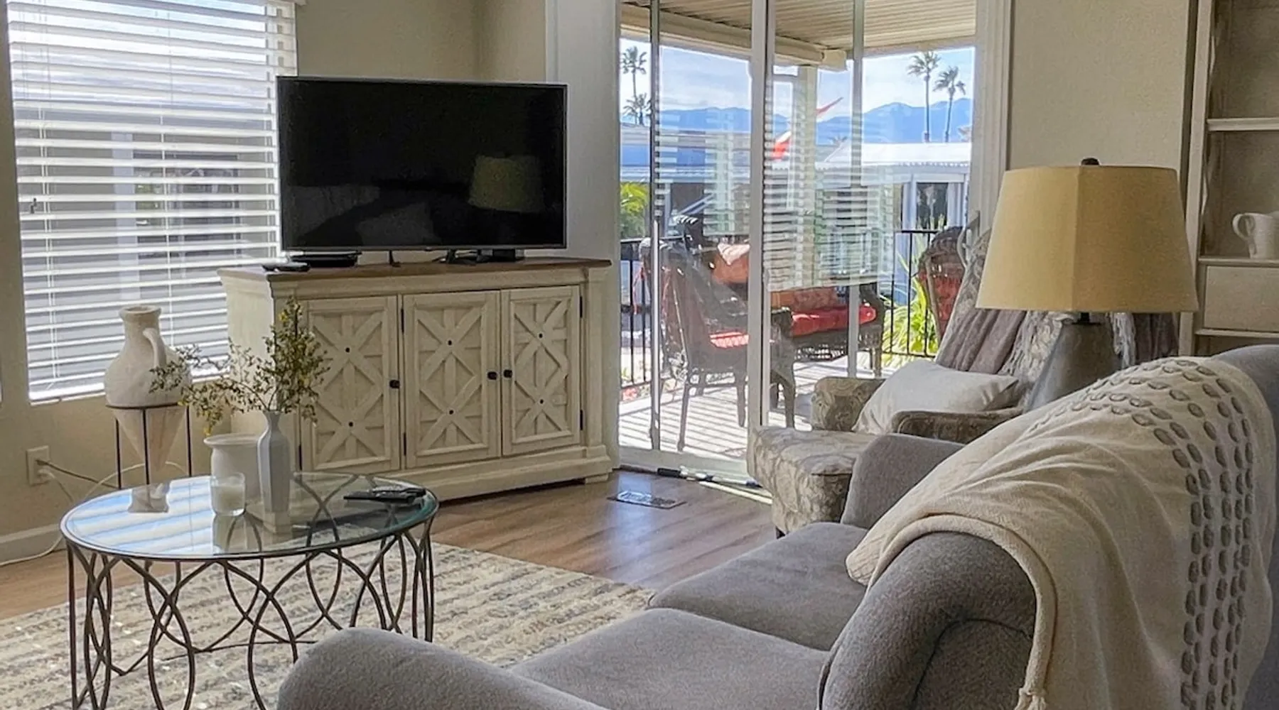 Relax at our peaceful and spacious house, watching sunsets over the mountains from our newly renovated living room and kitchen. Conveniently located 20 minutes from Palm Springs and 45 min. from Joshua Tree. Located in a quiet street with a 3-4 minute walk to pools and mineral pools. The sizeable master bedroom comes attached with a bathroom, walk-in closet and a very comfortable queen bed. Amenities include a full kitchen with new stainless steel appliances, dishes and cooking utensils. The space HOUSE: This two bedroom, two full bathroom home is not only in an exceptional location near the pools but has an equiped office with a beautiful view, a deck and back patio. You will enjoy your stay both for the spacious home and outdoor space complete with mountain views. The home has a bright and cozy living space with wall to wall windows to take in the views. Enjoy watching your favorite shows two large TV screens with cable. The kitchen is a very newly renovated modern kitchen with new stainless steel stove and refridgerator. It is fully stocked with everything you need to cook including a Keurig, coffee pot, kettle, coffee and tea, dishes, cooking utinsels, etc. The primary bedroom is very spacious with a very comfortable queen sized bed, a walk-in closet, attached full bathroom with two sinks and ample storage. The second bedroom has a double size bed with dresser and under bed storage, large closet. --perfect for one or two people to stay and enjoy their own space. The front deck off the front room has a lovely seating area perfect for a drink to enjoy the beautiful sunsets over the San Jacinto Mountains. The back patio is private with a BBQ, fire pit, comfortable outdoor seating to enjoy reading a book or sitting around with friends. Off the patio is a spacious backyard with a reclining lounge chair to catch some sun. This home has many areas where one can relax. This home comes with tennis rackets and balls and pool towels. SAFETY: Our home is professionally cleaned and sanitized before and after each guest to ensure you have a safe experience. PARKING: Our home has a driveway that can hold two cars back to back if needed. The resort is completely walkable and this home is very close to the east side clubhouse with the mineral pools and hot tubs. RESORT: Sky Valley Resort is the favorite of many people. Tiny houses and mid century style manufactured homes meander around the lakes and trails. There are 13 natural mineral pools in addition to hiking trails, tennis, pickle ball and basketball courts. There is even a farmer's market every Wednesday (weather permitting) and a little market + cafe at the clubhouse. Guest access Guest access Sky Valley Resort is a secure, gated community. You will be provided a gate code upon your arrival. Parking available for two cars in driveway. The resort is very walkable and bike friendly. Additional guest parking available on the street and at the clubhouse. Most residents use their golf carts to get around. Golf carts are available for guest rental during the season September-May annually. Other things to note OTHER THINGS TO NOTE: This is a quiet & serene community of vacationers and permanent residents in the beautiful Sky Valley Resort. If you are looking for a place to get loud and party, this spot may not be for you. The community appreciates peace and quiet at all times and in all locations. All guests must be at least 25 years old to book and provide a valid photo ID. Guests will sign the resort rental agreement within 48 hours of booking. LONGER STAYS: We require a mini cleaning every 2 weeks for long term stays at $45/cleaning + $125 for the checkout cleaning. Wellness - A special feature of this house/park are the wellness mineral pools and hot tubs. This park is only one of six places in the earth that has natural hot springs with a combination of minerals including magnesium, potassium, etc.. The springs provide clean, odorless and warm natural water full of minerals. Soaking in the pool or hot tubs for at least 15 minutes helps one circulation, etc. For more information read here: 🌿 Discover the Healing Power of Sky Valley’s Natural Hot Mineral Pools 🌿 Only 6 places in the world are known to have this rare combination of odorless, clear, and clean hot mineral water — and Sky Valley is one of them! Our hot spring water is continuously replenished, naturally heated, and enriched with a unique blend of therapeutic minerals known to support the body, mind, and skin. ⸻ 💧 What Makes Sky Valley Water Special? Natural Mineral Content (per liter) • Silica (22.5 mg/L): Known to support skin elasticity, joint health, and collagen production. Helps soften and smooth the skin naturally. • Calcium (39.2 mg/L): Vital for strong bones, muscle function, and nerve signaling. Bathing in calcium-rich water may aid in relaxation and skin repair. • Magnesium (1.0 mg/L): Often called the “relaxation mineral,” magnesium helps calm the nervous system, ease muscle tension, and reduce inflammation. • Sodium (280 mg/L): Assists in hydration balance and can help soothe and soften the skin. Excellent for those with dry skin conditions. • Potassium (6.27 mg/L): Helps with cellular hydration, supports skin barrier function, and encourages natural detoxification. • Chloride (120 mg/L): Plays a role in balancing electrolytes and maintaining skin moisture. • Iron (11.1 μg/L): Essential for oxygen transport and cellular energy. In small amounts, it supports circulation and skin tone. • Lithium (13.2 μg/L): Known for its mood-stabilizing effects, lithium may help enhance emotional well-being and reduce stress when absorbed transdermally. • Manganese (0.38 μg/L): Supports collagen production and acts as an antioxidant, protecting skin cells. • Iodide (0.043 mg/L): A trace mineral important for thyroid support and immune system function. • Dissolved Oxygen (0.2 mg/L): Promotes cellular regeneration and increases the vitality of the 