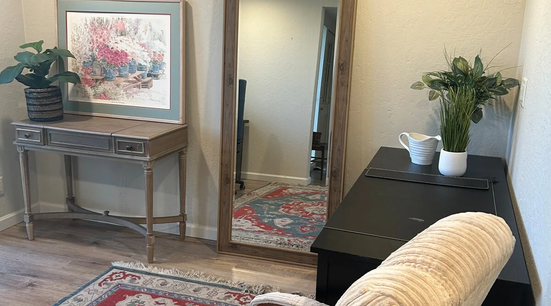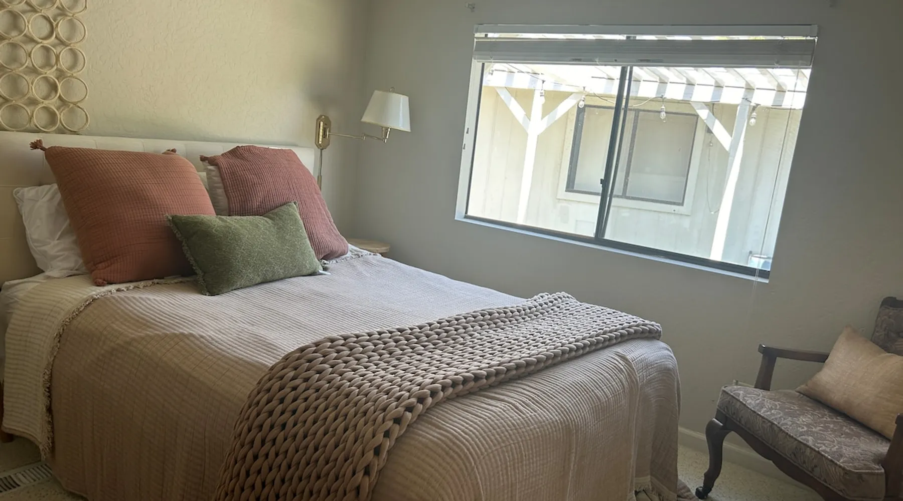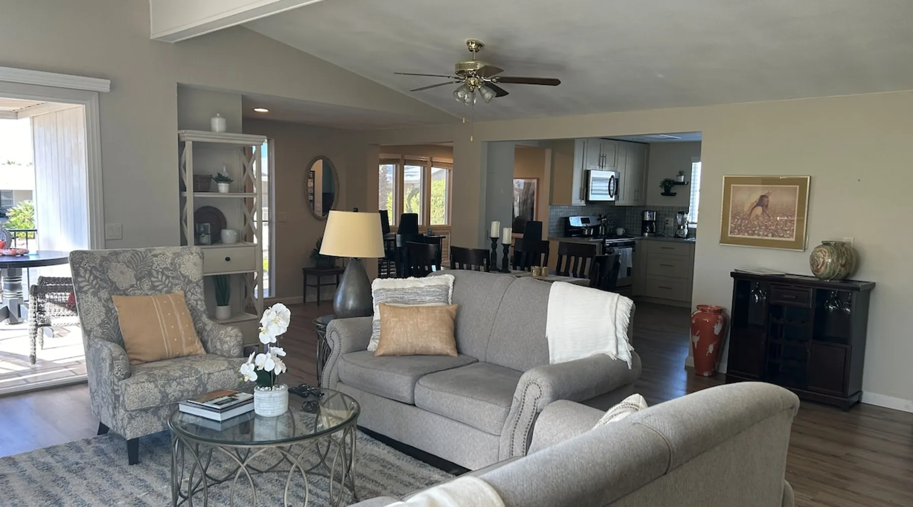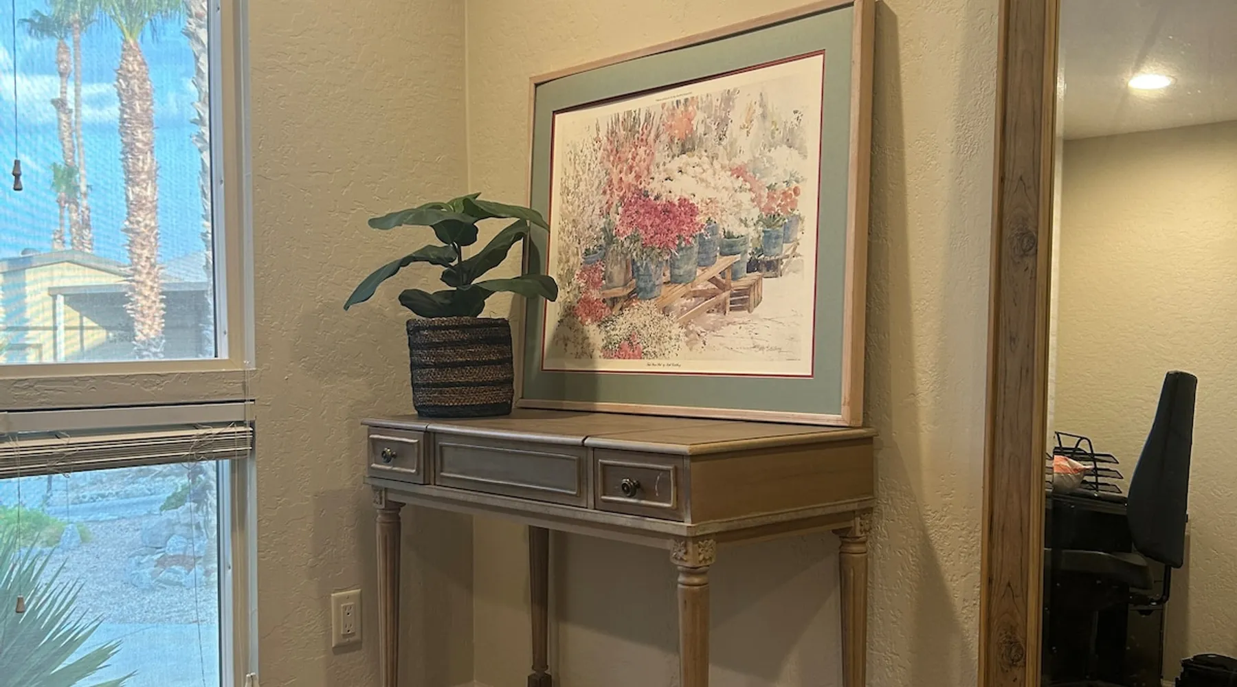 Relax at our peaceful and spacious house, watching sunsets over the mountains from our newly renovated living room and kitchen. Conveniently located 20 minutes from Palm Springs and 45 min. from Joshua Tree. Located in a quiet street with a 3-4 minute walk to pools and mineral pools. The sizeable master bedroom comes attached with a bathroom, walk-in closet and a very comfortable queen bed. Amenities include a full kitchen with new stainless steel appliances, dishes and cooking utensils. The space HOUSE: This two bedroom, two full bathroom home is not only in an exceptional location near the pools but has an equiped office with a beautiful view, a deck and back patio. You will enjoy your stay both for the spacious home and outdoor space complete with mountain views. The home has a bright and cozy living space with wall to wall windows to take in the views. Enjoy watching your favorite shows two large TV screens with cable. The kitchen is a very newly renovated modern kitchen with new stainless steel stove and refridgerator. It is fully stocked with everything you need to cook including a Keurig, coffee pot, kettle, coffee and tea, dishes, cooking utinsels, etc. The primary bedroom is very spacious with a very comfortable queen sized bed, a walk-in closet, attached full bathroom with two sinks and ample storage. The second bedroom has a double size bed with dresser and under bed storage, large closet. --perfect for one or two people to stay and enjoy their own space. The front deck off the front room has a lovely seating area perfect for a drink to enjoy the beautiful sunsets over the San Jacinto Mountains. The back patio is private with a BBQ, fire pit, comfortable outdoor seating to enjoy reading a book or sitting around with friends. Off the patio is a spacious backyard with a reclining lounge chair to catch some sun. This home has many areas where one can relax. This home comes with tennis rackets and balls and pool towels. SAFETY: Our home is professionally cleaned and sanitized before and after each guest to ensure you have a safe experience. PARKING: Our home has a driveway that can hold two cars back to back if needed. The resort is completely walkable and this home is very close to the east side clubhouse with the mineral pools and hot tubs. RESORT: Sky Valley Resort is the favorite of many people. Tiny houses and mid century style manufactured homes meander around the lakes and trails. There are 13 natural mineral pools in addition to hiking trails, tennis, pickle ball and basketball courts. There is even a farmer's market every Wednesday (weather permitting) and a little market + cafe at the clubhouse. Guest access Guest access Sky Valley Resort is a secure, gated community. You will be provided a gate code upon your arrival. Parking available for two cars in driveway. The resort is very walkable and bike friendly. Additional guest parking available on the street and at the clubhouse. Most residents use their golf carts to get around. Golf carts are available for guest rental during the season September-May annually. Other things to note OTHER THINGS TO NOTE: This is a quiet & serene community of vacationers and permanent residents in the beautiful Sky Valley Resort. If you are looking for a place to get loud and party, this spot may not be for you. The community appreciates peace and quiet at all times and in all locations. All guests must be at least 25 years old to book and provide a valid photo ID. Guests will sign the resort rental agreement within 48 hours of booking. LONGER STAYS: We require a mini cleaning every 2 weeks for long term stays at $45/cleaning + $125 for the checkout cleaning. Wellness - A special feature of this house/park are the wellness mineral pools and hot tubs. This park is only one of six places in the earth that has natural hot springs with a combination of minerals including magnesium, potassium, etc.. The springs provide clean, odorless and warm natural water full of minerals. Soaking in the pool or hot tubs for at least 15 minutes helps one circulation, etc. For more information read here: 🌿 Discover the Healing Power of Sky Valley’s Natural Hot Mineral Pools 🌿 Only 6 places in the world are known to have this rare combination of odorless, clear, and clean hot mineral water — and Sky Valley is one of them! Our hot spring water is continuously replenished, naturally heated, and enriched with a unique blend of therapeutic minerals known to support the body, mind, and skin. ⸻ 💧 What Makes Sky Valley Water Special? Natural Mineral Content (per liter) • Silica (22.5 mg/L): Known to support skin elasticity, joint health, and collagen production. Helps soften and smooth the skin naturally. • Calcium (39.2 mg/L): Vital for strong bones, muscle function, and nerve signaling. Bathing in calcium-rich water may aid in relaxation and skin repair. • Magnesium (1.0 mg/L): Often called the “relaxation mineral,” magnesium helps calm the nervous system, ease muscle tension, and reduce inflammation. • Sodium (280 mg/L): Assists in hydration balance and can help soothe and soften the skin. Excellent for those with dry skin conditions. • Potassium (6.27 mg/L): Helps with cellular hydration, supports skin barrier function, and encourages natural detoxification. • Chloride (120 mg/L): Plays a role in balancing electrolytes and maintaining skin moisture. • Iron (11.1 μg/L): Essential for oxygen transport and cellular energy. In small amounts, it supports circulation and skin tone. • Lithium (13.2 μg/L): Known for its mood-stabilizing effects, lithium may help enhance emotional well-being and reduce stress when absorbed transdermally. • Manganese (0.38 μg/L): Supports collagen production and acts as an antioxidant, protecting skin cells. • Iodide (0.043 mg/L): A trace mineral important for thyroid support and immune system function. • Dissolved Oxygen (0.2 mg/L): Promotes cellular regeneration and increases the vitality of the 