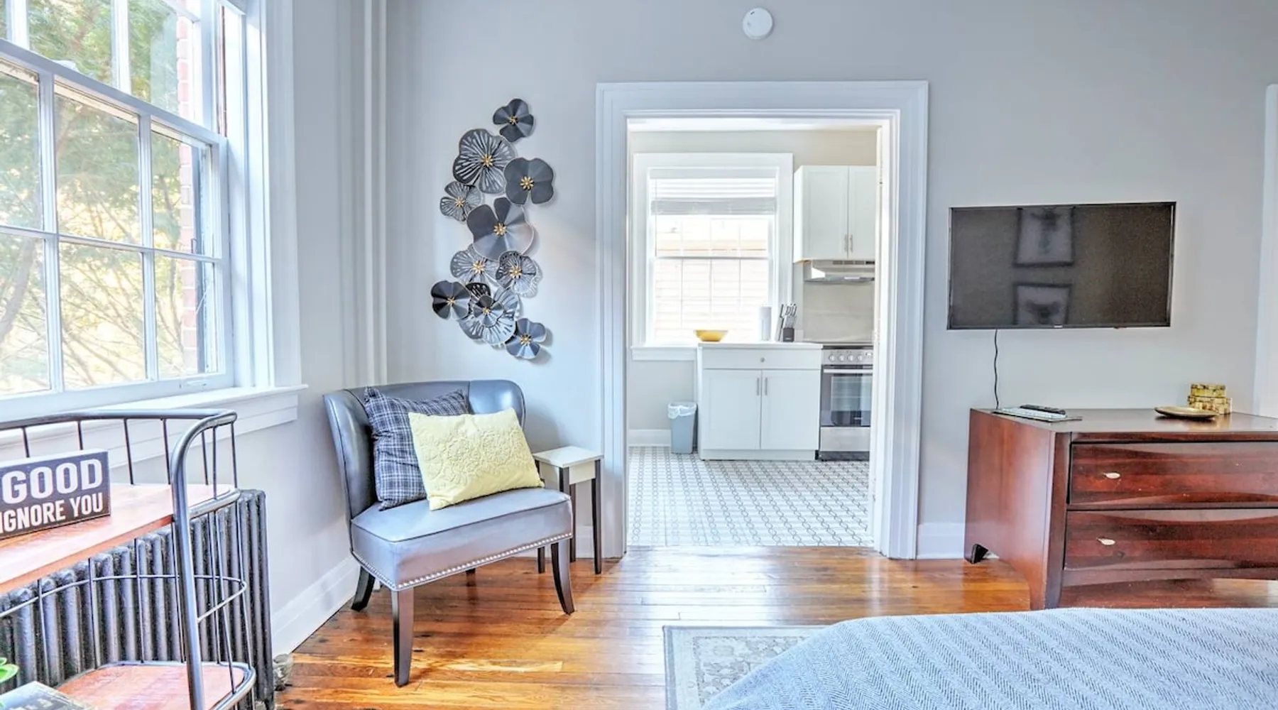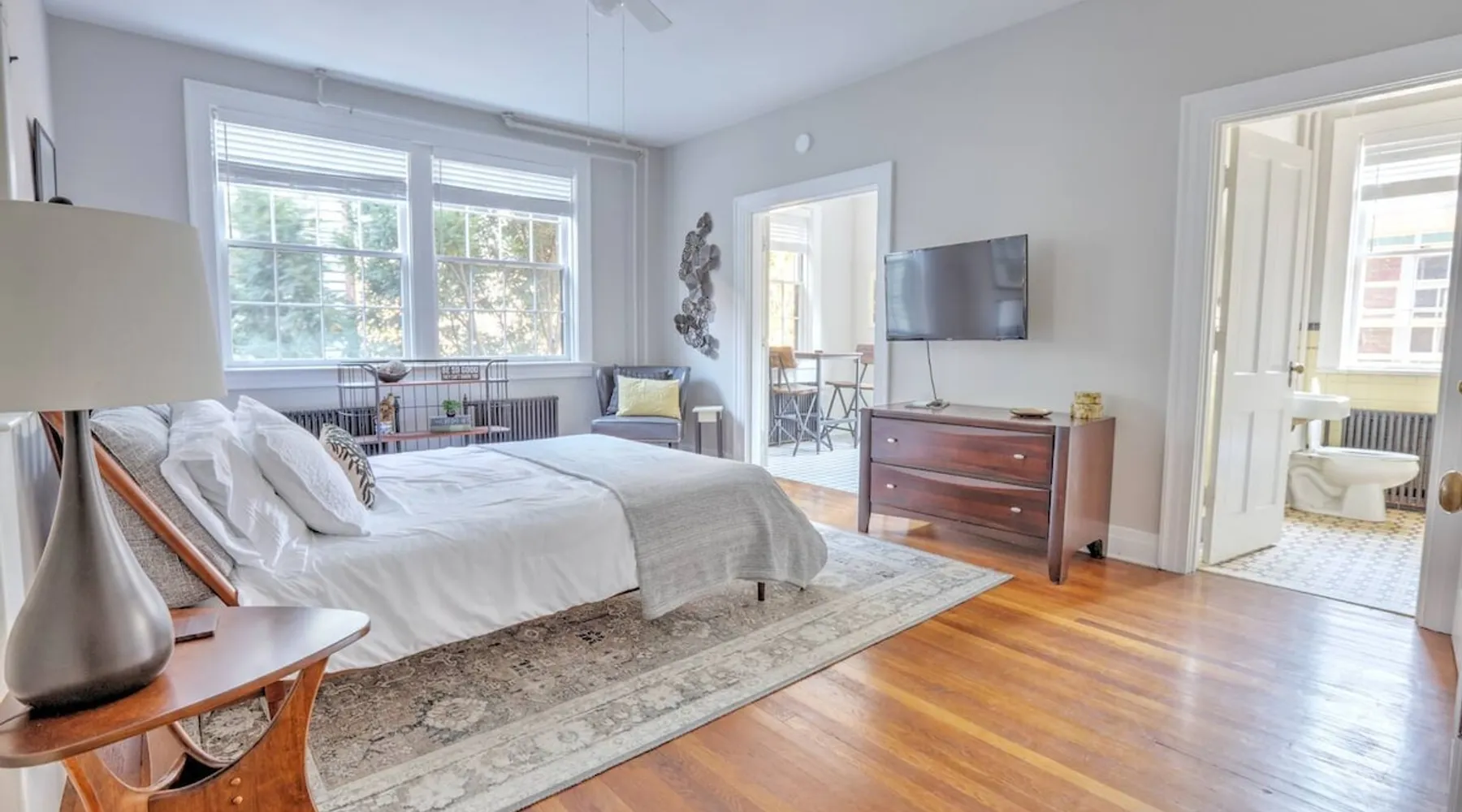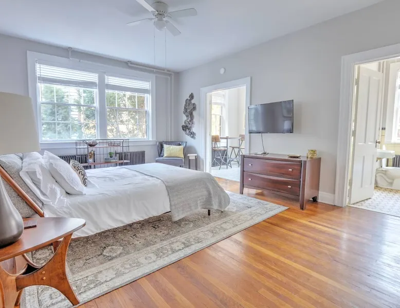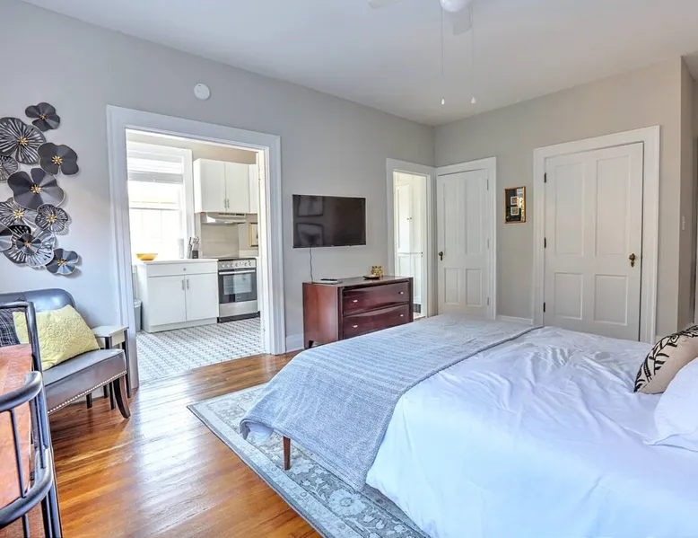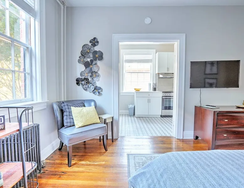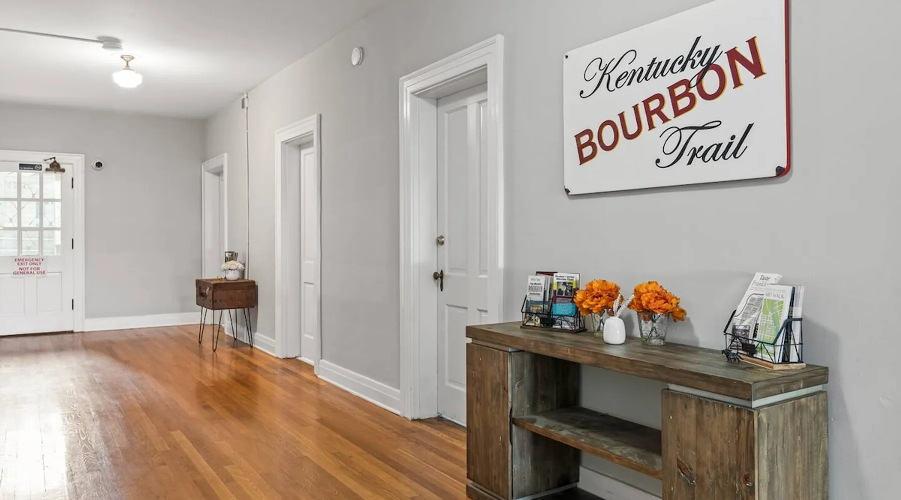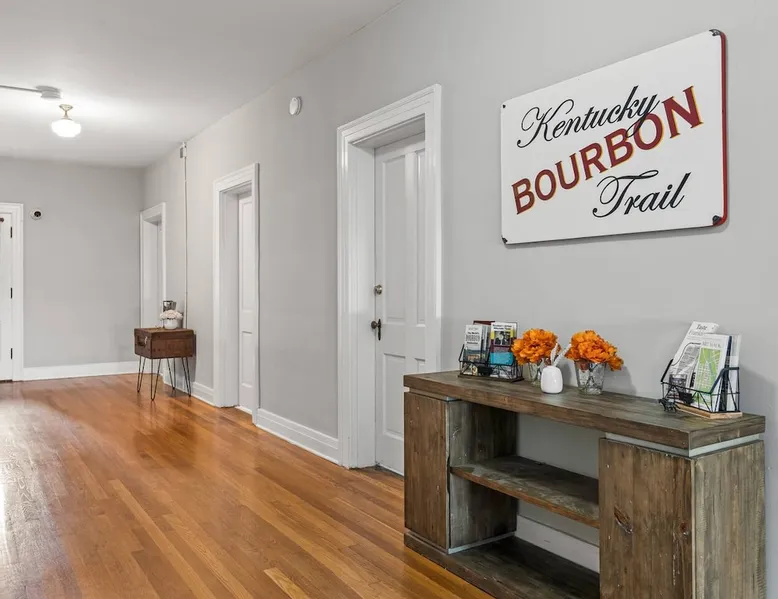This historic gem is a few blocks in either direction from the State Capitol and downtown Frankfort. The 1930's brick building has been stylishly renovated and historically preserved. This studio apartment has a full-sized bed with fluffy linens, blackout curtains and sound-insulated door for your comfort. The carefully restored Art Deco bathroom is stocked with hotel-quality towels. The freshly remodeled kitchen has cooking essentials to help you feel at home. We are owner-managed with pride. The space This 1930's era brick building has been stylishly renovated with an eye to historic preservation. It houses ten well-appointed monthly rental units that are perfect for legislators, government contractors, digital nomads, those on temporary assignment and true lovers of the bourbon trail. Distiller's Guest House is your home from home. This one-bedroom apartment features a full-sized bed with fluffy linens. The art-deco style bathroom is stocked with hotel-quality towels. The freshly remodeled kitchen has all of the essentials you need to feel at home. If you are booking for a larger family or friend group, consider renting neighboring units in our building. You can have group adventures and then recharge in your own private spaces. Guest access This building is accessed through an outside door with keyless entry. Each unit also has its own keyless entry code. There is a sitting area between floors for meeting and socialization. The well lit, safe basement has free washers and dryers for guest use. Other things to note No smoking, vaping, no illegal drugs and no candles are allowed on property.