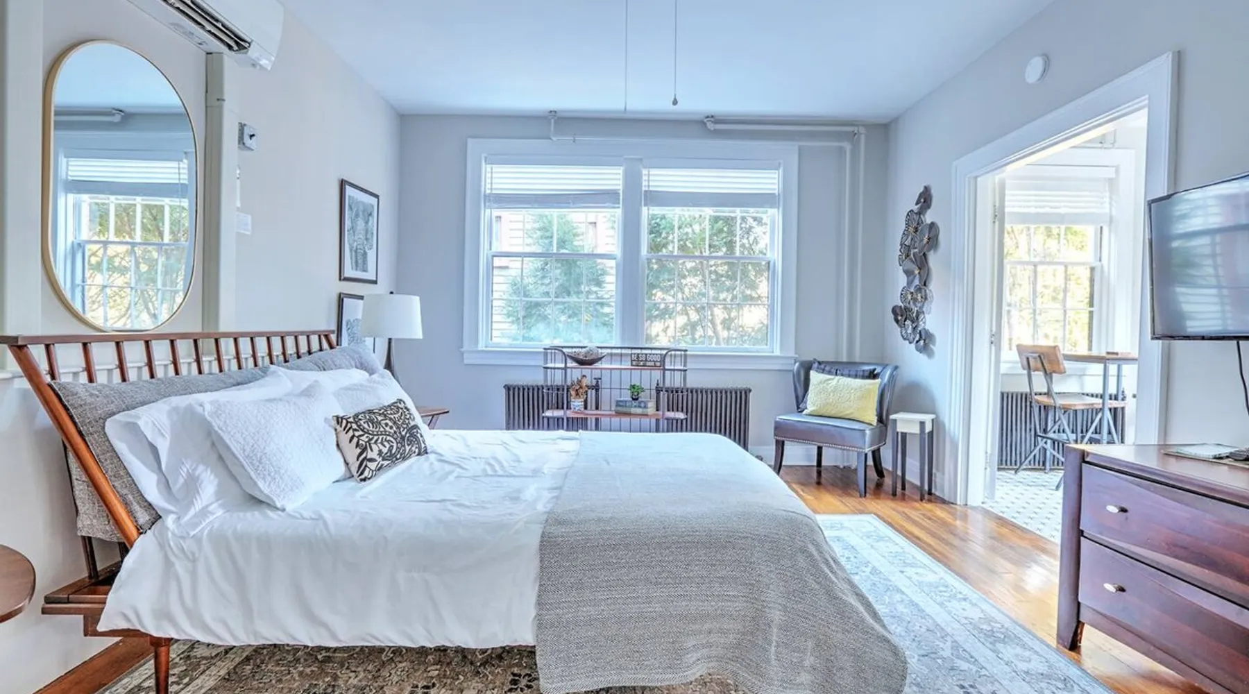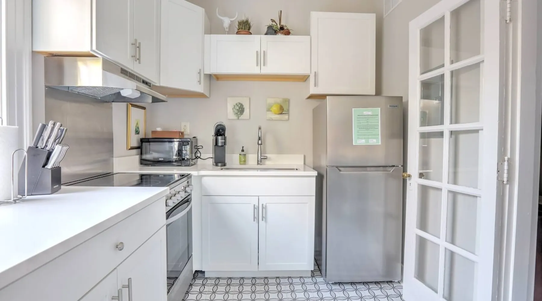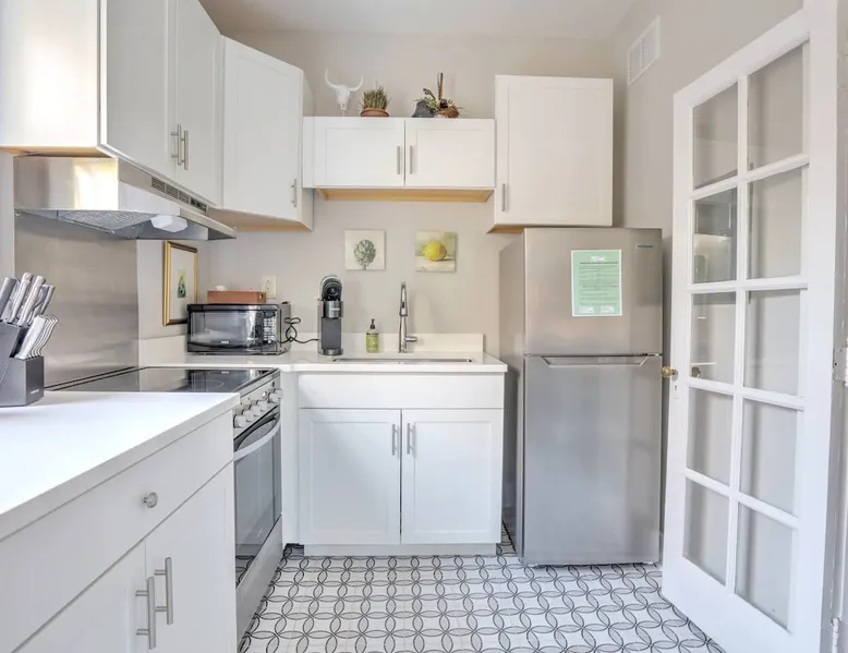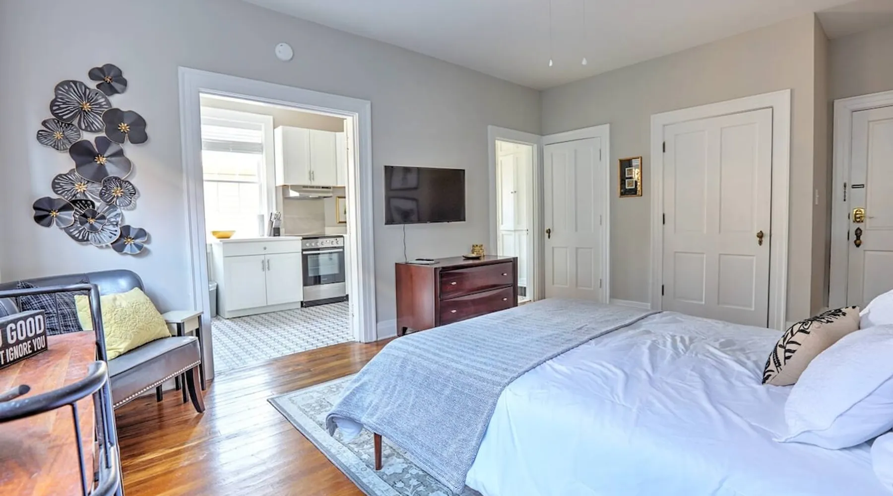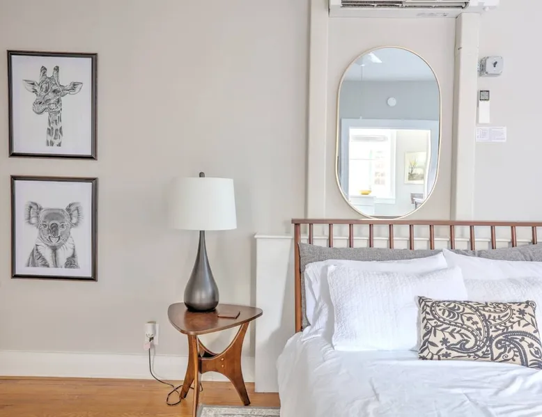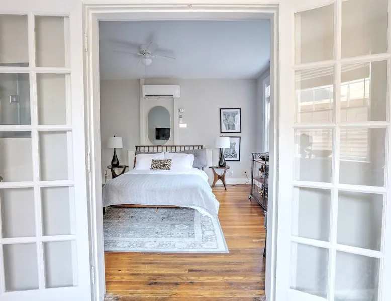 This historic gem is a few blocks in either direction from the State Capitol and downtown Frankfort. The 1930's brick building has been stylishly renovated and historically preserved. This studio apartment has a full-sized bed with fluffy linens, blackout curtains and sound-insulated door for your comfort. The carefully restored Art Deco bathroom is stocked with hotel-quality towels. The freshly remodeled kitchen has cooking essentials to help you feel at home. We are owner-managed with pride. The space This 1930's era brick building has been stylishly renovated with an eye to historic preservation. It houses ten well-appointed monthly rental units that are perfect for legislators, government contractors, digital nomads, those on temporary assignment and true lovers of the bourbon trail. Distiller's Guest House is your home from home. This one-bedroom apartment features a full-sized bed with fluffy linens. The art-deco style bathroom is stocked with hotel-quality towels. The freshly remodeled kitchen has all of the essentials you need to feel at home. If you are booking for a larger family or friend group, consider renting neighboring units in our building. You can have group adventures and then recharge in your own private spaces. Guest access This building is accessed through an outside door with keyless entry. Each unit also has its own keyless entry code. There is a sitting area between floors for meeting and socialization. The well lit, safe basement has free washers and dryers for guest use. Other things to note No smoking, vaping, no illegal drugs and no candles are allowed on property.