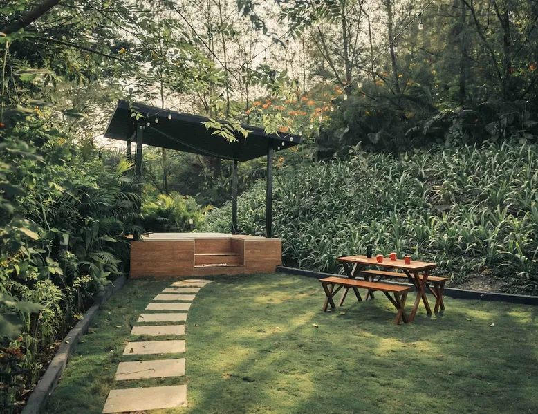 Enjoy the lovely setting of this romantic spot in nature. At just 280 sq.ft, this tiny cabin manages to meld Japanese tranquility, Scandinavian simplicity, and a handmade Indian sensibility. It promises to be one of those places that leaves a constant happy smile on your face while you're there. It can be configured as a quiet getaway with your partner along with your kid, or for a couple of friends who just want to get out of the city for a break or work remotely as well! Other things to note Breakfast is inclusive in the above cost. Also, we have an in-house chef at the property. You can place an order for all of your other meals with him, he will cook the meals at our common kitchen and provide you with the food in your kabin, so you don’t even have to move out of the property for anything. Our food prices are very reasonable as well.