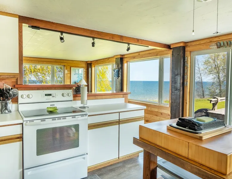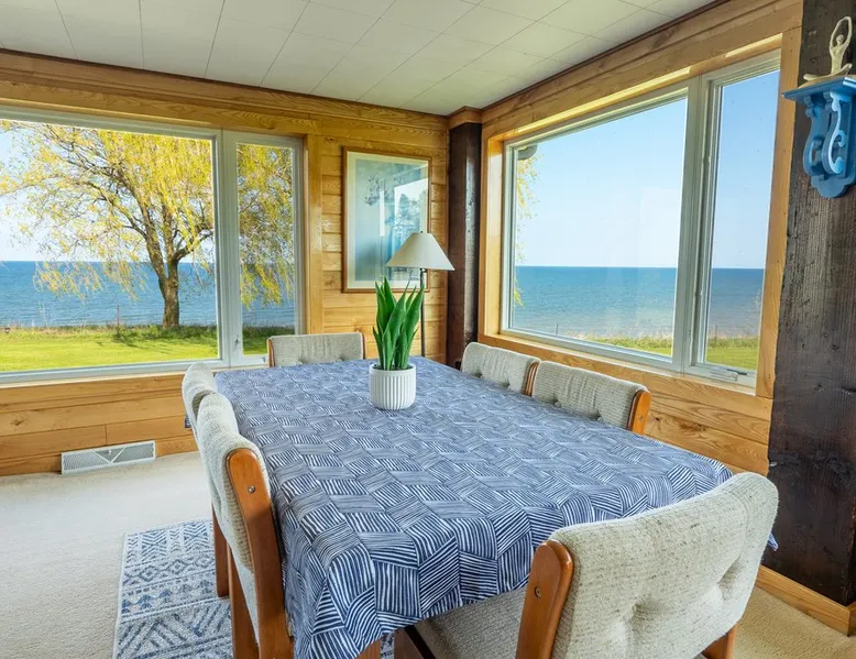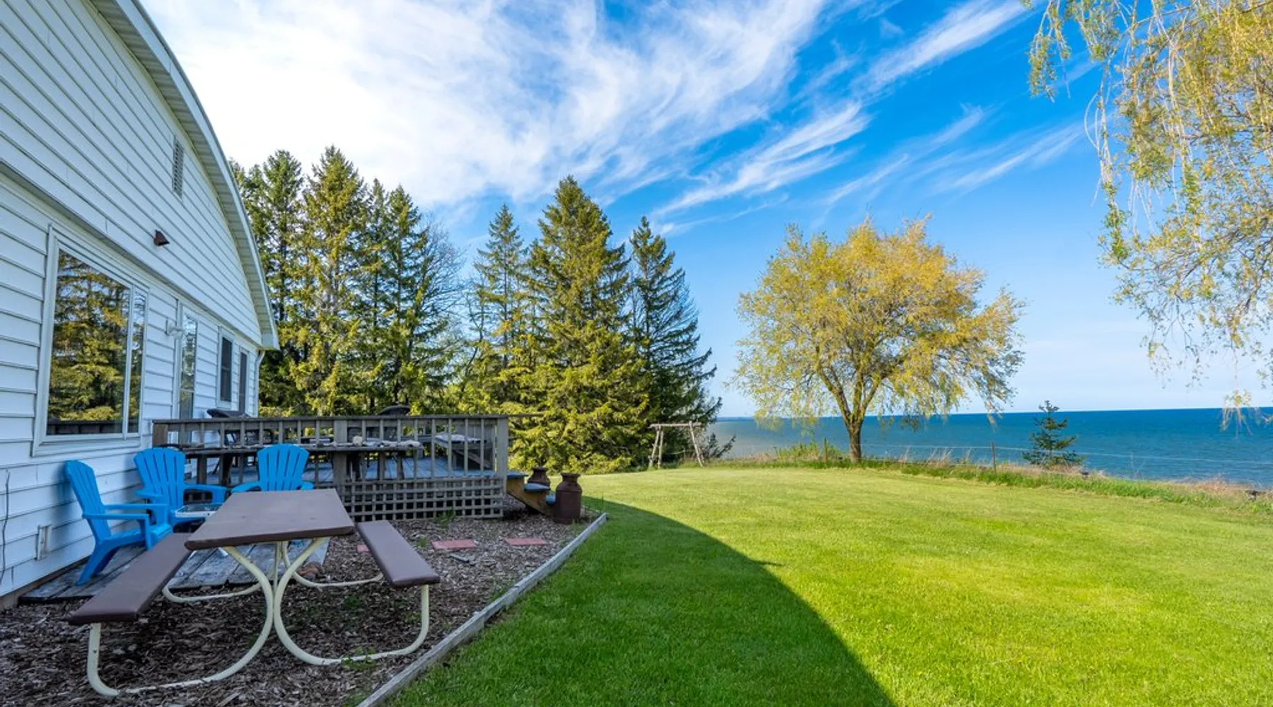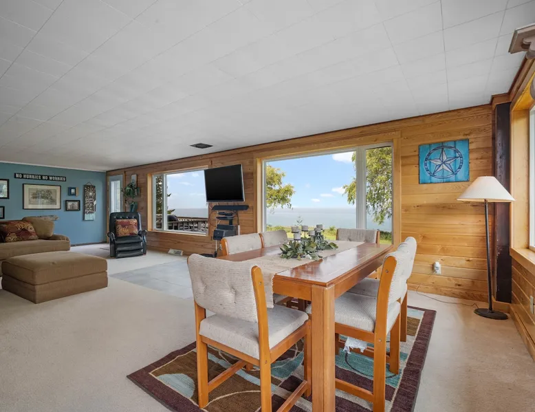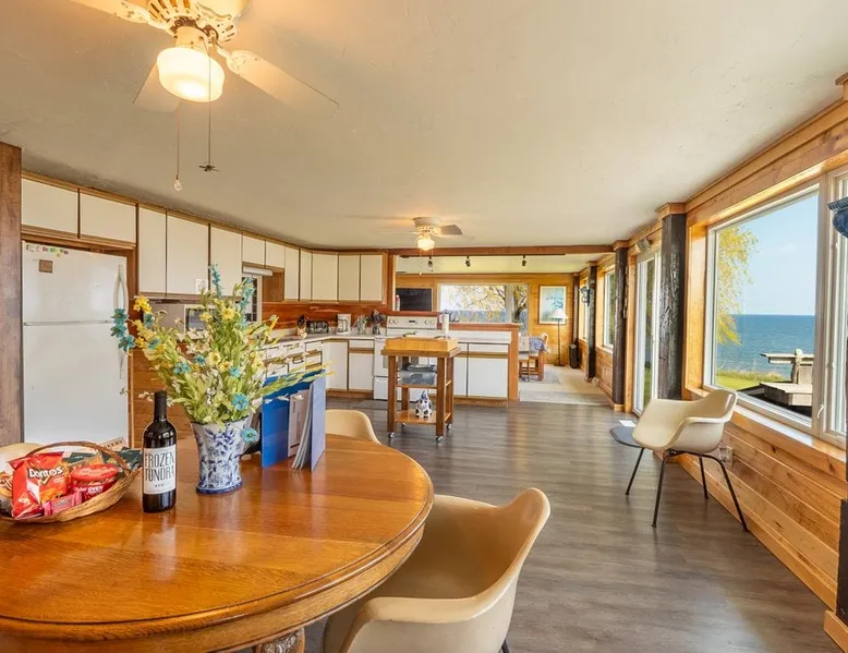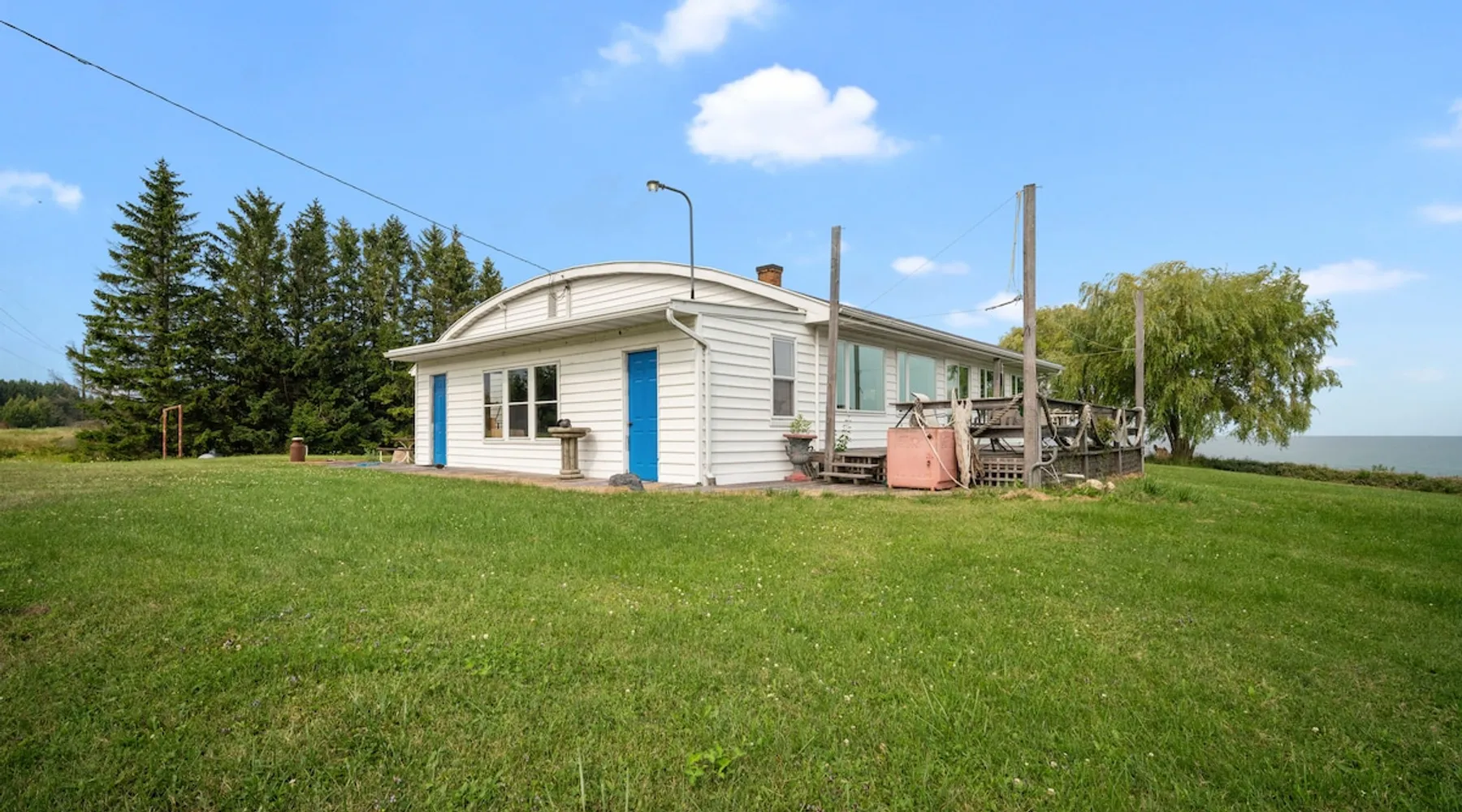 Perched on a scenic bluff, this one of a kind Quonset style home offers the perfect blend of tranquility and convenience. Nestled on 3 acres, its just minutes from Kewaunee and Algoma and 30 miles from both Green Bay and Door County. Whether you're sipping coffee with a sunrise view, stargazing by the fire, or exploring the Wisconsin coastline, this is your perfect getaway. Unfortunately, there is NO direct beach access from the home.