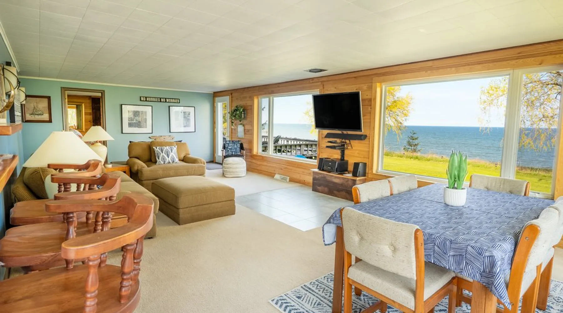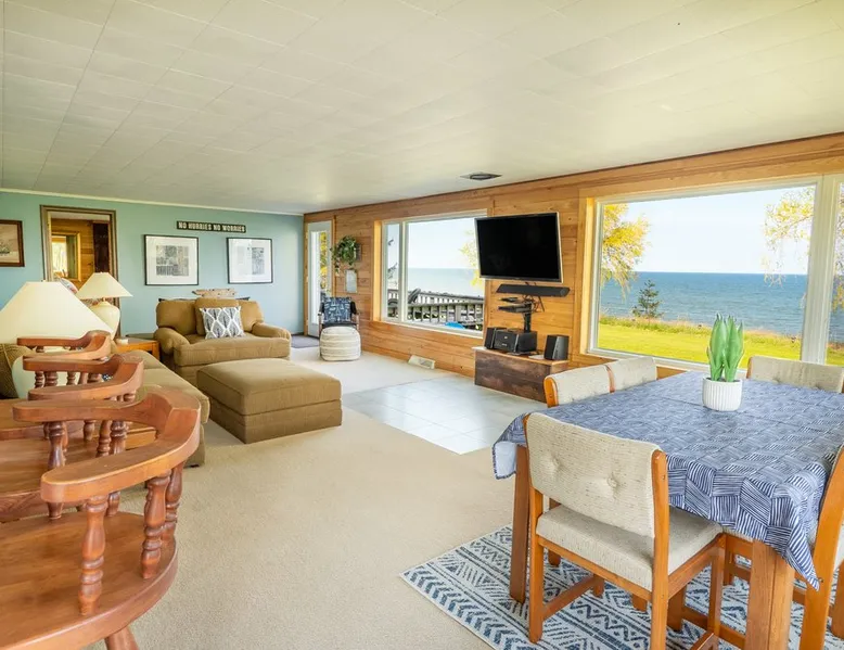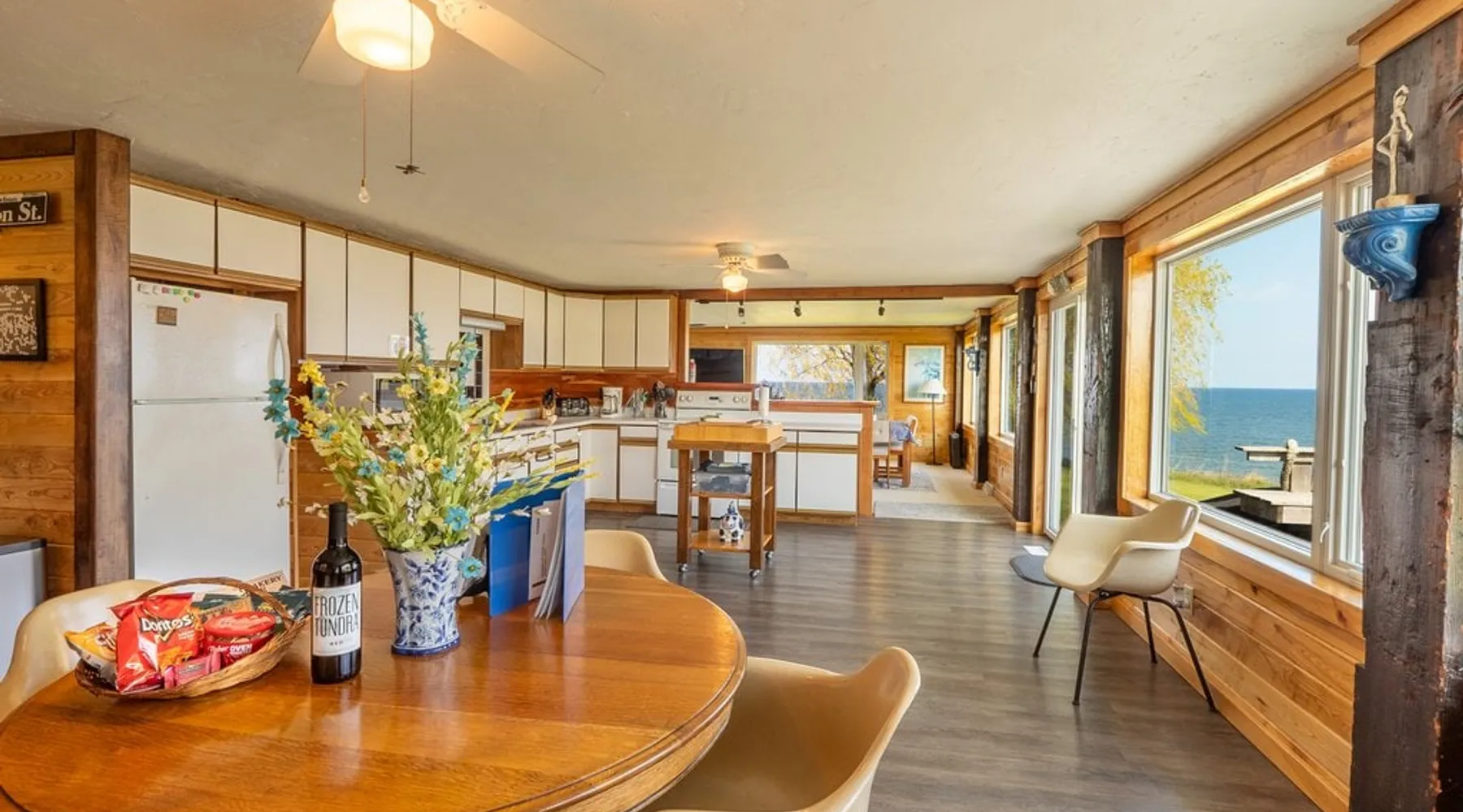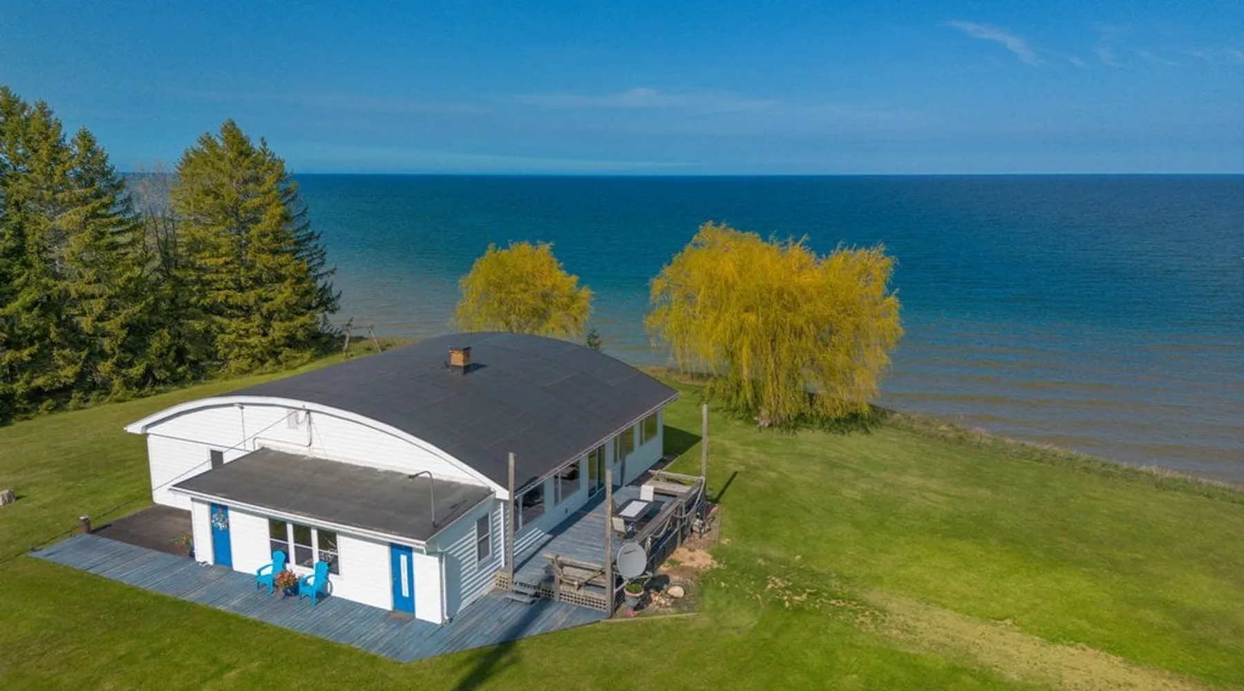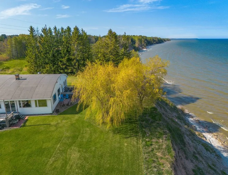 Perched on a scenic bluff, this one of a kind Quonset style home offers the perfect blend of tranquility and convenience. Nestled on 3 acres, its just minutes from Kewaunee and Algoma and 30 miles from both Green Bay and Door County. Whether you're sipping coffee with a sunrise view, stargazing by the fire, or exploring the Wisconsin coastline, this is your perfect getaway. Unfortunately, there is NO direct beach access from the home.