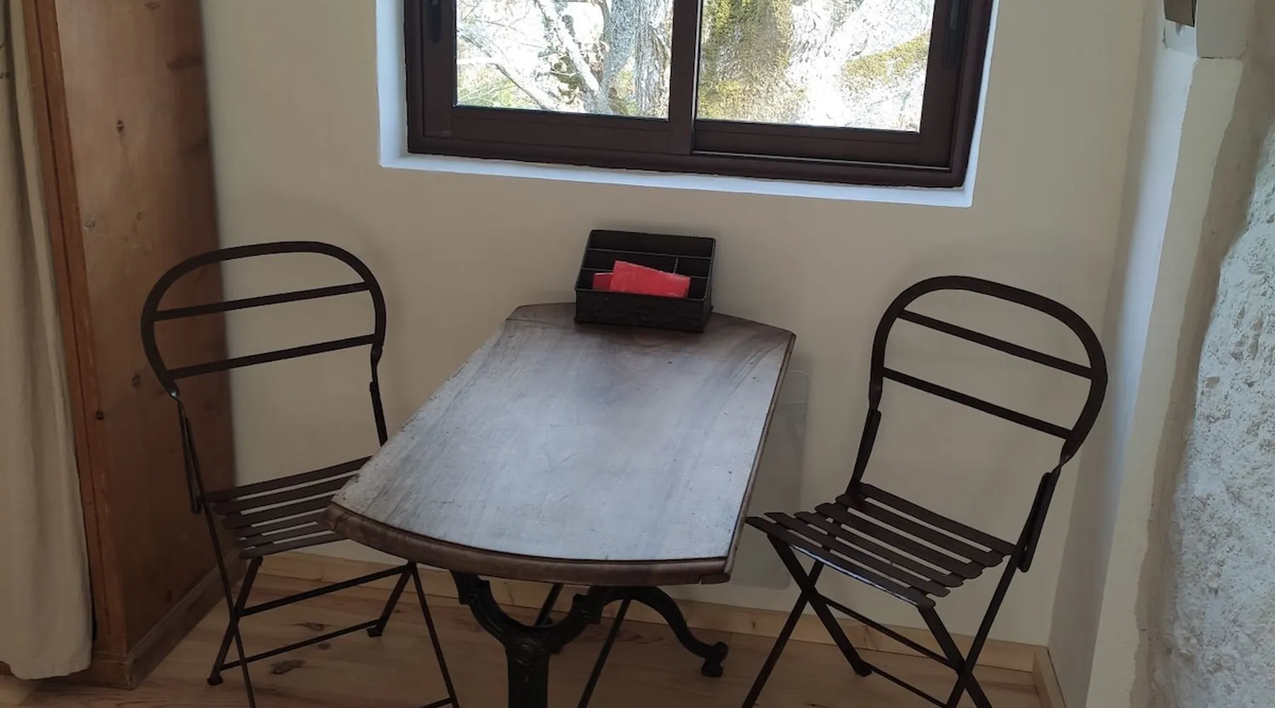 Character bed and breakfast, in a small stone building. Independent entrance, with shower room and toilet, in the heart of the Trigancoise countryside, but only 7 minutes' walk to the village. Come and recharge your batteries in a quiet, privileged environment. please note that our accommodation is not in a publicly lit place, if you arrive late, please make sure that you have entered the coordinates or address of the place on your GPS. The space Centenary oaks bordering the property. Numerous relaxation spaces with sunbathing. Rejuvenating and invigorating, enjoy a relaxing moment in a friendly family environment. This bastide called Maison de la Roche Trouée (peak rocky hole 150 m from which you have an exceptional view of the plain) is the ideal starting point for hiking. It is located 7 minutes away on foot to the center of the village. We also offer a visit to the pottery workshop on site, with the possibility of learning about this craft Guest access If you come by car, access is via a 400 m track, starting from the village towards AIGUINES. It's best to use WAZE and enter our address: 177 Chemin de la Roche Trouée A relaxation area is reserved with sun loungers and breakfast or meal area (garden furniture) Other things to note please note that our accommodation is not in a publicly-lit place, if you arrive late, please make sure you have successfully entered the contact information or address of the location on your GPS. Warning! We recommend using WAZE and not GOOGLE which will take you to our neighbor's house