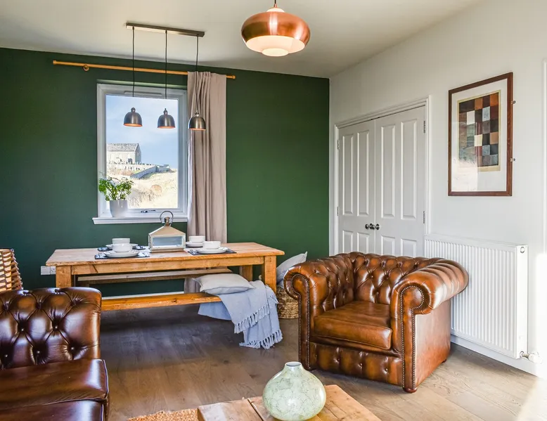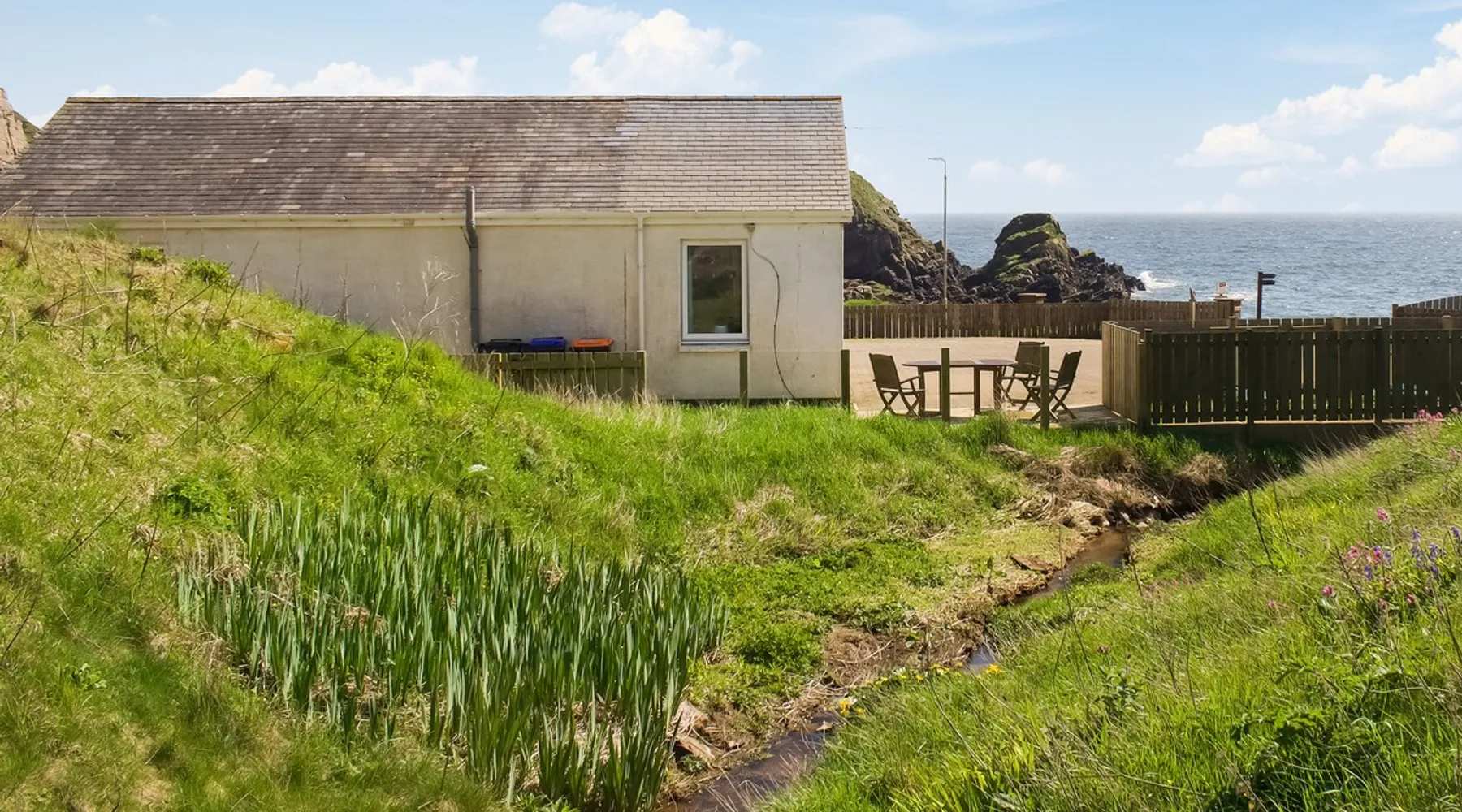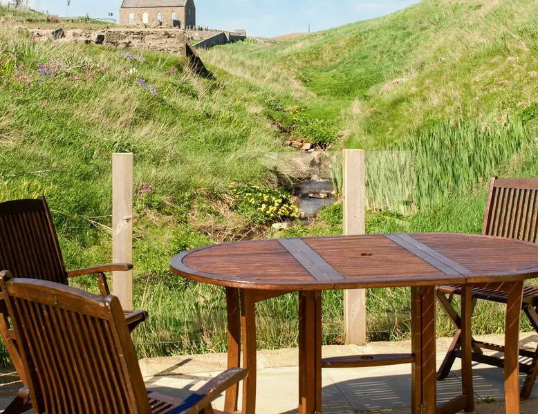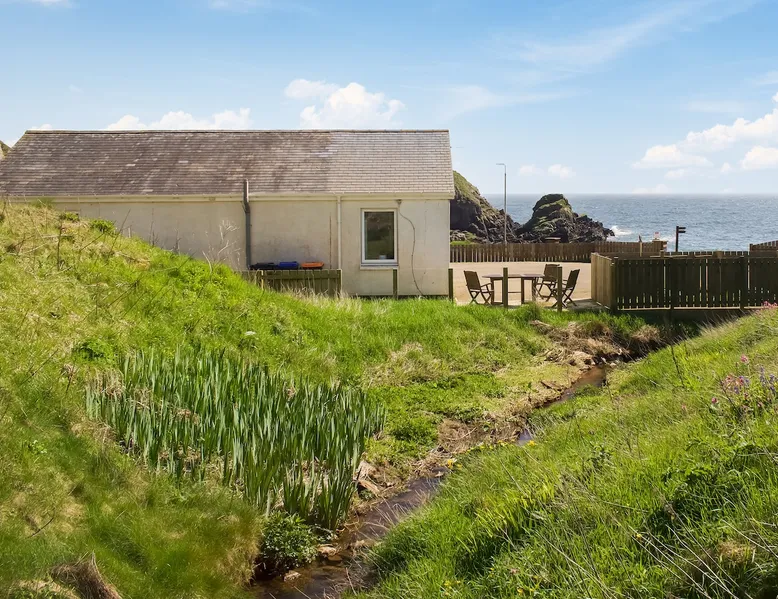 A delightful holiday home for couples or families wishing for a magical seaside experience. The space A delightful holiday home for couples or families wishing for a magical seaside experience.. 1 step to entrance. All on the Ground Floor: Living/dining room: Freeview Smart TV, Sofa Bed (Double) (Flexible Sleeping Only) Kitchen: Breakfast Area, Electric Oven, Ceramic Hob, Microwave, Fridge/Freezer, Washer Dryer Bedroom 1: Zip And Link Super Kingsize Bed (2 x Singles On Request) Bedroom 2: Kingsize (5ft) Bed Bathroom: Bath With Shower Over, Heated Towel Rail, Toilet. Electric central heating, electricity, bed linen, towels and Wi-Fi included. Welcome pack.. Enclosed garden with sitting-out area, garden furniture and BBQ. Private parking for 3 cars. No smoking.. This gorgeous holiday home is everything you want from a seaside break – literally just a few yards from the shore on the outskirts of the quaint village of Collieston, you will not tire from the sound of the waves and the everchanging seascape. Commanding panoramic views towards the sea, there is a seating area which looks directly onto the shore and is a perfect spot to have an al fresco meal or a drink after a day out exploring the fascinating coastline. The cottage has been carefully furnished with a bright interior, complemented by the owners’ artistic touch. The property is set in a generous paved area with a secluded decked seating area to the side of the house – a real sheltered suntrap, while inside the cosy rooms are perfect in less clement weather. There is plenty to see and do in the area: nearby Cruden Bay is home to a world class golf course which attracts many visitors through the year while to the north the brooding presence of Slains Castle, widely acknowledged to be the inspiration behind Bram Stoker’s Dracula is well worth a visit. Nearby The Bullers of Buchan, an awesome natural phenomenon where the sea rushes into a vertical cavern, is an absolute must. For wildlife lovers, here you are based within Forvie Nature Reserve, with walks right from the doorstep where you can enjoy the stunning scenery of sand dunes and swirling waters. Visit Newburgh beach, home to the largest colony of seals in Scotland. The city of Aberdeen is just 23 miles away offering all modern facilities and the coastal trail north takes in many other quaint villages offering many a pleasant day out. Beach 10 meters away. Free WiFi Can comfortably fit up to 4 people