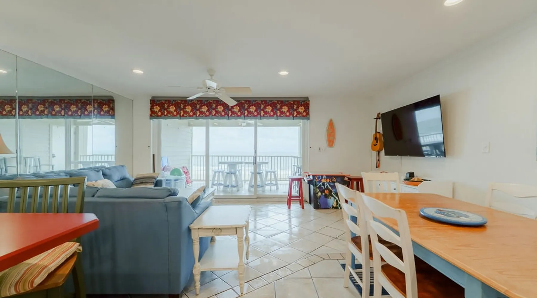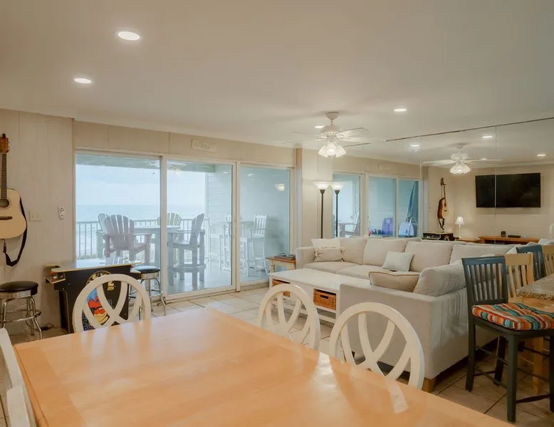 Do you have a large family/group? Holding a wedding/vow renewal/reunion, etc? These direct oceanfront condos are perfect! Rent our 2 adjacent condos and have the enitre top floor of our small 3 story building. Each condo has 3 bedrooms & 2 full baths, so together you get 6 bedrooms and 4 full baths. Enough beds to sleep 16 guests with no one on the couch! 2 connected 12x15 covered balconies with steps directly to the sand 2 full kitchens 2 living rooms 2 reserved parking spaces The space With this property, you are renting two mirror image condos. The condos DO NOT have an interior door connecting them. To go from one unit to the other, you would either exit one unit thru the front door and enter the other - the doors are immediately next to each other. Or, you can open the two locking deck doors and walk between the two units via the decks and sliding glass doors. Guest access We have smart locks. No keys! Other things to note Please read the house rules before booking and send the word you read there as confirmation you have read then. Thanks! If you want to hold an event, like a wedding, vow renewal, or family reunion please let us know before booking, so we can make sure its an allowable use of the property. If you are bringing a pet, let me know about your pet so I can pre approve them. We love pets, but need to approve them. Ill share a lodging agreement with you to sign digitally after you book. Only guests listed on the lodging agreement may stay at the property Registration Details 81347