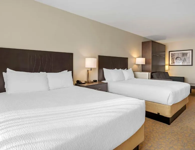 Comfortable Accommodations: Best Western Plus The Inn at Hells Canyon in Clarkston offers family rooms with air-conditioning, microwaves, bath or showers, and TVs. Each room includes a kitchen, refrigerator, and work desk. Exceptional Facilities: Guests enjoy a fitness center, indoor swimming pool, and free WiFi. Additional amenities include a hot tub, elevator, 24-hour front desk, housekeeping service, electric vehicle charging station, and a business area. Delicious Breakfast: A continental and American breakfast is provided each morning. The child-friendly buffet caters to families with young children. Convenient Location: Located 5.6 mi from Lewiston-Nez Perce County Airport, the hotel offers free on-site private parking. Highly rated for its breakfast, room cleanliness, and attentive staff. This quadruple room features air conditioning, heating and a flat-screen TV. The unit offers 2 beds.