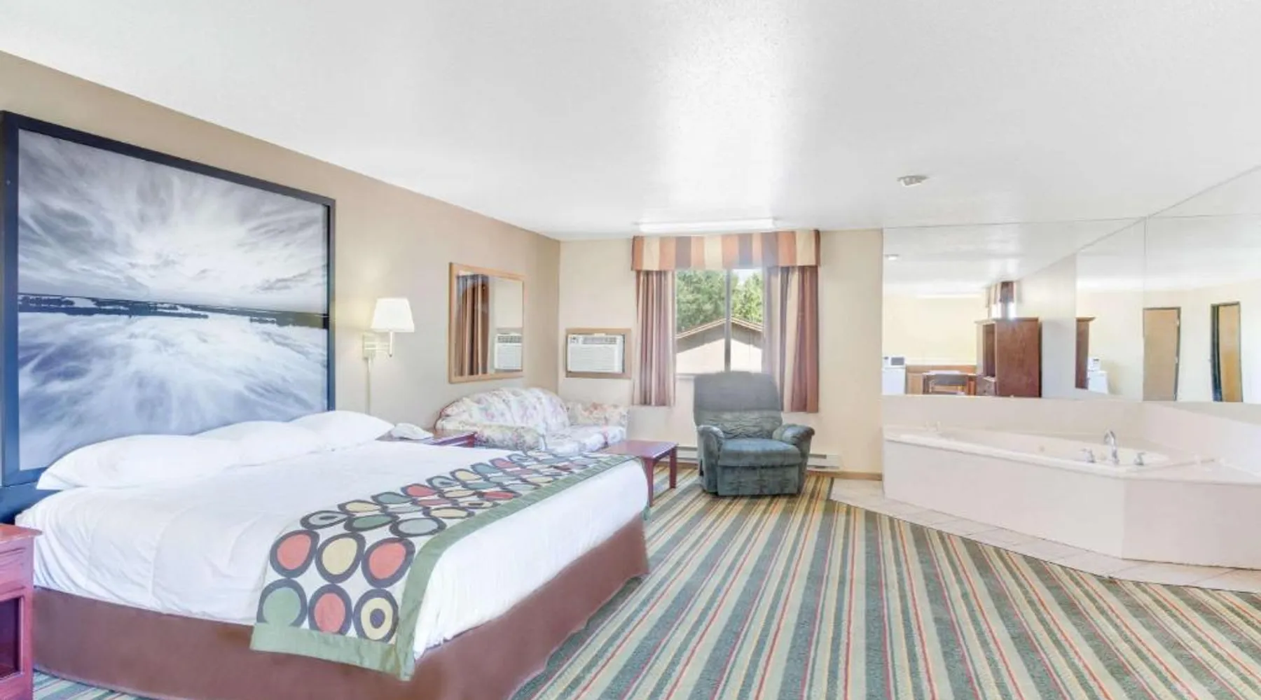 Offering an outdoor pool and an indoor pool, Mitchell Super8 is located in Mitchell. Free WiFi access is available. Lucky 8 Casino is connected to the motel. Each room here will provide you with a TV, air conditioning and cable channels. There is also a coffee machine. Featuring a shower, private bathroom also comes with a bath or shower and a hairdryer. Extras include bed linen. At Mitchell Super8 you will find a hot tub and a 24-hour front desk. Other facilities offered at the property include a vending machine. The property offers free parking. The quadruple room provides air conditioning, a tea and coffee maker, as well as a private bathroom featuring a shower and a hairdryer. This quadruple room offers heating and a TV with cable channels. The unit offers 2 beds.