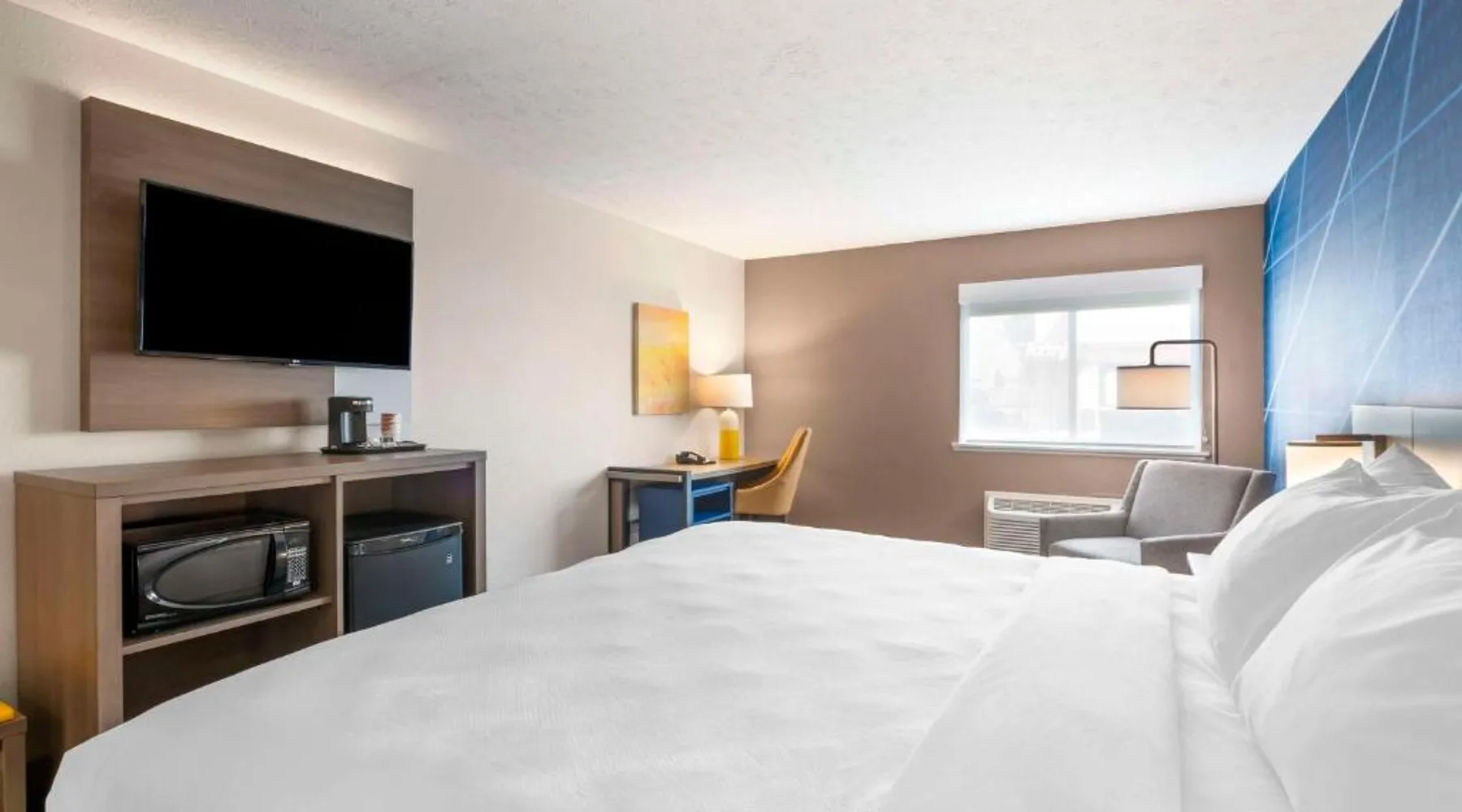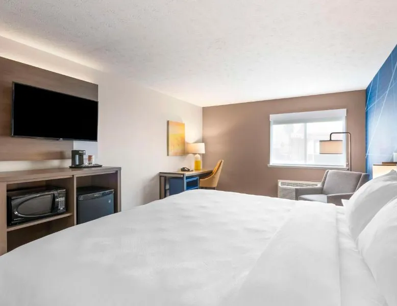 The Comfort Inn hotel is within walking distance to Edinburgh Premium Outlets. This shopping center features more than 75 retailers. Camp Atterbury military facility and kidscommons Children's Museum are also close to this hotel. Edinburgh features a number of unique outdoor recreation areas including the Driftwood State Fishing Area, Anderson Falls and Hoosier Horse Park. There are many restaurants and entertainment venues close to the hotel. Hotel features include: Free wireless high-speed Internet access, Free newspaper, Indoor heated pool and Fitness center. Your Morning Breakfast is full of hot options, making breakfast at the Comfort Inn the perfect way to start your day. Enjoy our free hot breakfast featuring eggs, meat, yogurt, fresh fruit, cereal and more, including your choice of hot waffle flavors. Hotel provides business travelers with additional conveniences like a computer with Internet access, and access to copy and fax service. All guest rooms at this hotel are furnished with high-definition televisions, coffee makers with free coffee, curved shower rods, hair dryers, irons, ironing boards, pillow-top mattresses and cable television. Work desks, microwaves, refrigerators and sofa sleepers are available in some rooms. Nonsmoking rooms can be requested. Join us in the lobby for our nightly manager's reception. Laundry facilities are located on the premises and on-site parking is provided. Cable TV is provided in this room, along with tea and coffee-making facilities and ironing facilities.