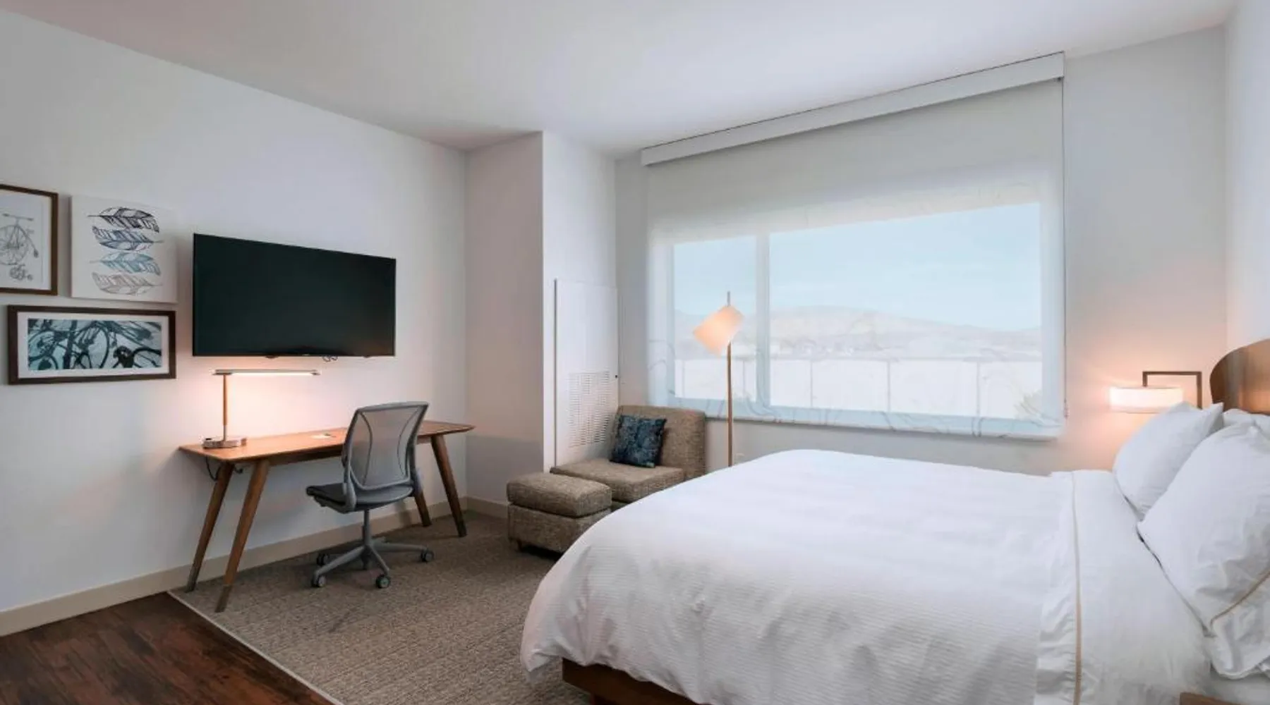 Comfortable Accommodations: Element Palmdale in Palmdale offers comfortable rooms with air-conditioning, private bathrooms, and free WiFi. Each room includes a work desk, TV, and free toiletries. Exceptional Facilities: Guests can enjoy a fitness center, sun terrace, and a year-round outdoor swimming pool. Free bicycles are available for exploring the area. Delicious Breakfast: A highly rated breakfast is served with local specialties, warm dishes, and fresh pastries. The child-friendly buffet caters to all ages. Convenient Location: Located 48 mi from Hollywood Burbank Airport, the hotel is near Dry Town Water Park (7.5 mi) and Willow Springs International Raceway (25 mi). Providing free toiletries, this double room includes a private bathroom with a shower and a hairdryer. The double room's kitchen, which features a microwave, is available for cooking and storing food. The spacious double room provides air conditioning, a tea and coffee maker, a seating area, a wardrobe and a flat-screen TV with cable channels. The unit offers 1 bed.