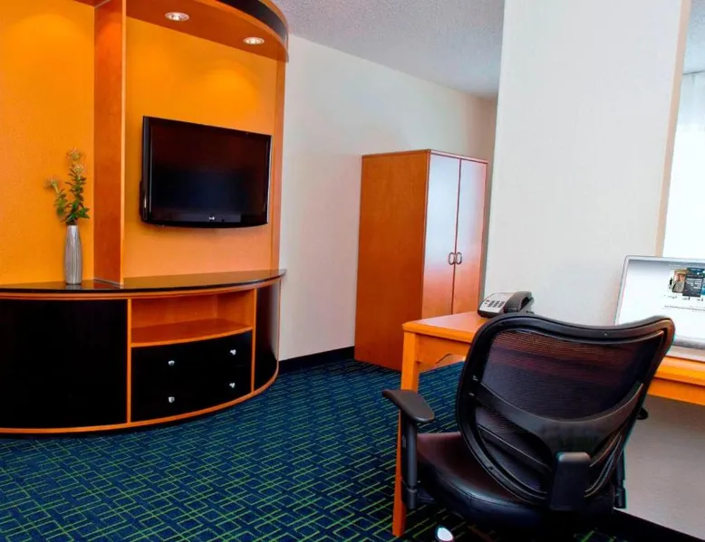 Comfortable Accommodations: Fairfield Inn & Suites Joliet North/Plainfield in Joliet offers family rooms with air-conditioning, private bathrooms, and modern amenities. Each room includes a work desk, free toiletries, and a TV. Exceptional Facilities: Guests can enjoy a fitness center, indoor swimming pool, and free WiFi. Additional facilities include a fitness room, elevator, 24-hour front desk, minimarket, business area, and express check-in and check-out services. Delicious Breakfast: A complimentary American buffet breakfast is served daily, providing a great start to the day. Convenient Location: Located 29 mi from Midway International Airport, the hotel is near attractions such as Joliet Area Historical Museum (6.2 mi) and Chicagoland Speedway (12 mi). Free on-site parking is available. Featuring a flat-screen TV, this room also offers tea and coffee-making facilities and a hairdryer in the private bathroom.