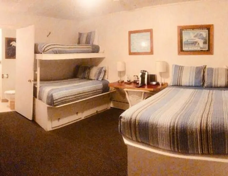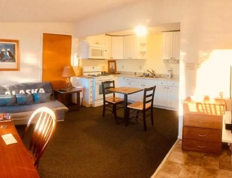 Comfortable Accommodations: Driftwood Inn in Homer offers comfortable rooms with private bathrooms and showers. Free WiFi is available throughout the property, ensuring guests stay connected. Convenient Facilities: Guests can enjoy free on-site private parking and a welcoming atmosphere. The inn is highly rated for its attentive staff and excellent service support. Prime Location: Located 1.9 mi from Homer Airport, the inn is a short walk from Bishops Beach. Nearby attractions include the Homer Spit and the Kenai Peninsula. The unit has 3 beds.