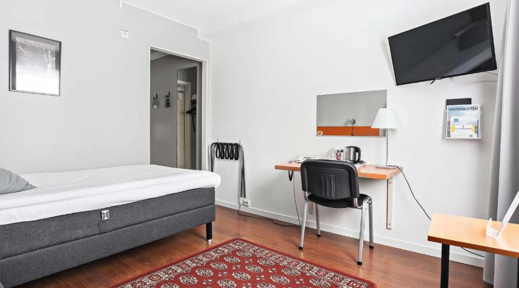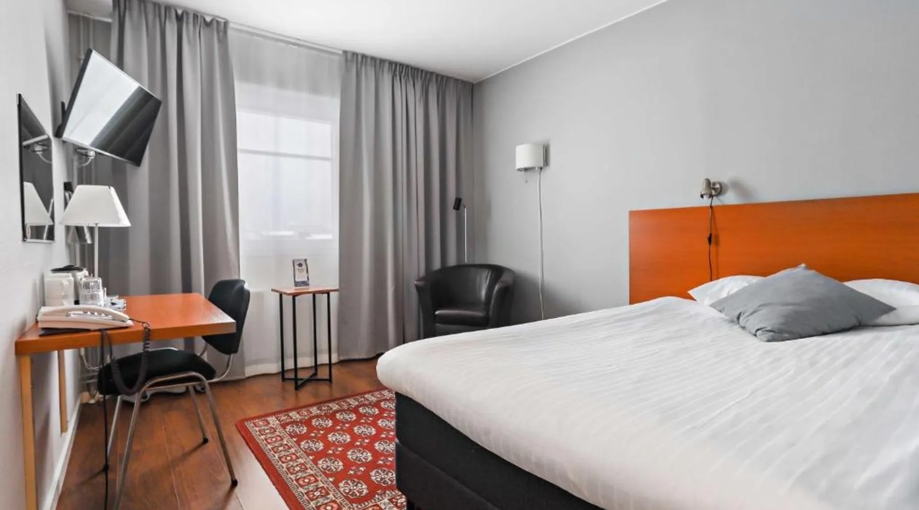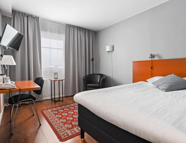 Overlooking the Ume River, this eco-friendly hotel is within 5 minutes’ drive of Umeå city center and airport. It offers free WiFi and sauna access and free parking. A jacuzzi is pre-bookable for an extra cost. Wooden floors, a large desk and cable TV with free movie channels are standard room features at Best Western Hotel Botnia. Some rooms offer river views. Botnia’s à la carte menu includes reindeer, elk and other regional specialties. This menu has to be pre-booked and is available for groups of at least 10 people. Free tea/coffee and fruit are available at all times. Other facilities include a garden and a terrace. A free internet computer is found in the lobby. Guests can borrow bikes for free on site and explore the area. This double room has a seating area and bathrobe. Pets are not allowed in this room.