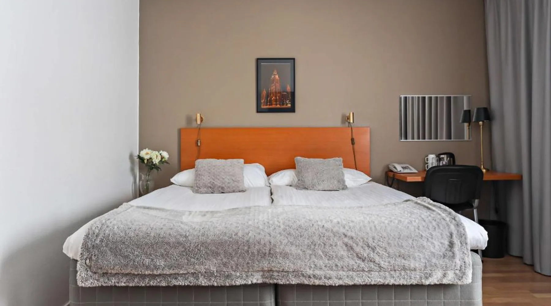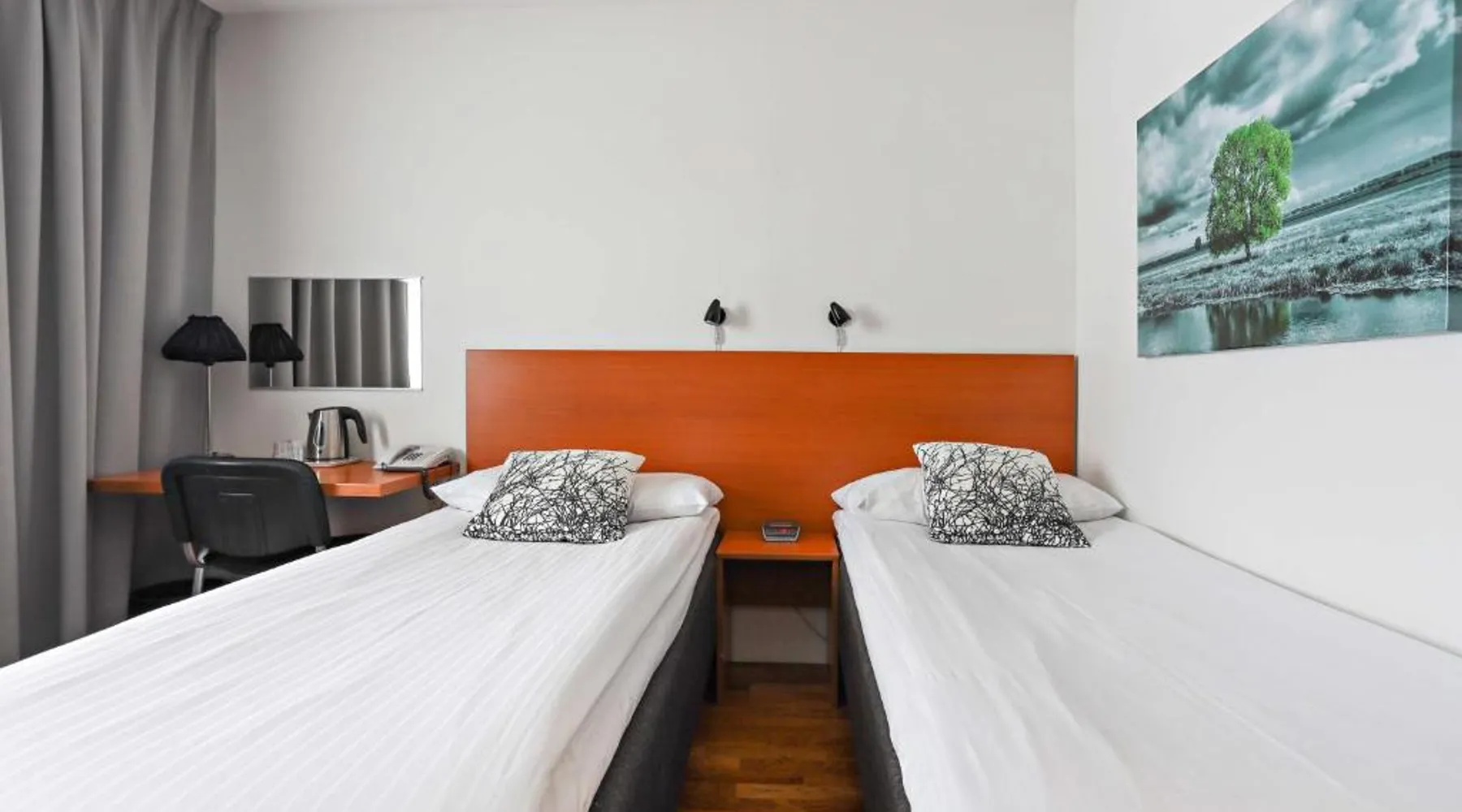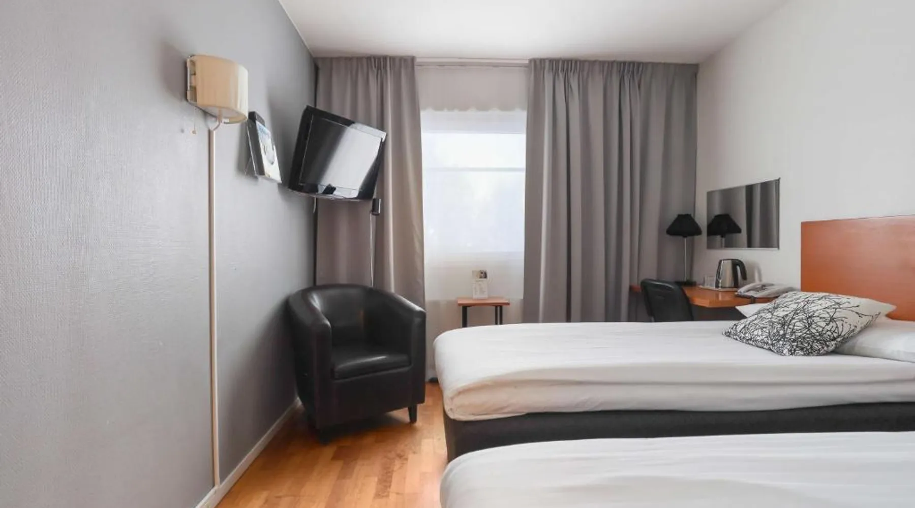 Overlooking the Ume River, this eco-friendly hotel is within 5 minutes’ drive of Umeå city center and airport. It offers free WiFi and sauna access and free parking. A jacuzzi is pre-bookable for an extra cost. Wooden floors, a large desk and cable TV with free movie channels are standard room features at Best Western Hotel Botnia. Some rooms offer river views. Botnia’s à la carte menu includes reindeer, elk and other regional specialties. This menu has to be pre-booked and is available for groups of at least 10 people. Free tea/coffee and fruit are available at all times. Other facilities include a garden and a terrace. A free internet computer is found in the lobby. Guests can borrow bikes for free on site and explore the area. This double room has a seating area and bathrobe. Pets are not allowed in this room.