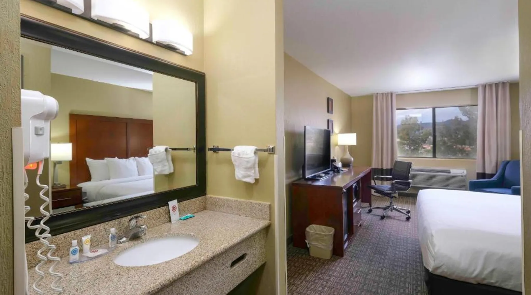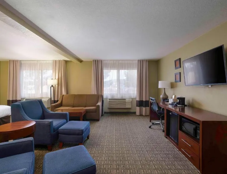 Comfortable Accommodations: Comfort Inn Near Gila National Forest in Silver City offers family rooms with air-conditioning, private bathrooms, and mountain or city views. Each room includes a work desk, sofa bed, and free WiFi. Relaxing Facilities: Guests can enjoy a swimming pool with a view, indoor pool, and hot tub. Additional amenities include a spa bath, hairdryer, coffee machine, and free toiletries. Dining Options: A continental buffet breakfast is served daily, featuring warm dishes, fresh pastries, fruits, and juice. Express check-in and check-out services enhance the stay. Convenient Location: Located 15 mi from Grant County Airport, the inn is near attractions such as Karen Carr Studio (1.5 mi) and Azurite Gallery (1.6 mi). Free on-site parking is available. Featuring free Wi-Fi, this air-conditioned room also offers a flat-screen cable TV and an private bathroom. A microwave, a small refrigerator and coffee-making facilities are also included.