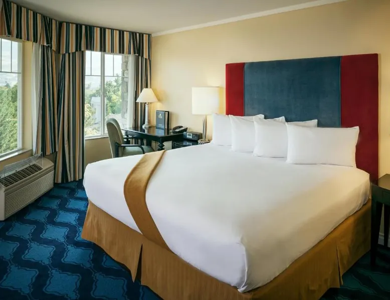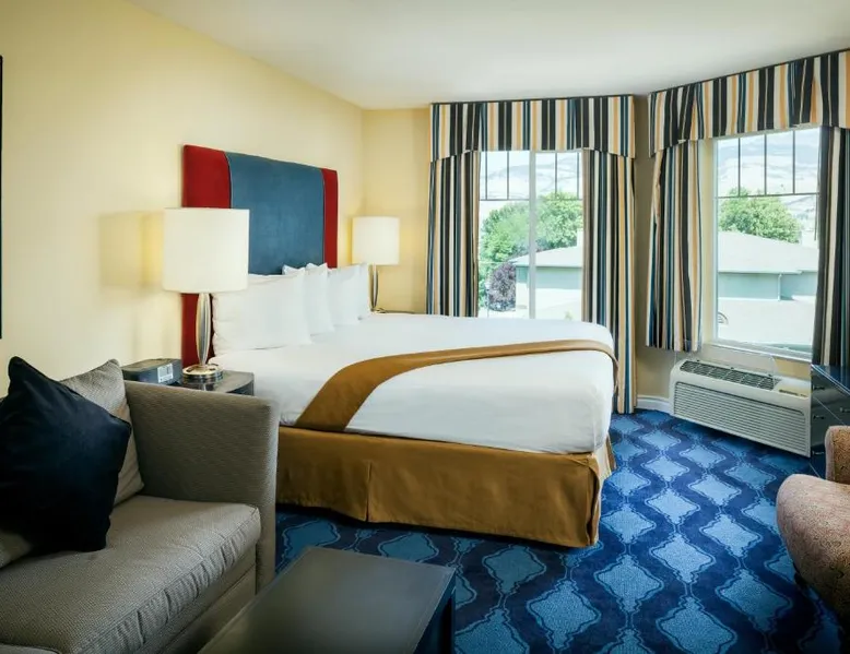 Plaza Inn & Suites at Ashland Creek is set in downtown Ashland, 1969 feet from the Oregon Shakespeare Festival. Free WiFi is available throughout the property and free private parking is available on site. The rooms have a flat-screen TV with cable channels. Every room includes a private bathroom. For your comfort, you will find free toiletries and a hair dryer. There is a 24-hour front desk at the property. Additional amenities include a Tesla charging station, a 24-hour fitness center, and hot tub on the sun terrace. A complimentary expanded hot breakfast is served daily at the property, with a variety of items that may include omelets, breakfast meats, pastries, waffles, cereals, oatmeal, and breads. Coffee, tea, and juices are also included. Guests can also enjoy complimentary evening snacks, including peanut butter and jelly sandwiches and cookies. Various shopping and dining options are within walking distance of Plaza Inn & Suites. Rogue Valley Airport is 14 mi away from Plaza Inn & Suites at Ashland Creek. This deluxe air-conditioned room features a microwave, mini-refrigerator, and coffee maker.