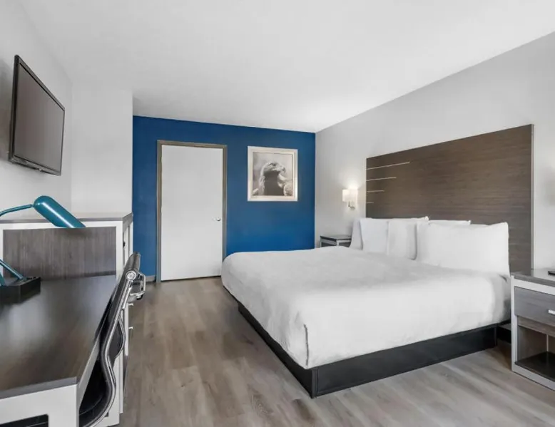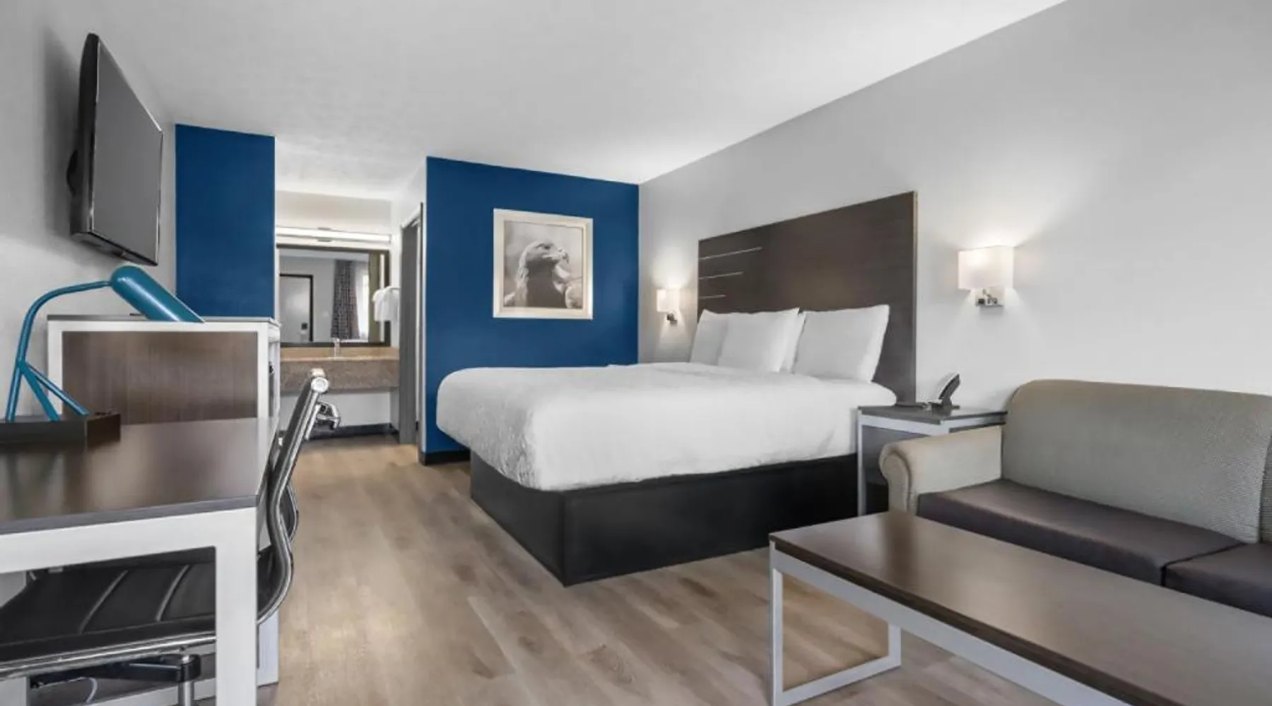Comfortable Accommodations: Auburn Lodge near University in Auburn offers air-conditioned rooms with private bathrooms, baths, hairdryers, coffee machines, refrigerators, work desks, microwaves, and TVs. Parquet floors enhance the welcoming atmosphere. Essential Facilities: Guests enjoy free WiFi, a lounge, 24-hour front desk, housekeeping service, outdoor seating area, picnic area, and bicycle parking. Free on-site parking is available. Breakfast and Dining: A continental breakfast with juice and pancakes is served daily. Additional amenities include a coffee machine and microwave. Prime Location: Located 3.1 mi from Auburn University and Jordan Hare Stadium, the hotel is 40 mi from Columbus Airport. Nearby attractions include the Tuskegee Airmen Museum (14 mi) and Jule Collins Smith Museum of Fine Art (2.5 mi). Guests appreciate the room cleanliness, attentive staff, and convenient location. This air-conditioned double room includes a flat-screen TV with cable channels and a private bathroom. The unit offers 1 bed.
