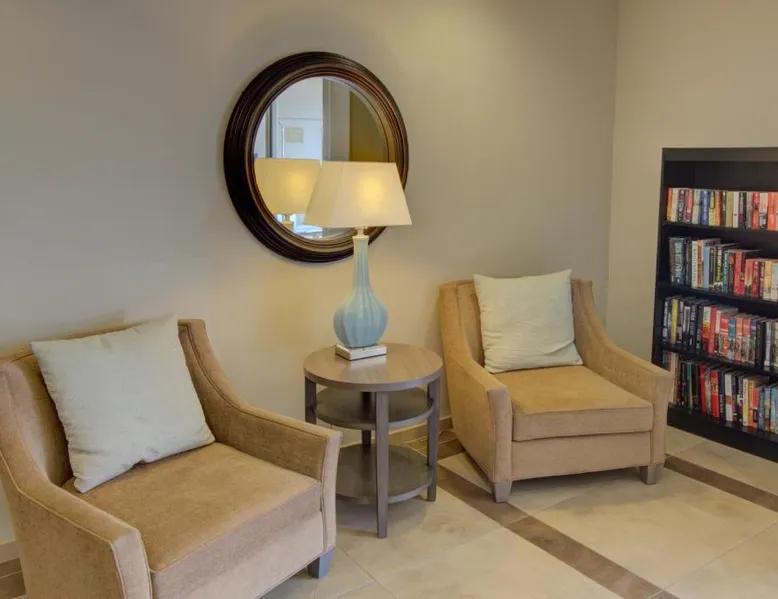 Comfortable Accommodations: Candlewood Suites Sioux City - Southern Hills by IHG in Sioux City offers air-conditioned rooms with private bathrooms, kitchenettes, and free WiFi. Each room includes a work desk, TV, and free toiletries. Facilities and Services: Guests can enjoy a fitness center, lounge, and outdoor seating area. Additional amenities include a minimarket, business area, laundry service, and free on-site parking. Convenient Location: Located 3.7 mi from Sioux Gateway Airport, the hotel is near attractions such as Whispering Creek Golf Club and Sioux City Art Center. An ice-skating rink is also in the vicinity. Highly Rated by Guests: Guests appreciate the friendly staff, comfortable rooms, and excellent facilities, making it a preferred choice for stays in Sioux City. A kitchenette with a dishwasher and stove is included in this suite, along with a 39-inch flat-screen cable TV and hairdryer. An accessible bathroom is also provided.