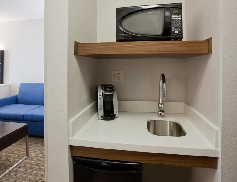 This hotel in Dickinson, North Dakota is located just off of Interstate 94 and is a 20-minute drive from Dickinson Municipal Airport. The completely nonsmoking hotel features a 110-foot water slide. The Dickinson Holiday Inn Express features an indoor pool and jacuzzi. Guests can also use the on-site fitness center or laundry facilities. A hot breakfast is provided every morning. Guest rooms at the Holiday Inn Express Dickinson feature a coffee maker and cable TV. Free Wi-Fi is also included. The Dickinson Dinosaur Museum and Heart River Golf Course are a 15-minute drive from the Holiday Inn Express Dickinson. Historic Medora and Theodore Roosevelt National Park are within an hour drive of the hotel. Offering free toiletries, this suite includes a private bathroom with a bath, a shower and a hairdryer. The suite's kitchenette, which has a refrigerator and a microwave, is available for cooking and storing food. This suite is air-conditioned and features a flat-screen TV with cable channels, a tea and coffee maker, a wardrobe and a carpeted floor. The unit offers 3 beds.