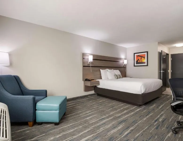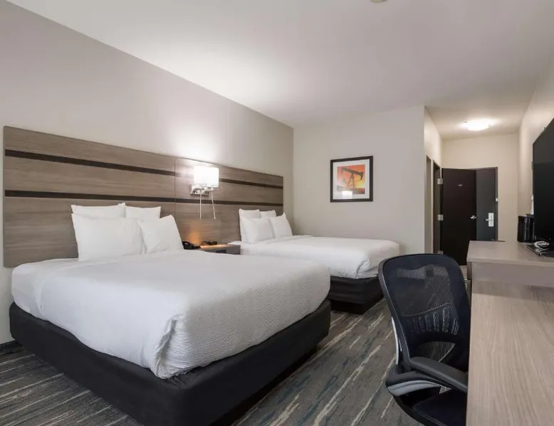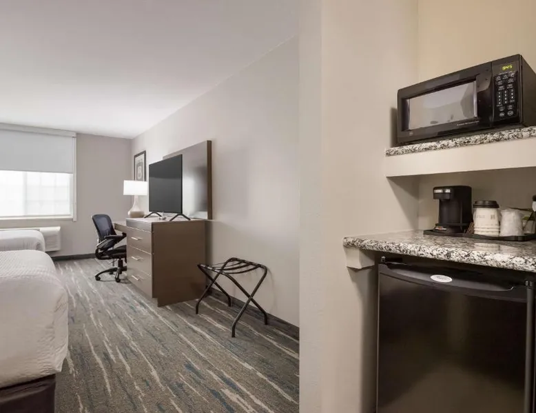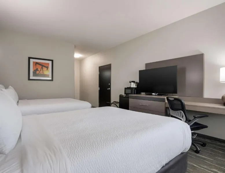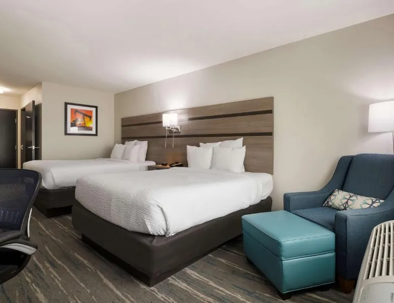 Comfortable Accommodations: Best Western NSU Inn in Tahlequah offers comfortable rooms with air-conditioning, free WiFi, and private check-in and check-out services. Each room includes a bath, tea and coffee maker, hairdryer, refrigerator, work desk, free toiletries, microwave, shower, carpeted floors, and TV. Convenient Facilities: Guests enjoy free on-site parking, a elevator, 24-hour front desk, housekeeping service, electric vehicle charging station, family rooms, and express check-in and check-out services. The hotel provides an American buffet breakfast each morning. Prime Location: Located 65 mi from Northwest Arkansas Regional Airport, the hotel is praised for its room comfort, cleanliness, and bed comfort. The quadruple room provides air conditioning, a tea and coffee maker, tumble dryer, a carpeted floor, as well as a flat-screen TV. The unit offers 2 beds.