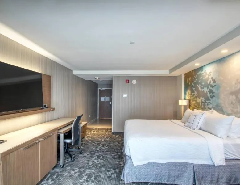 Comfortable Accommodations: Courtyard by Marriott Fargo in Fargo offers air-conditioned rooms with private bathrooms, free WiFi, and modern amenities. Each room includes a work desk, sofa bed, and flat-screen TV. Exceptional Facilities: Guests can enjoy a fitness center, indoor swimming pool, terrace, and outdoor fireplace. Additional facilities include a lounge, business area, and minimarket. Dining Options: The hotel serves American cuisine at its restaurant and bar, offering lunch and cocktails. An American breakfast is available each morning. Convenient Location: Located 8.1 mi from Hector International Airport, the hotel is near attractions such as Red River Zoo (1.2 mi) and Fargo Civic Center (7.5 mi). Free on-site private parking is provided. The spacious double room offers air conditioning, a tea and coffee maker, as well as a private bathroom boasting a walk-in shower and a hairdryer. The double room has carpeted floors, a seating area with a flat-screen TV with streaming services, a wardrobe, a sofa, as well as heating. The unit has 1 bed.