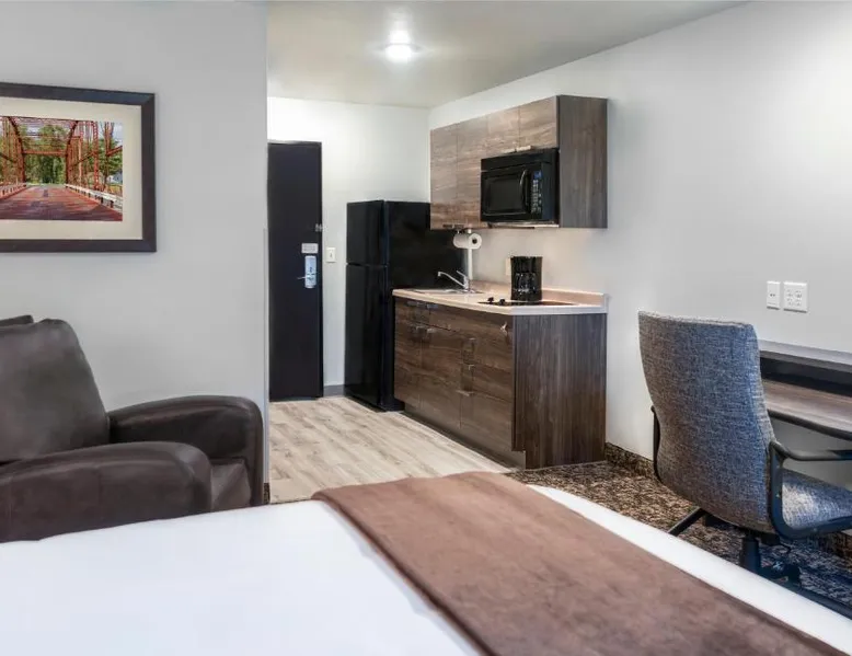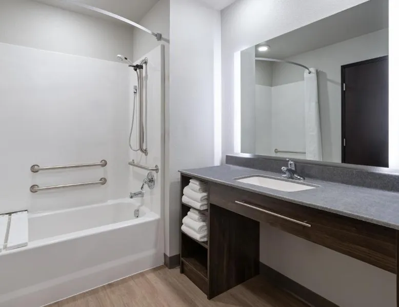 Comfortable Accommodations: My Place Hotel-Watertown in Watertown offers rooms with air-conditioning, kitchenettes, private bathrooms, and free WiFi. Guests appreciate the room cleanliness and comfort. Convenient Facilities: The hotel features a lounge, elevator, 24-hour front desk, minimarket, business area, and express check-in and check-out services. Free on-site private parking is available. Modern Amenities: Rooms include tea and coffee makers, hairdryers, refrigerators, free toiletries, microwaves, showers, TVs, dining areas, wardrobes, stovetops, and toasters. Prime Location: Located 4.3 mi from Watertown Regional Airport, the hotel is highly rated for its excellent service and comfortable accommodations. Featuring free toiletries, this quadruple room includes a private bathroom with a bath, a shower and a hairdryer. The well-equipped kitchen has a stovetop, a refrigerator, a microwave and a toaster. This air-conditioned quadruple room comes with a dining area, a flat-screen TV with cable channels a tea and coffee maker and a wardrobe. The unit has 2 beds.