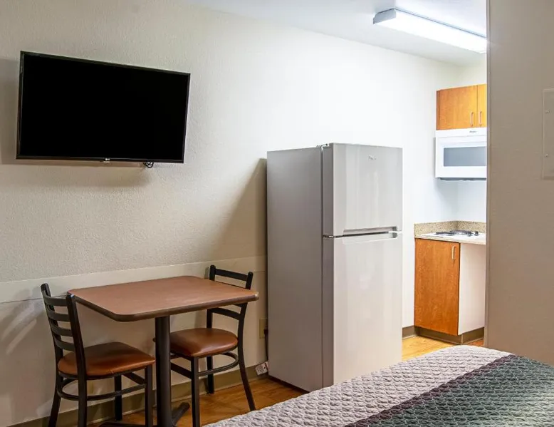 HomeTowne Studios by Red Roof Salem, OR is located in Salem and especially designed for longer stays, with all rooms featuring a kitchenette. The hotel offers free WiFi . Every kitchen at HomeTowne Studios by Red Roof Salem, OR is equipped with a stovetop, full-size refrigerator and a microwave. The hotel also provides guests with laundry facilities. The property offers free onsite parking and free local phone calls. Attractions within close proximity to the hotel include the Oregontate Fair and Exposition Center, the Oregon's State Capitol and the Salem Oregon Conference Center. This studio features a kitchenette and flat-screen TV. Guests also have access to free WiFi.