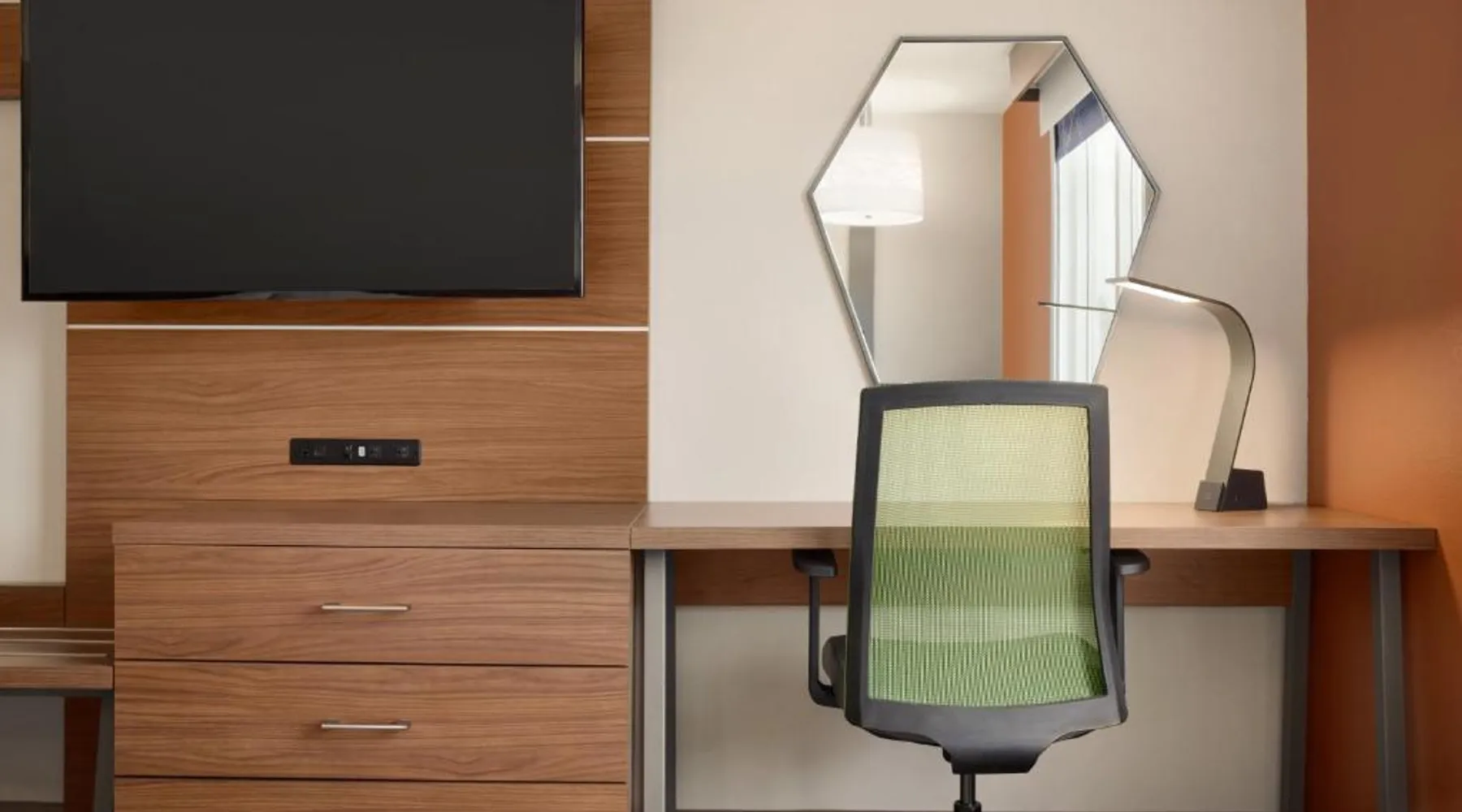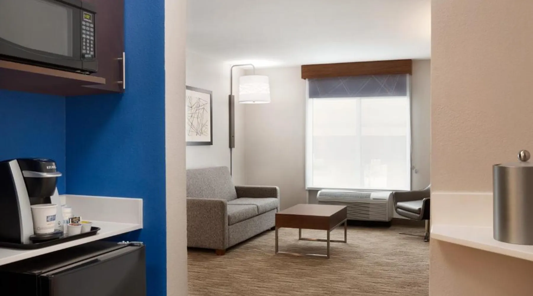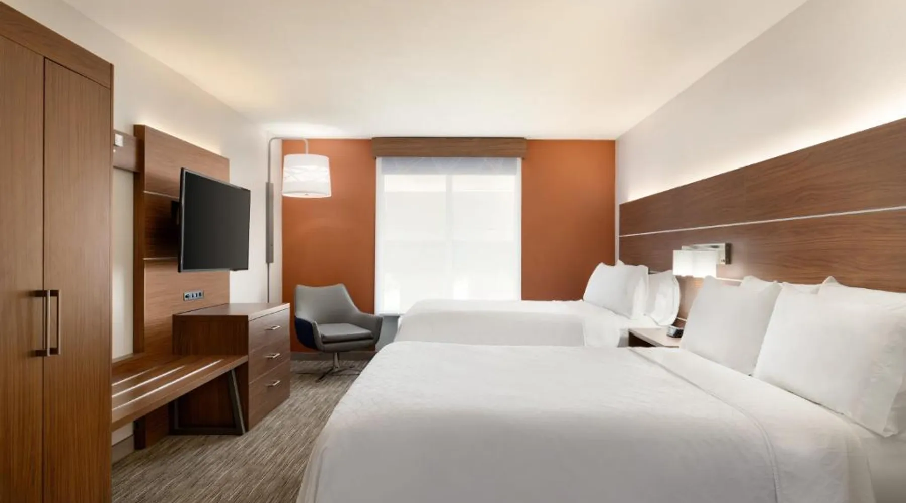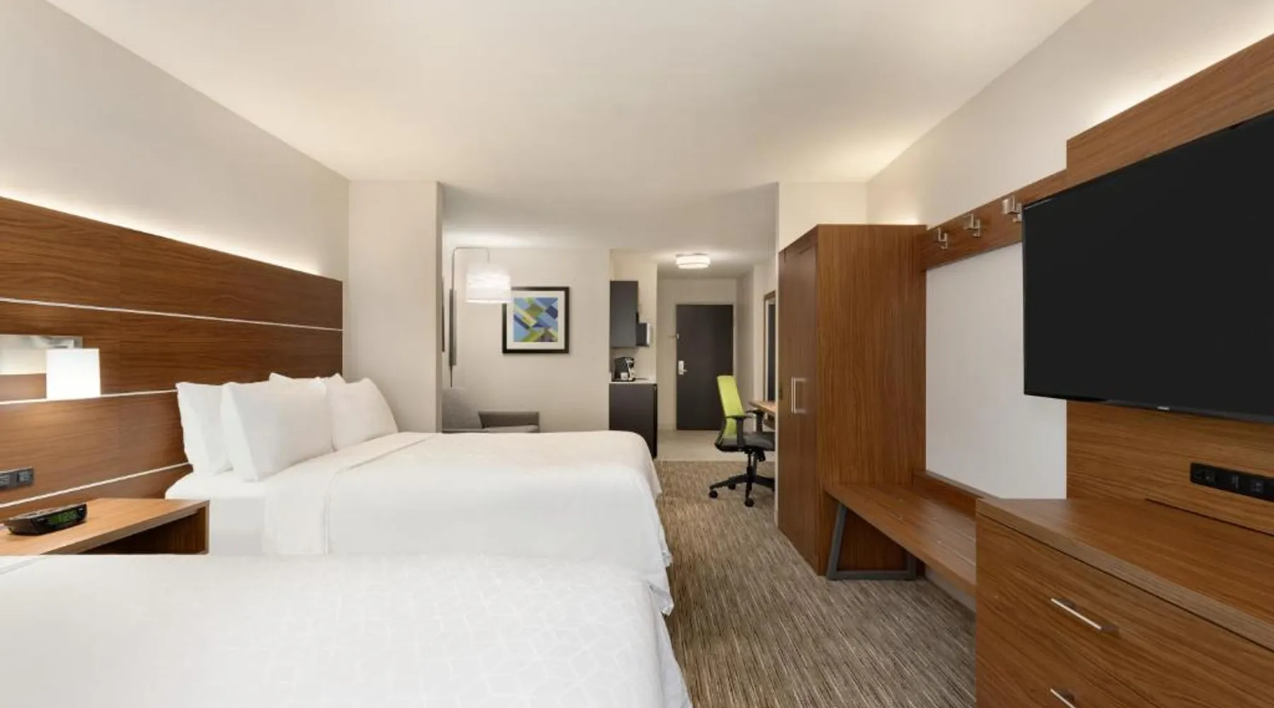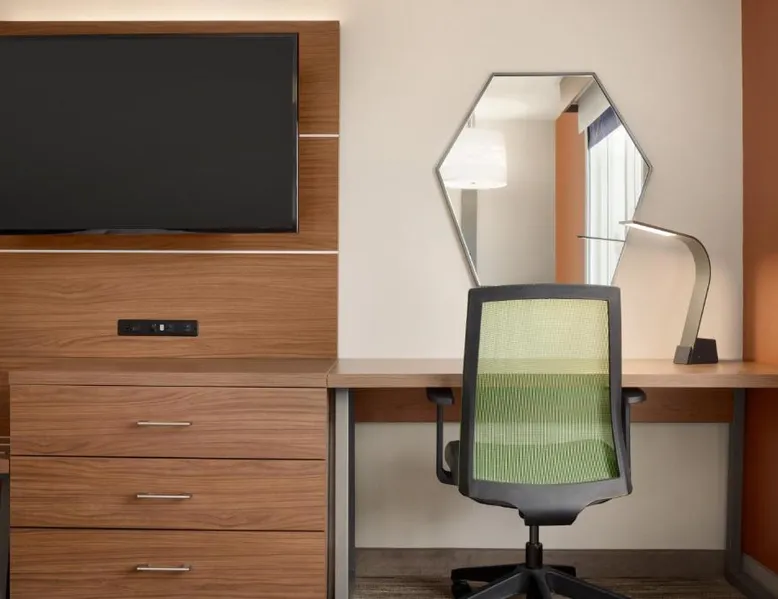 Comfortable Accommodations: Holiday Inn Express Hotel & Suites Auburn - University Area by IHG in Auburn offers clean rooms with air-conditioning, private bathrooms, and modern amenities. Each room includes a work desk, mini-bar, and free WiFi. Leisure Facilities: Guests can enjoy a fitness center, seasonal outdoor swimming pool, and outdoor seating area. Additional facilities include a lounge, 24-hour front desk, minimarket, and free on-site parking. Dining Options: A complimentary American buffet breakfast is served daily, featuring warm dishes, fresh pastries, pancakes, cheese, fruits, and juice. Convenient Location: Located 41 mi from Columbus Airport, the hotel is near attractions such as Auburn University (2.5 mi), Jordan Hare Stadium (2.5 mi), and Toomers Corner (3.1 mi). Highly rated for room cleanliness, staff support, and convenient location. This accessible room features a roll-in shower, cable TV, and coffee-making facilities.