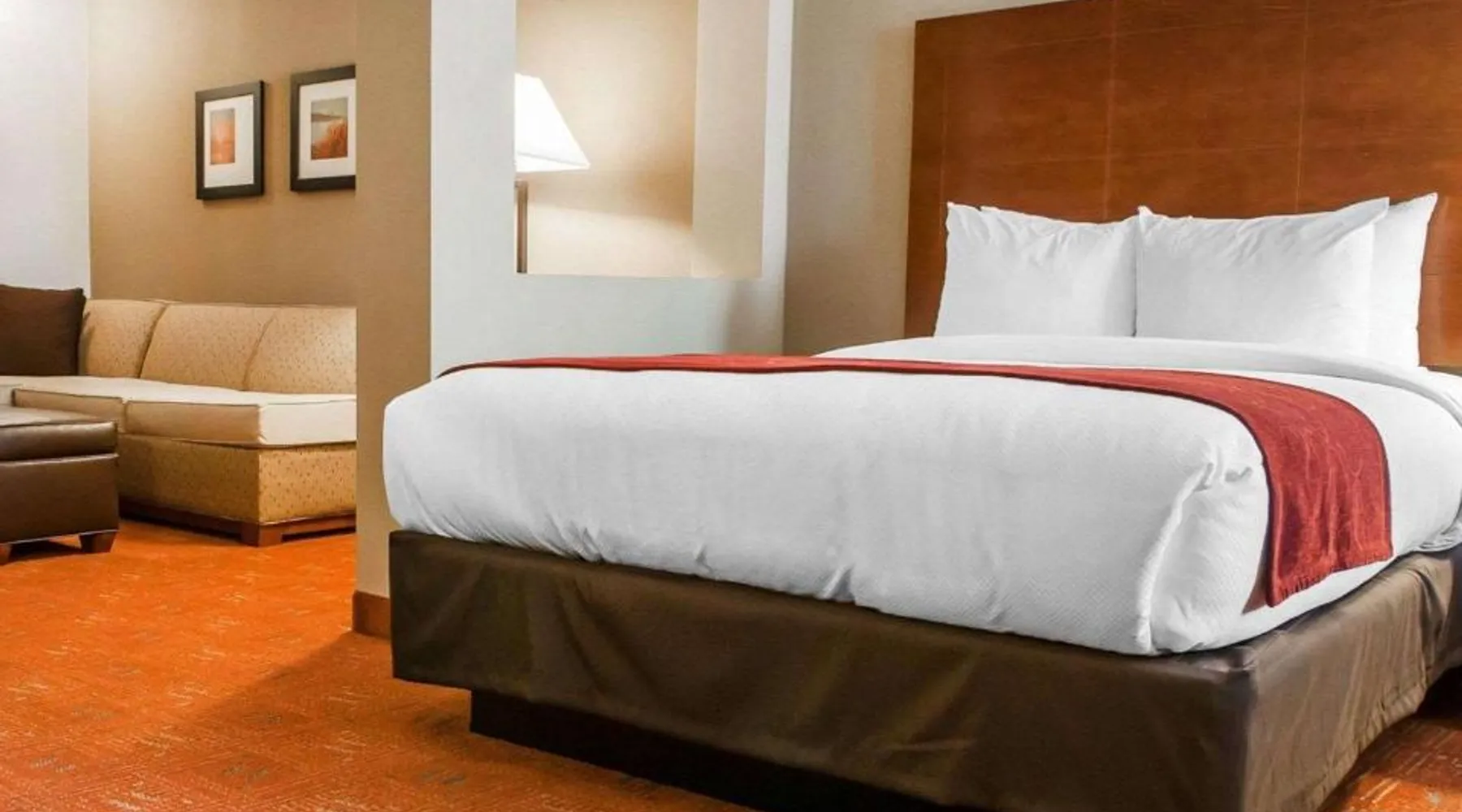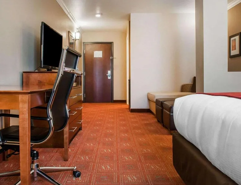 Comfortable Accommodations: Comfort Suites Farmington in Farmington offers comfortable rooms with air-conditioning, private bathrooms, and modern amenities including refrigerators, microwaves, and free WiFi. Exceptional Facilities: Guests can enjoy an indoor swimming pool, relax in the seating area, and stay active in the fitness center. Free on-site parking is available for convenience. Delicious Breakfast: A continental and American breakfast is served daily, highly appreciated by guests for its quality and variety. Outstanding Service: The property staff provide excellent service support, ensuring a pleasant and comfortable stay. This air-conditioned double room is consisted of of a TV with cable channels and a private bathroom. The unit has 2 beds.