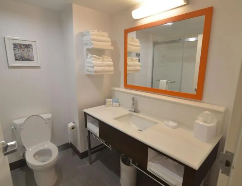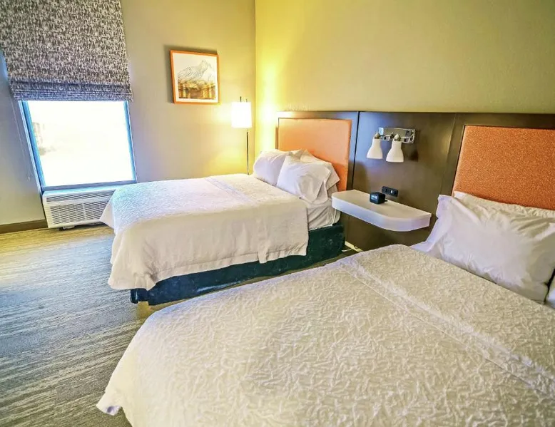 Comfortable Accommodations: Hampton Inn Fort Payne in Fort Payne offers family rooms with air-conditioning, free WiFi, and amenities such as a tea and coffee maker, hairdryer, refrigerator, work desk, and TV. Facilities and Services: Guests can enjoy a fitness center, lounge, fitness room, elevator, 24-hour front desk, electric vehicle charging station, business area, outdoor seating area, microwave, shower, TV, and free toiletries. Location and Attractions: Located 62 mi from Chattanooga Metropolitan Airport, the hotel is praised for its children's pool and indoor swimming pool. Nearby attractions include DeSoto State Park and Fort Payne. The quadruple room provides air conditioning, a tea and coffee maker, a safe deposit box, heating and a flat-screen TV. The unit offers 2 beds.