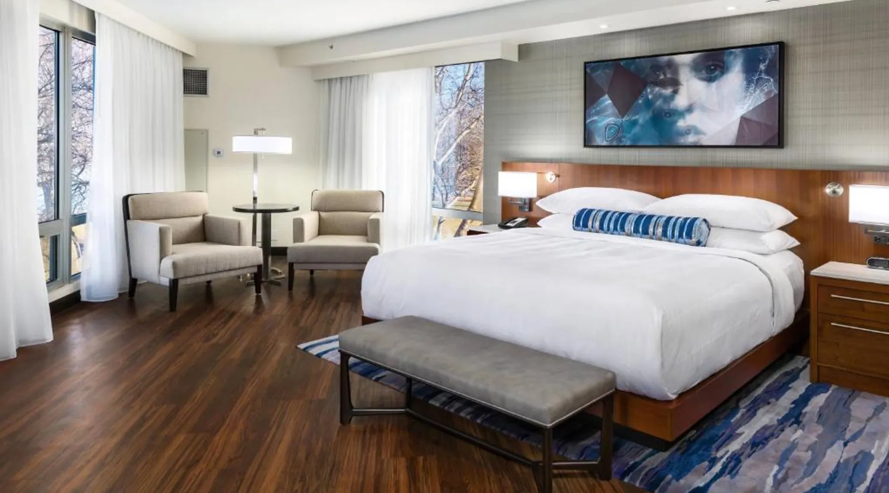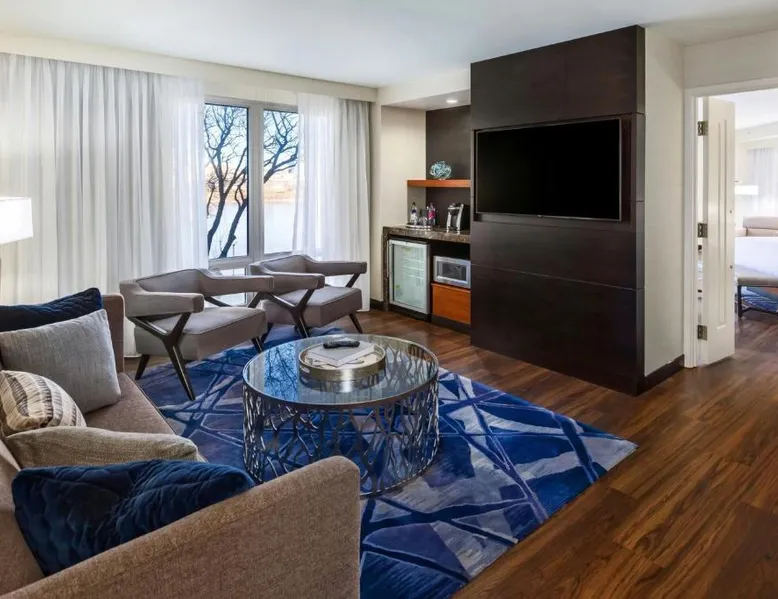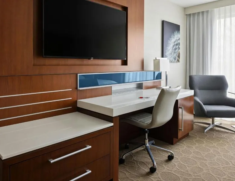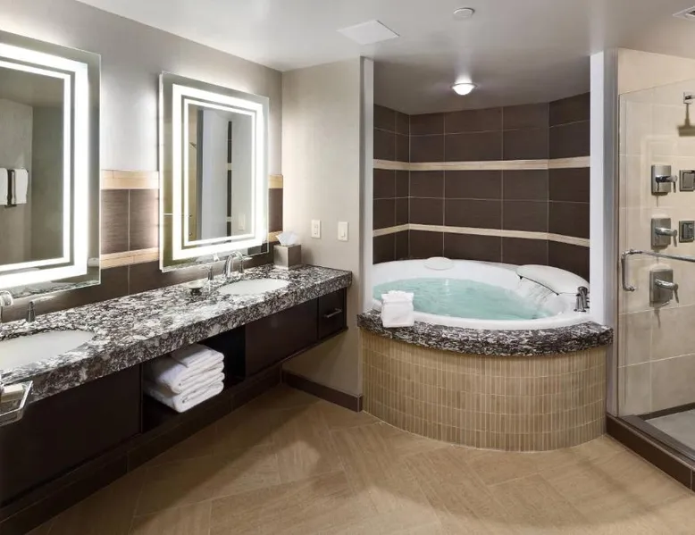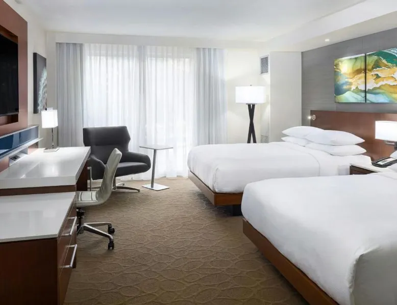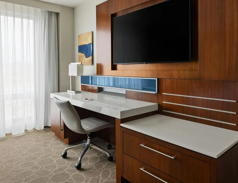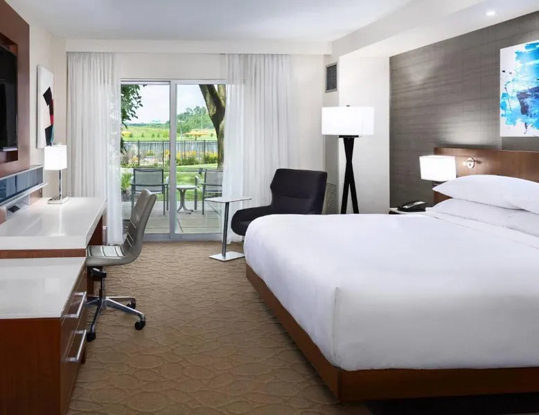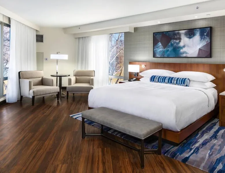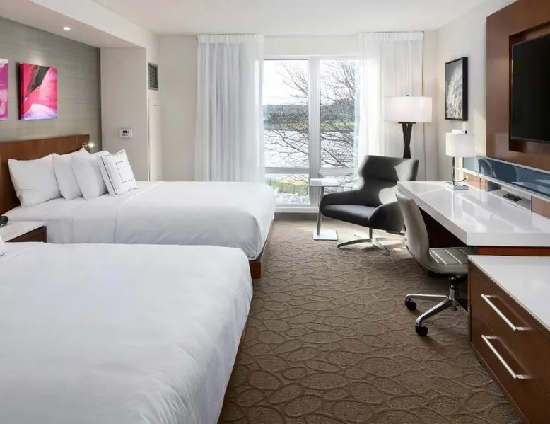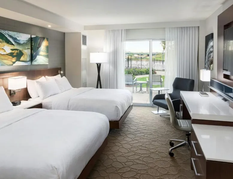 Comfortable Accommodations: South Sioux City Marriott Riverfront in South Sioux City offers family rooms with air-conditioning, kitchenettes, and private bathrooms. Each room includes a dining area, refrigerator, microwave, and TV. Dining and Leisure: Guests can enjoy American and Steakhouse cuisines at the on-site restaurant and bar. The hotel features a fitness center, terrace, seasonal outdoor swimming pool, and free airport shuttle service. Convenient Location: Located 7.5 mi from Sioux Gateway Airport, the hotel is near Sioux City Convention Center (1.9 mi), Sioux City Art Center (1.2 mi), and Tyson Events Center (1.2 mi). Free on-site parking is available. Guest Satisfaction: Guests appreciate the convenient location, room cleanliness, and comfort. This air-conditioned double room includes a flat-screen TV with streaming services and a private bathroom. The unit offers 1 bed.