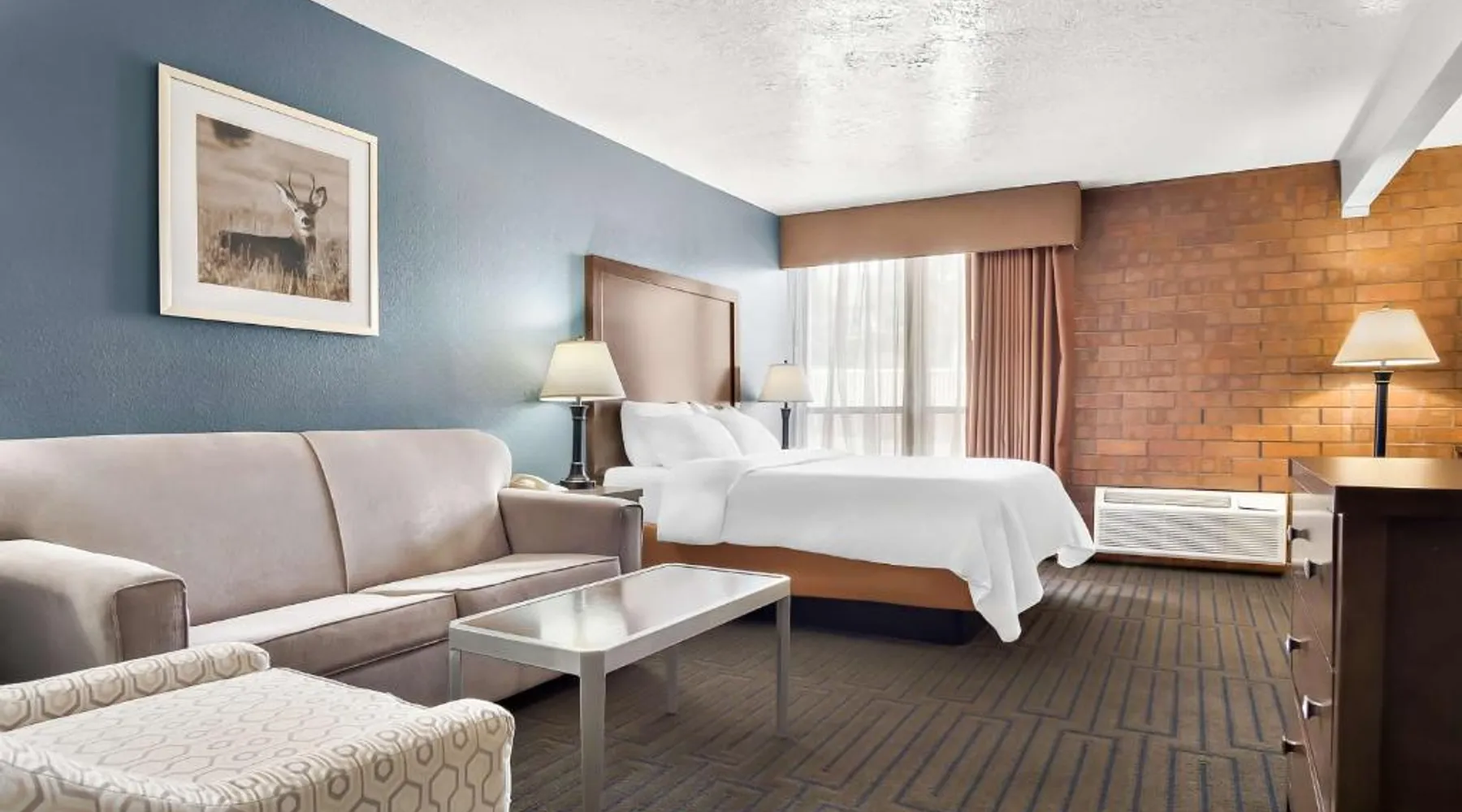 Located 8 miles from Pocatello Regional Airport, Best Western Pocatello Inn offers an indoor heated pool and a bar. Guest rooms offer free WiFi. Rooms provide desks and a cable TV. They also have coffee machines and hairdryers. In-room safes along with microwaves and refrigerators are available upon request. During their stay, guests can enjoy a breakfast buffet. The hotel offers a business center and same day dry cleaning for added convenience. Best Western Pocatello Inn is one mile from Highland Golf Course. It is 3 miles from Idaho State University and 5 miles from Pocatello Zoo. Offering free toiletries, this suite includes a private bathroom with a bath or a shower and a hairdryer. The air-conditioned suite offers a flat-screen TV with cable channels, a tea and coffee maker, a wardrobe, a sofa as well as city views. The unit has 2 beds.