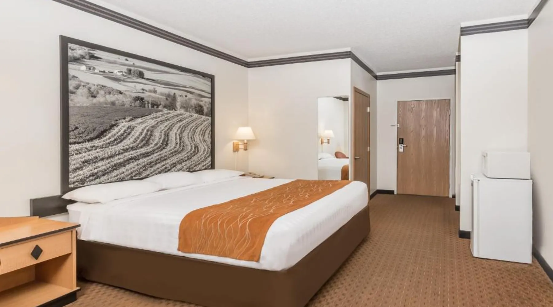 This Atlantic, Iowa motel is 4 minutes’ drive from the Coca Cola Bottling Plant. Free WiFi access is available. A flat-screen cable TV is provided in every room at America's Best Value Inn & Suites; Atlantic Inn & Suites. Complete with a microwave, the dining area also has a refrigerator and a coffee machine. Featuring a bath or shower, private bathrooms also come with a hairdryer. Extras include a desk. A fitness center is offered. Other facilities offered include meeting facilities, a laundry and a vending machine. The property offers free parking. Lake Anita State Park can be reached in 22 minutes’ drive. Eppley Airfield Airport is 48 mi away. The air-conditioned apartment has 1 bedroom and 1 bathroom with a bath and a shower. The apartment features a flat-screen TV with streaming services, a coffee machine, a seating area and heating. The unit has 2 beds.