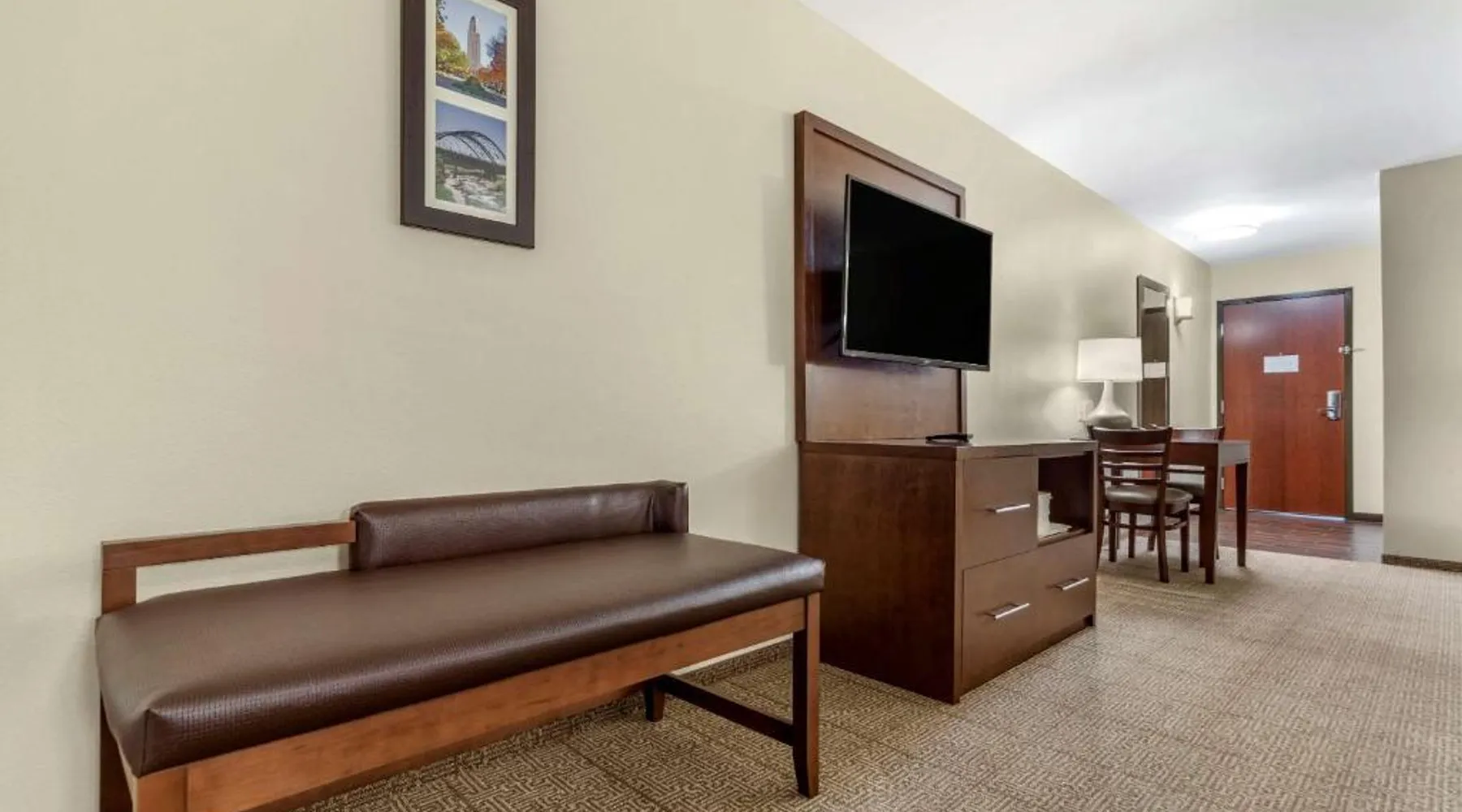 Comfortable Accommodations: Comfort Suites Grand Island South in Grand Island offers family rooms with free WiFi, a fitness center, and an indoor swimming pool. Guests enjoy a hot tub, elevator, and 24-hour front desk. Convenient Facilities: The hotel provides free on-site parking, a business area, and housekeeping service. Additional amenities include a refrigerator, microwave, tea and coffee maker, hairdryer, seating area, shower, and TV. Delightful Breakfast: A complimentary breakfast is served daily, highly appreciated by guests. The property staff and service support receive high ratings. Prime Location: Located 5.6 mi from Central Nebraska Regional Airport, the hotel offers easy access to local attractions.