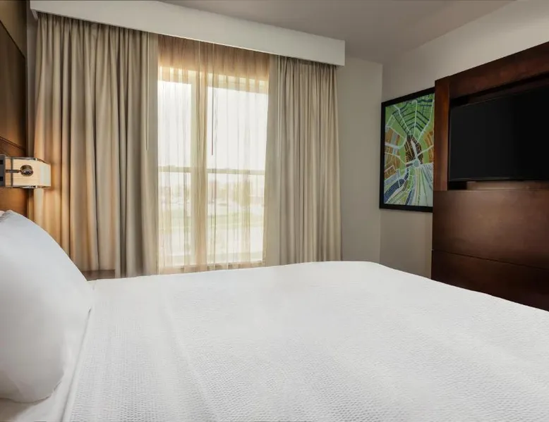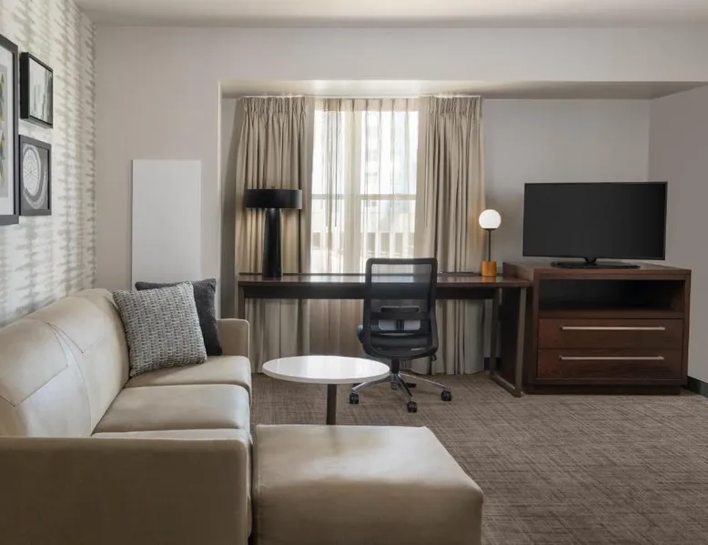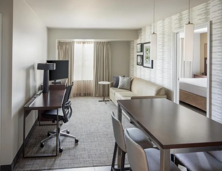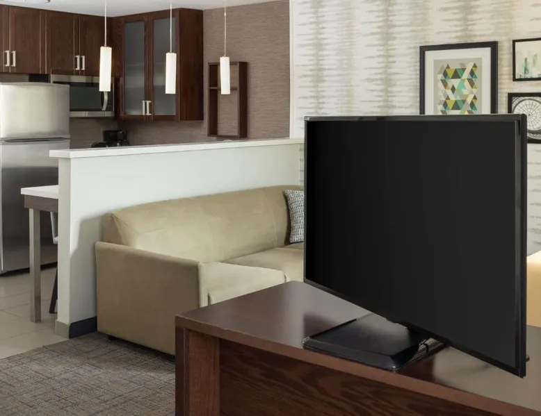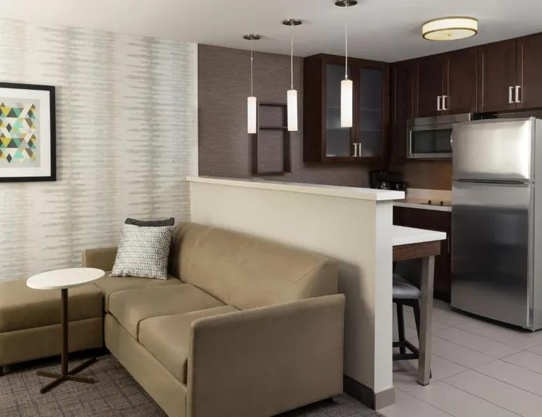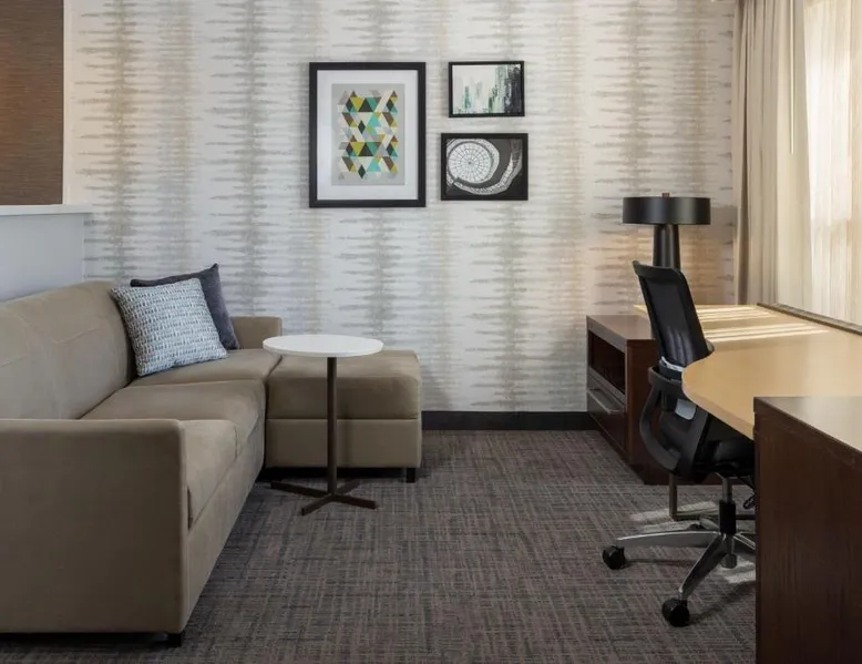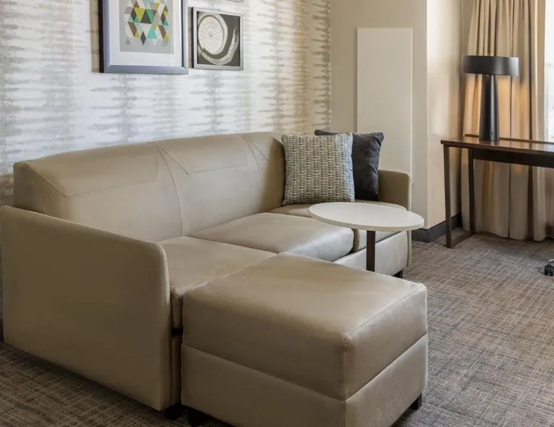Comfortable Accommodations: Residence Inn by Marriott Kansas City at The Legends in Kansas City offers family rooms with air-conditioning, private bathrooms, and fully equipped kitchens. Each room includes a sofa bed, work desk, and free WiFi. Exceptional Facilities: Guests can enjoy a fitness center, indoor swimming pool, tennis court, and free bicycles. Additional amenities include a lounge, outdoor fireplace, beauty services, and a business area. Convenient Location: Located 15 mi from Kansas City International Airport, the hotel is close to attractions such as Tomahawk Hills Golf Course (9.3 mi) and Union Station Kansas City (16 mi). Guests appreciate the convenient location and excellent service. Featuring a sofa bed, this room also includes a kitchenette with microwave and refrigerator.