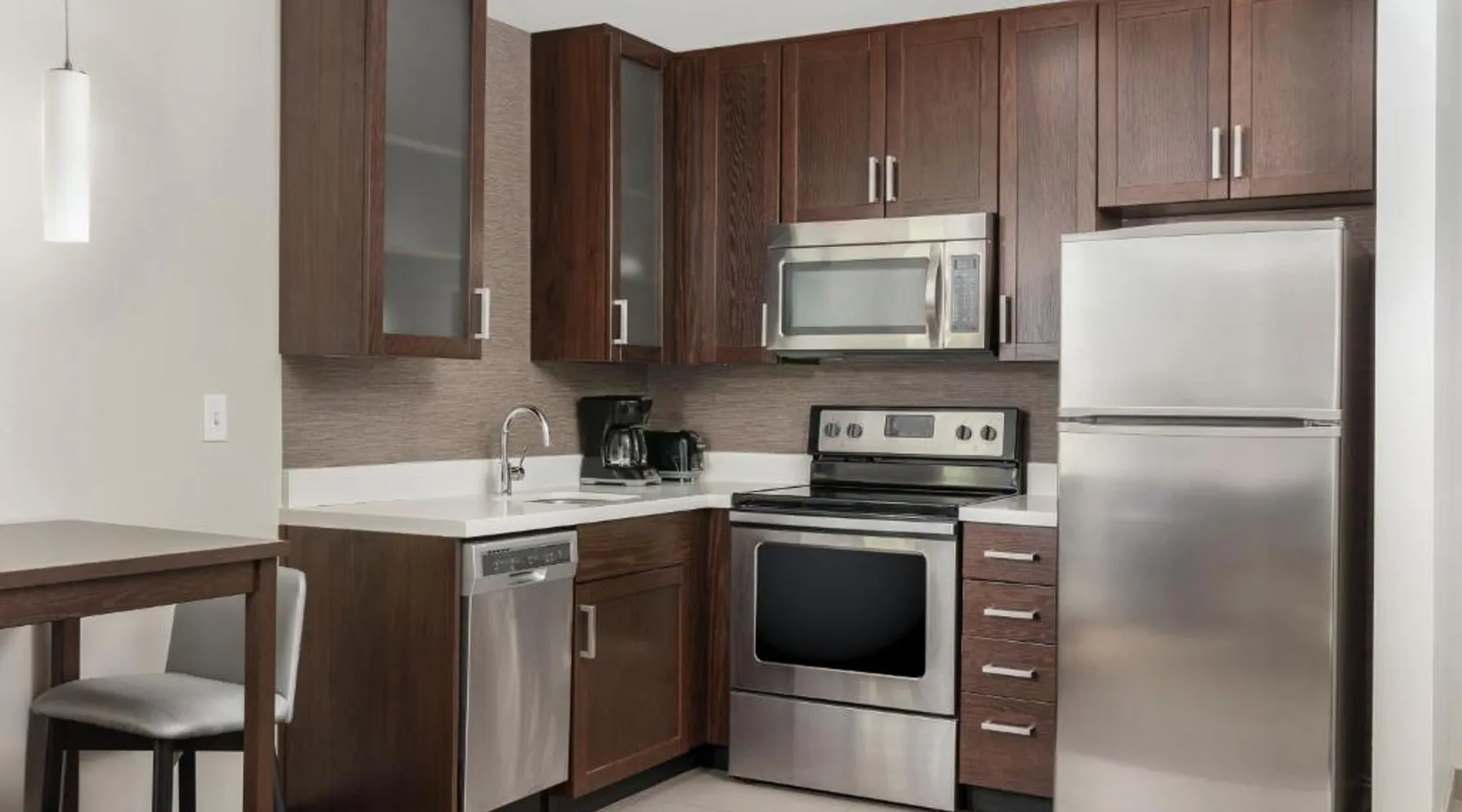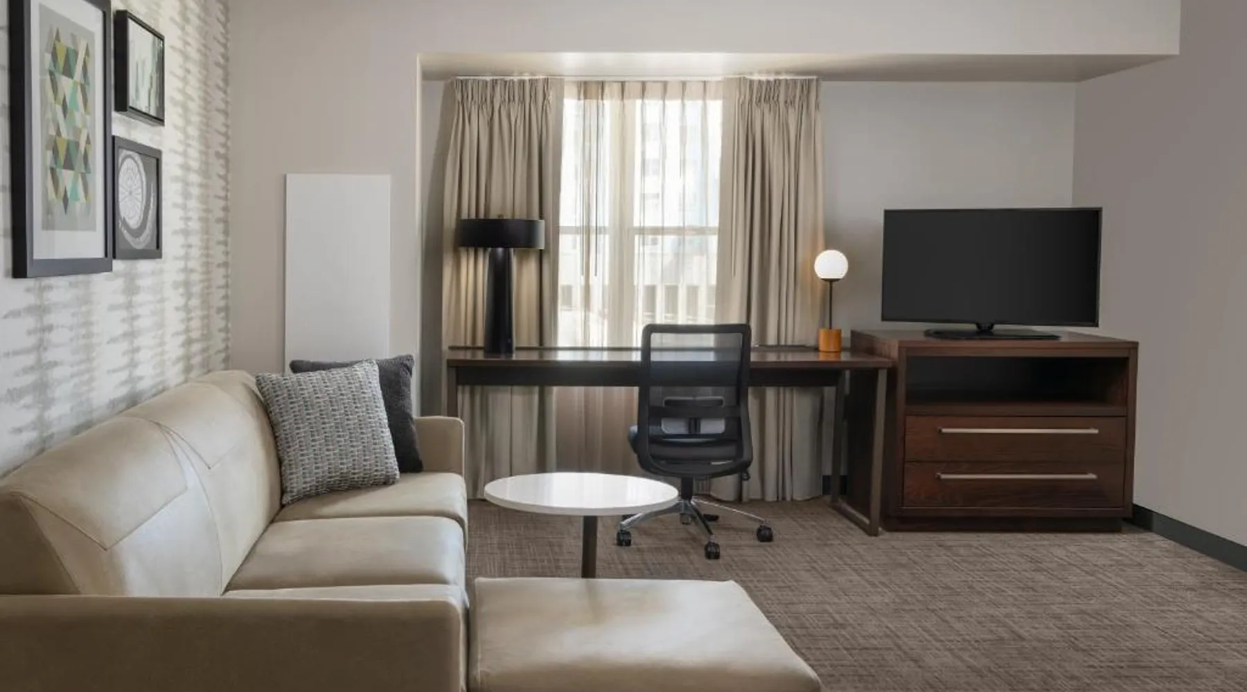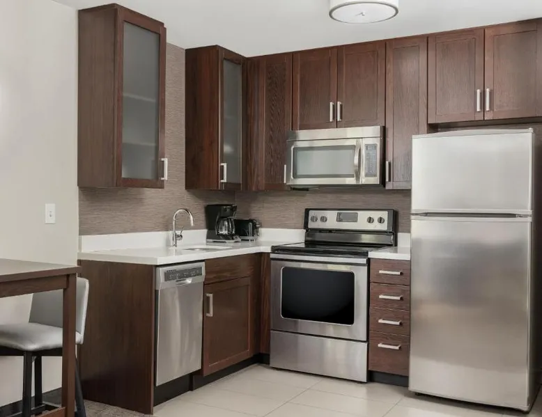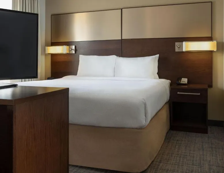 Comfortable Accommodations: Residence Inn by Marriott Kansas City at The Legends in Kansas City offers family rooms with air-conditioning, private bathrooms, and fully equipped kitchens. Each room includes a sofa bed, work desk, and free WiFi. Exceptional Facilities: Guests can enjoy a fitness center, indoor swimming pool, tennis court, and free bicycles. Additional amenities include a lounge, outdoor fireplace, beauty services, and a business area. Convenient Location: Located 15 mi from Kansas City International Airport, the hotel is close to attractions such as Tomahawk Hills Golf Course (9.3 mi) and Union Station Kansas City (16 mi). Guests appreciate the convenient location and excellent service. Featuring a sofa bed, this room also includes a kitchenette with microwave and refrigerator.