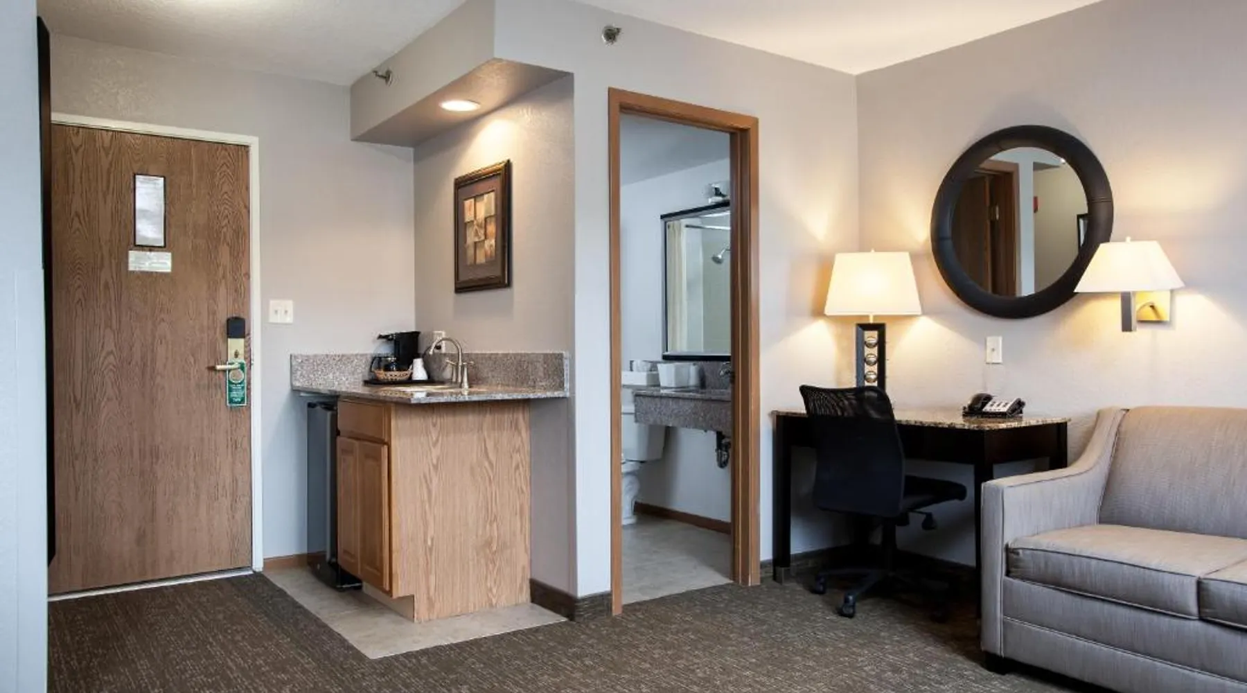 Comfortable Accommodations: Rooms feature air-conditioning, private bathrooms with walk-in showers, city or river views, and modern amenities such as free WiFi, tea and coffee makers, and work desks. Leisure Facilities: Guests can enjoy water sports facilities, an indoor swimming pool, and an outdoor seating area. Additional amenities include a lounge, fitness center, and barbecue facilities. Convenient Services: The hotel offers private check-in and check-out, a 24-hour front desk, daily housekeeping, and a business area. Paid on-site parking and an electric vehicle charging station are available. Prime Location: Located in Coralville, the property is 19 mi from The Eastern Iowa Airport. Nearby attractions include Kinnick Stadium and Antique Car Museum Of Iowa, both 1.2 mi away. Features a microwave, refrigerator and tea/coffee-making facilities.