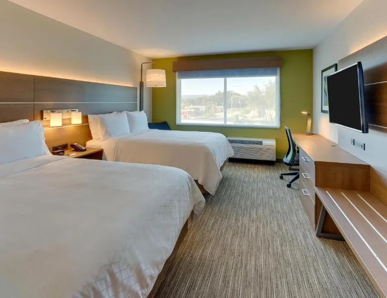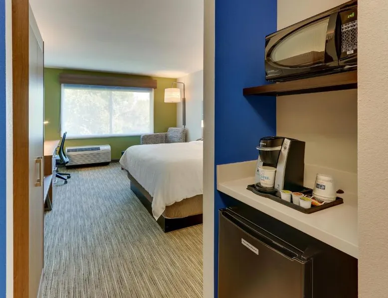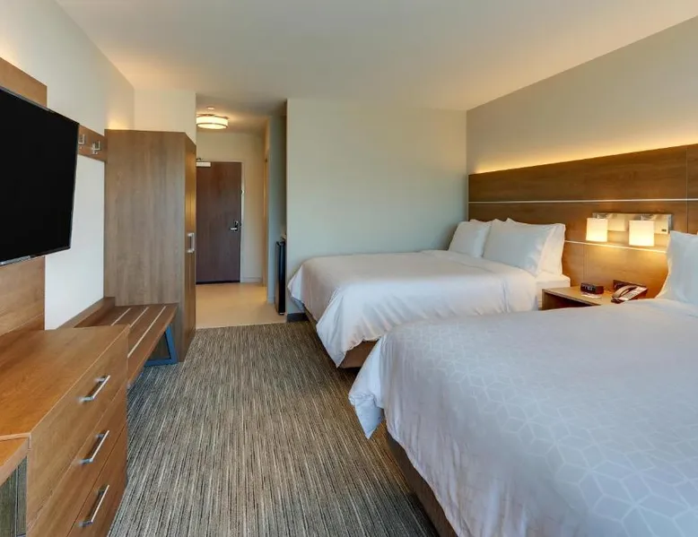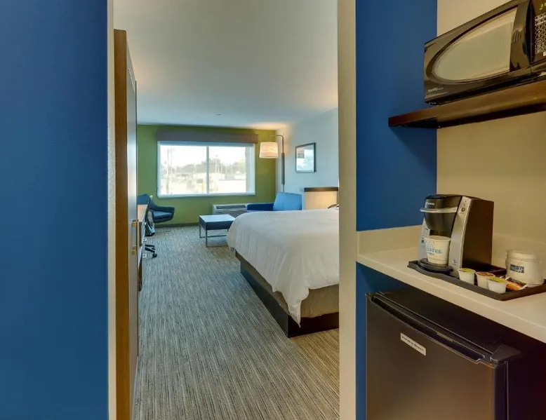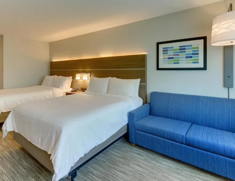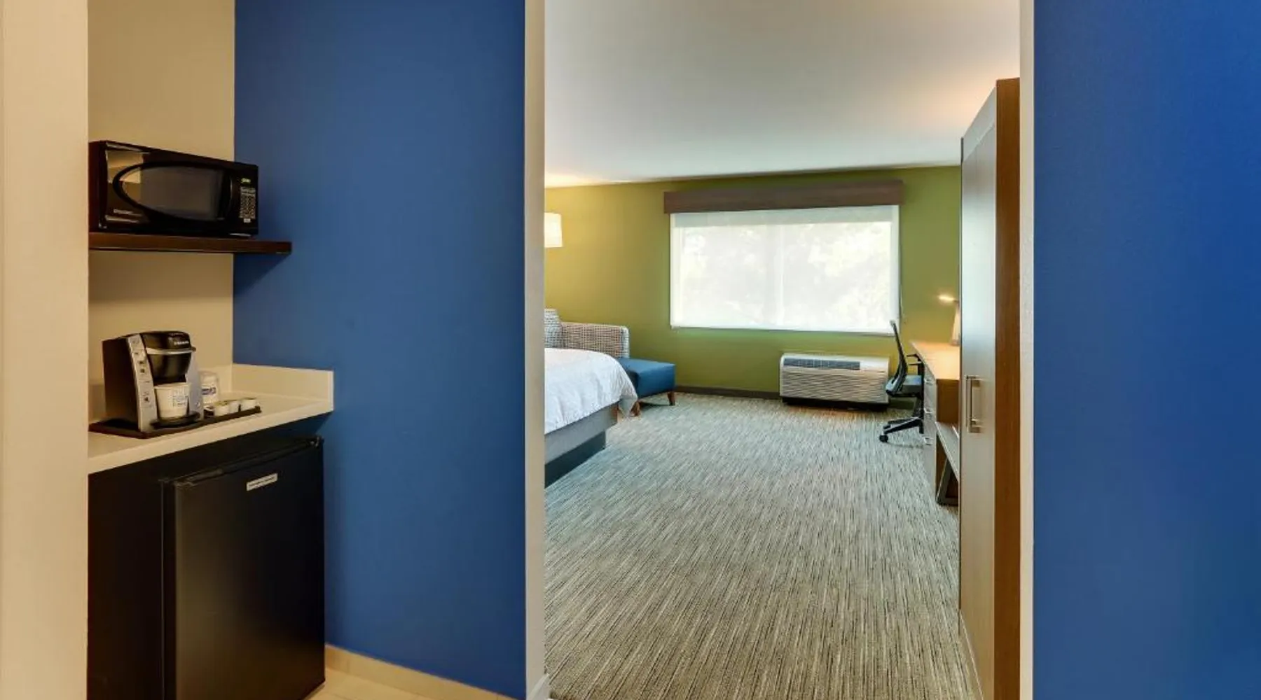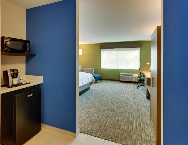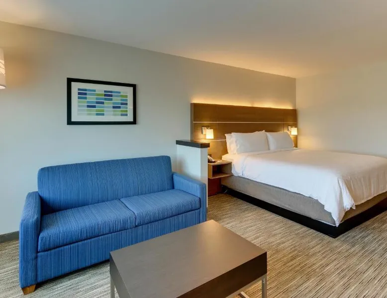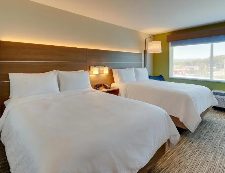Comfortable Accommodations: Holiday Inn Express & Suites - Roanoke – Civic Center in Roanoke offers family rooms with air-conditioning, private bathrooms, and free WiFi. Each room includes a work desk, TV, and complimentary toiletries. Leisure Facilities: Guests can enjoy a saltwater swimming pool, indoor pool, and fitness center. Additional amenities include an outdoor fireplace, outdoor seating area, and a child-friendly buffet. Dining Options: A continental and American buffet breakfast is served daily, featuring warm dishes, fresh pastries, pancakes, and more. Convenient Location: Located 3.7 mi from Roanoke Airport, the hotel is a 7-minute walk from Civic Center and 1.2 mi from Science Museum of Western Virginia. Nearby attractions include Mill Mountain Zoo (5 mi) and National D Day Memorial (27 mi). The spacious double room offers air conditioning, a tea and coffee maker, as well as a private bathroom featuring a walk-in shower and a bath. The double room features a wardrobe, a safe deposit box, a carpeted floor, heating and a flat-screen TV with streaming services. The unit offers 1 bed.