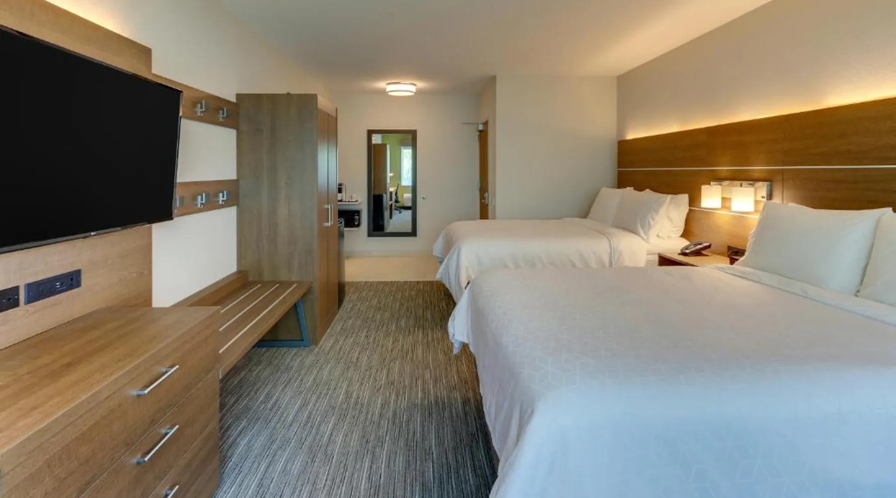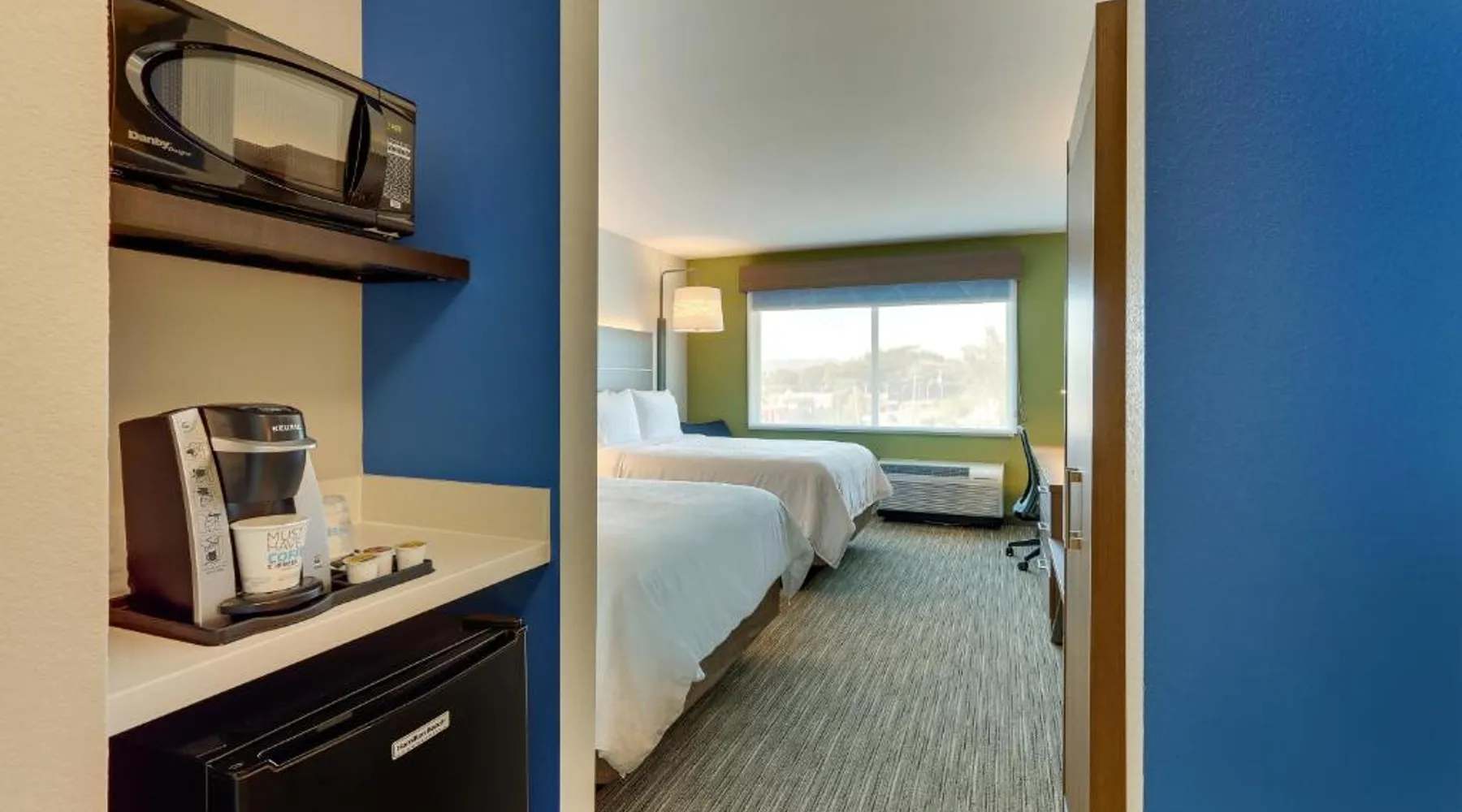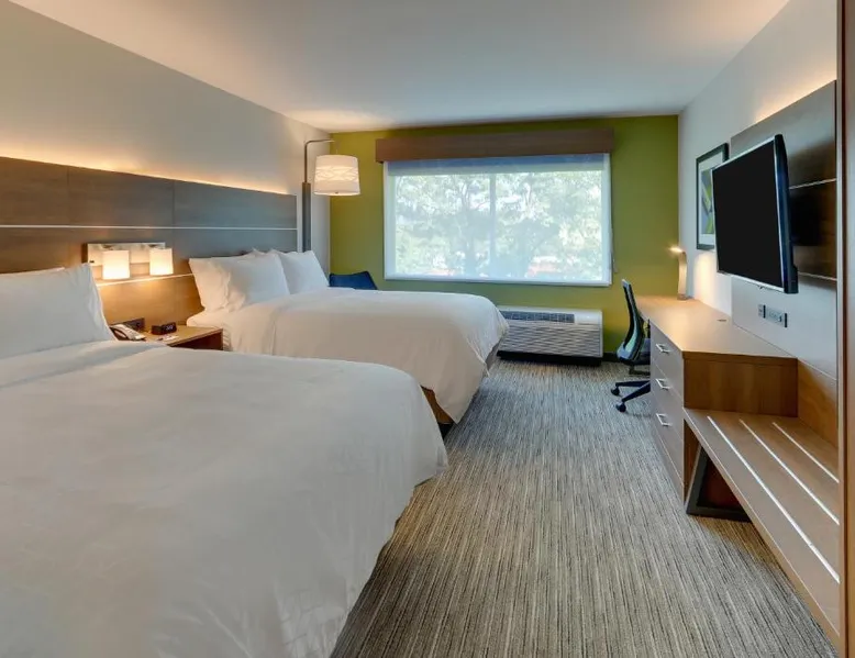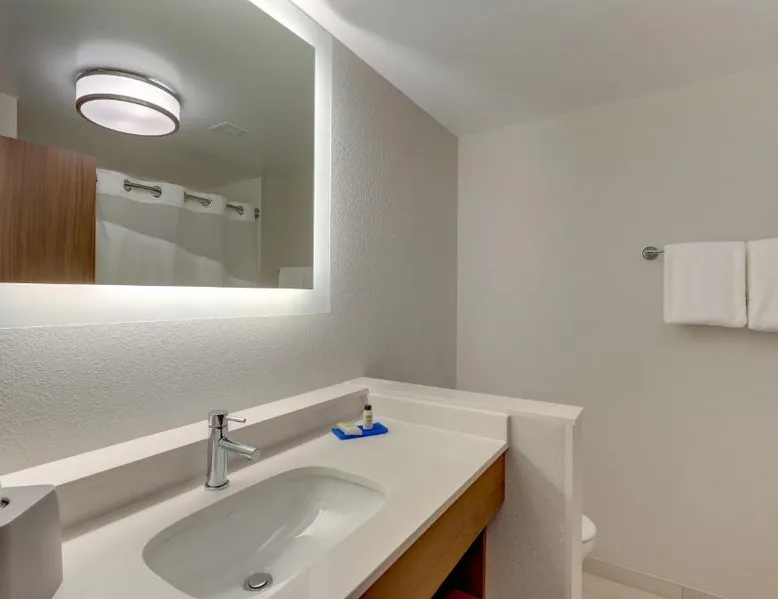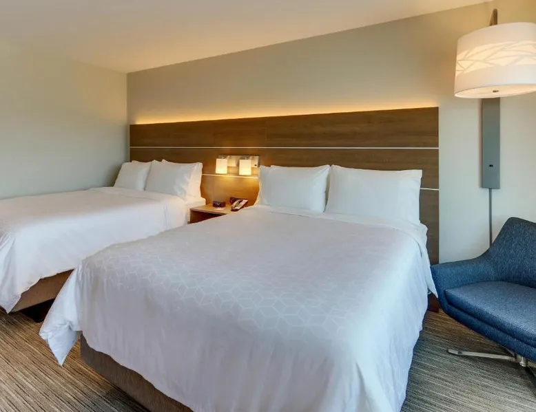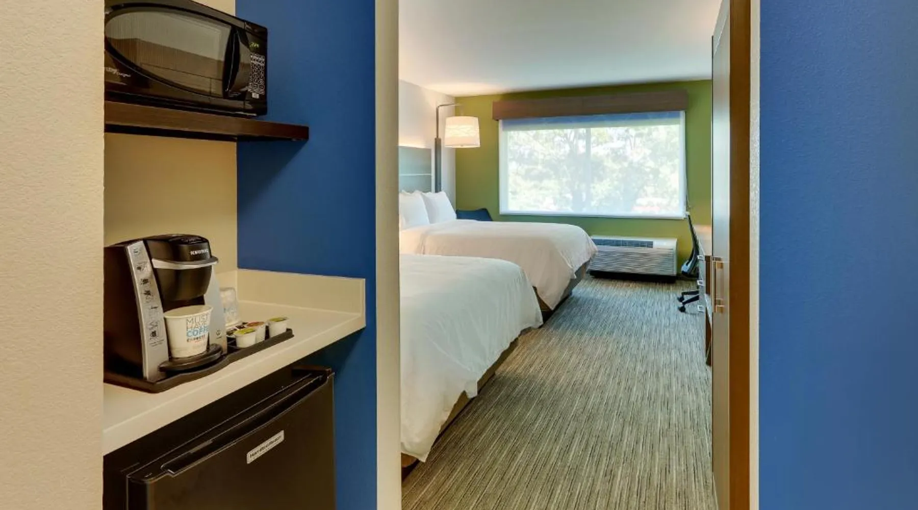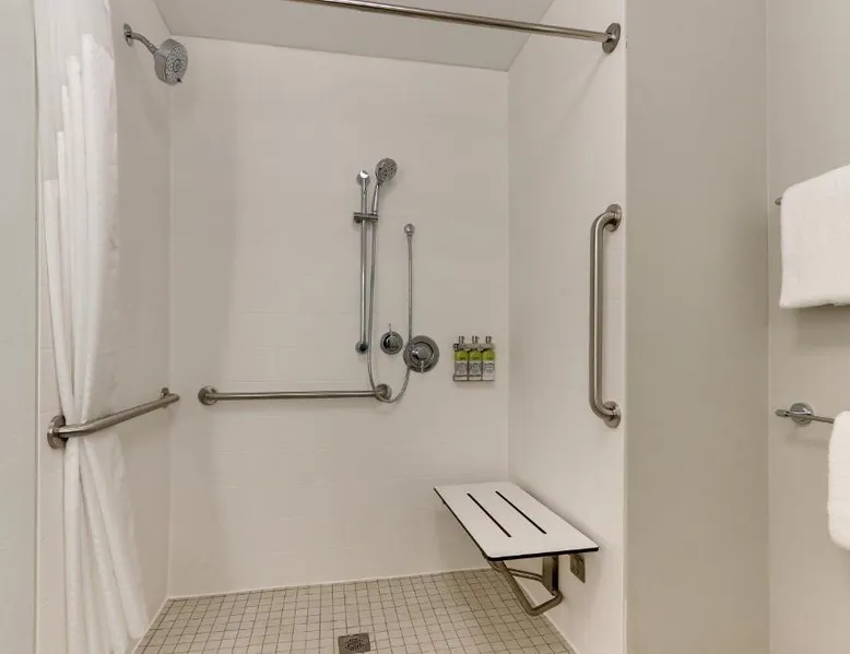 Comfortable Accommodations: Holiday Inn Express & Suites - Roanoke – Civic Center in Roanoke offers family rooms with air-conditioning, private bathrooms, and free WiFi. Each room includes a work desk, TV, and complimentary toiletries. Leisure Facilities: Guests can enjoy a saltwater swimming pool, indoor pool, and fitness center. Additional amenities include an outdoor fireplace, outdoor seating area, and a child-friendly buffet. Dining Options: A continental and American buffet breakfast is served daily, featuring warm dishes, fresh pastries, pancakes, and more. Convenient Location: Located 3.7 mi from Roanoke Airport, the hotel is a 7-minute walk from Civic Center and 1.2 mi from Science Museum of Western Virginia. Nearby attractions include Mill Mountain Zoo (5 mi) and National D Day Memorial (27 mi). The spacious double room offers air conditioning, a tea and coffee maker, as well as a private bathroom featuring a walk-in shower and a bath. The double room features a wardrobe, a safe deposit box, a carpeted floor, heating and a flat-screen TV with streaming services. The unit offers 1 bed.
