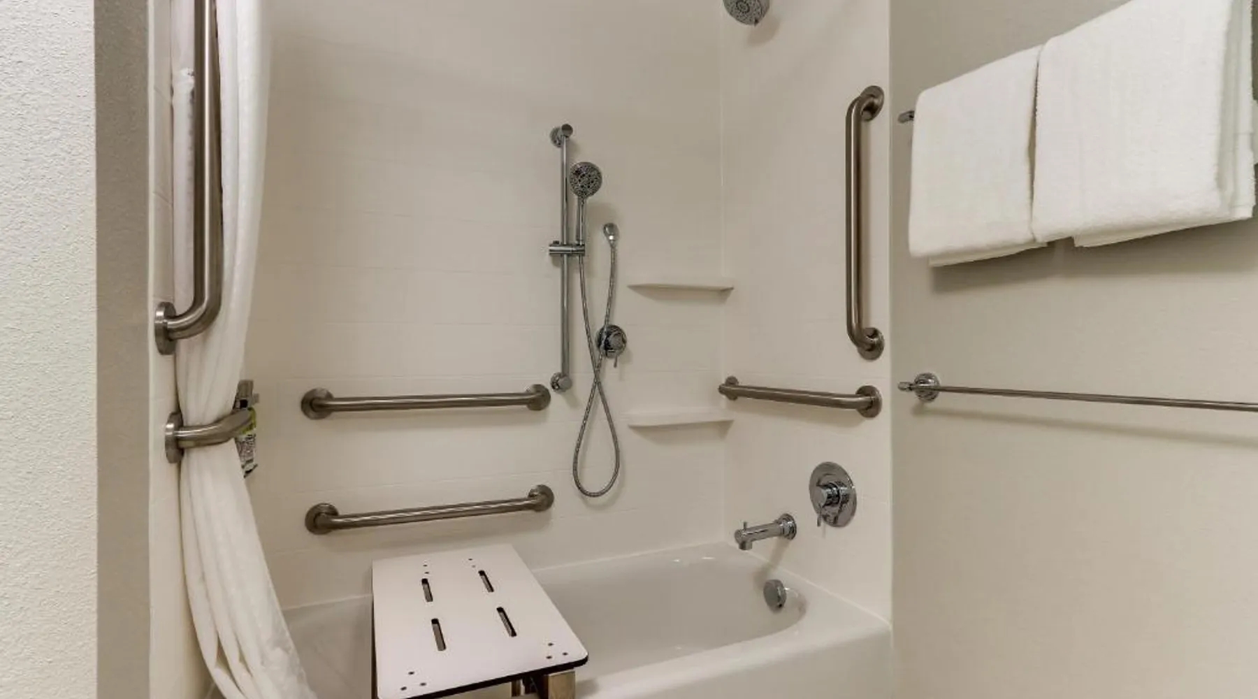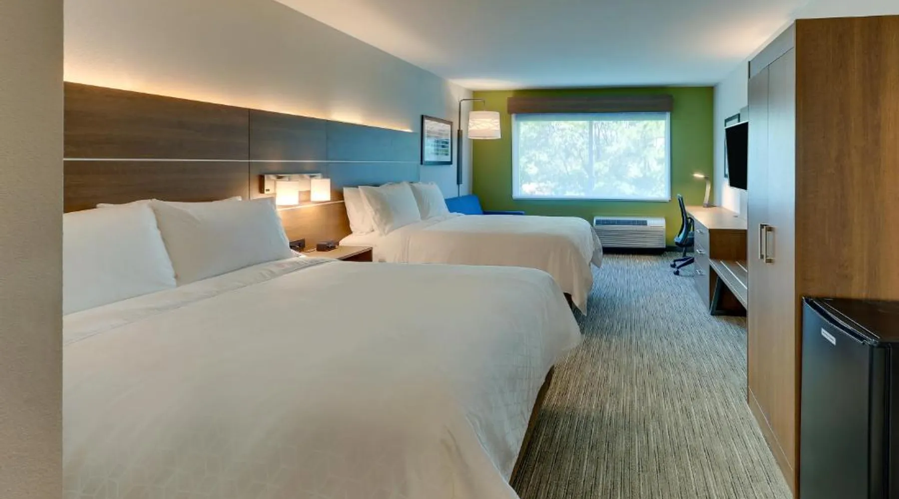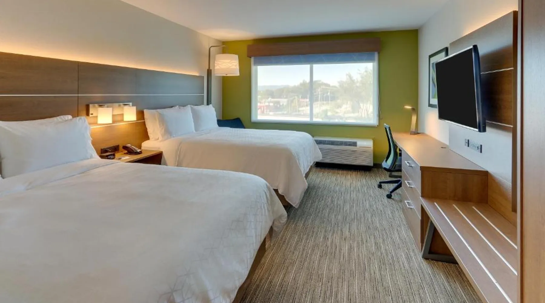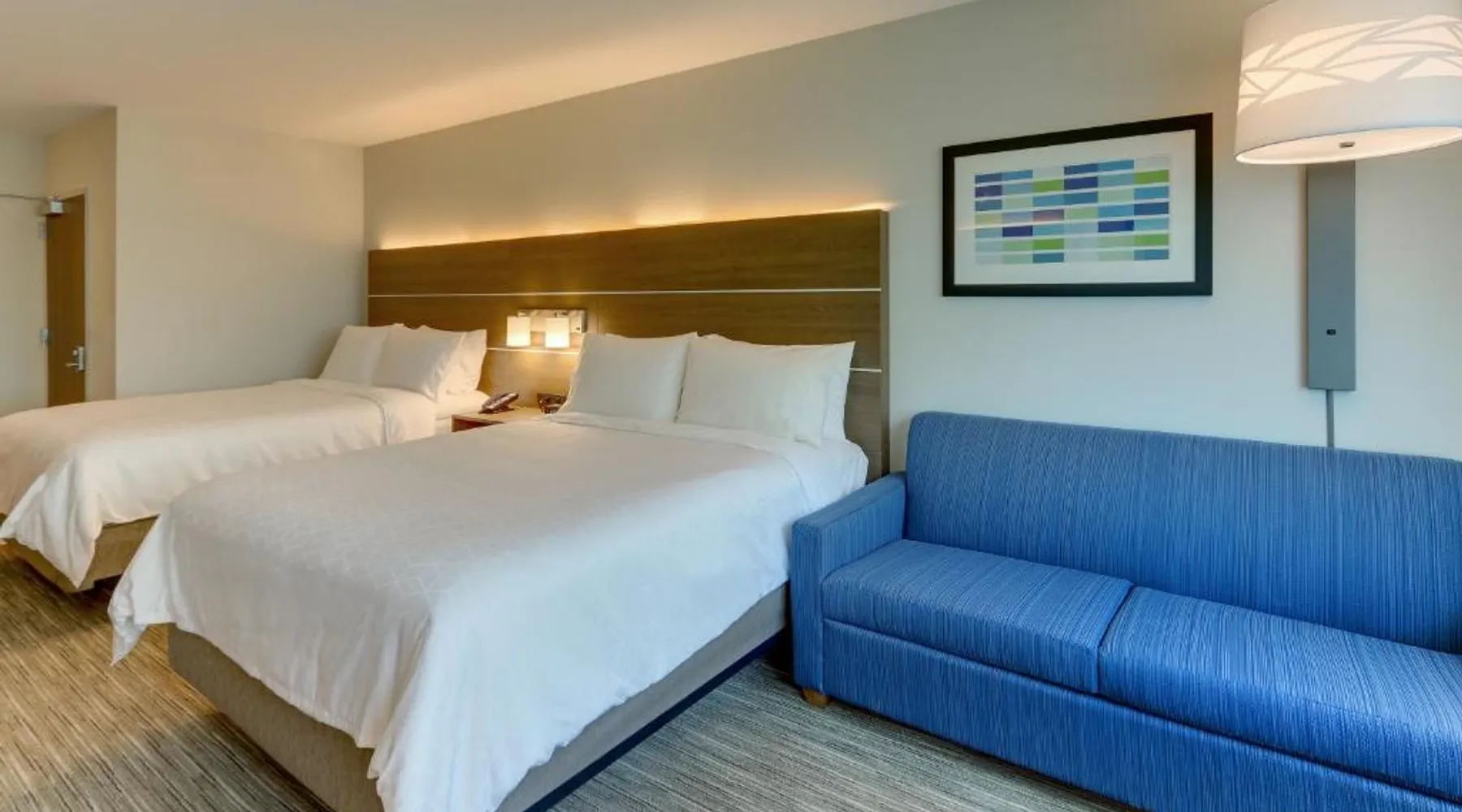 Comfortable Accommodations: Holiday Inn Express & Suites - Roanoke – Civic Center in Roanoke offers family rooms with air-conditioning, private bathrooms, and free WiFi. Each room includes a work desk, TV, and complimentary toiletries. Leisure Facilities: Guests can enjoy a saltwater swimming pool, indoor pool, and fitness center. Additional amenities include an outdoor fireplace, outdoor seating area, and a child-friendly buffet. Dining Options: A continental and American buffet breakfast is served daily, featuring warm dishes, fresh pastries, pancakes, and more. Convenient Location: Located 3.7 mi from Roanoke Airport, the hotel is a 7-minute walk from Civic Center and 1.2 mi from Science Museum of Western Virginia. Nearby attractions include Mill Mountain Zoo (5 mi) and National D Day Memorial (27 mi). The spacious double room offers air conditioning, a tea and coffee maker, as well as a private bathroom featuring a walk-in shower and a bath. The double room features a wardrobe, a safe deposit box, a carpeted floor, heating and a flat-screen TV with streaming services. The unit offers 1 bed.