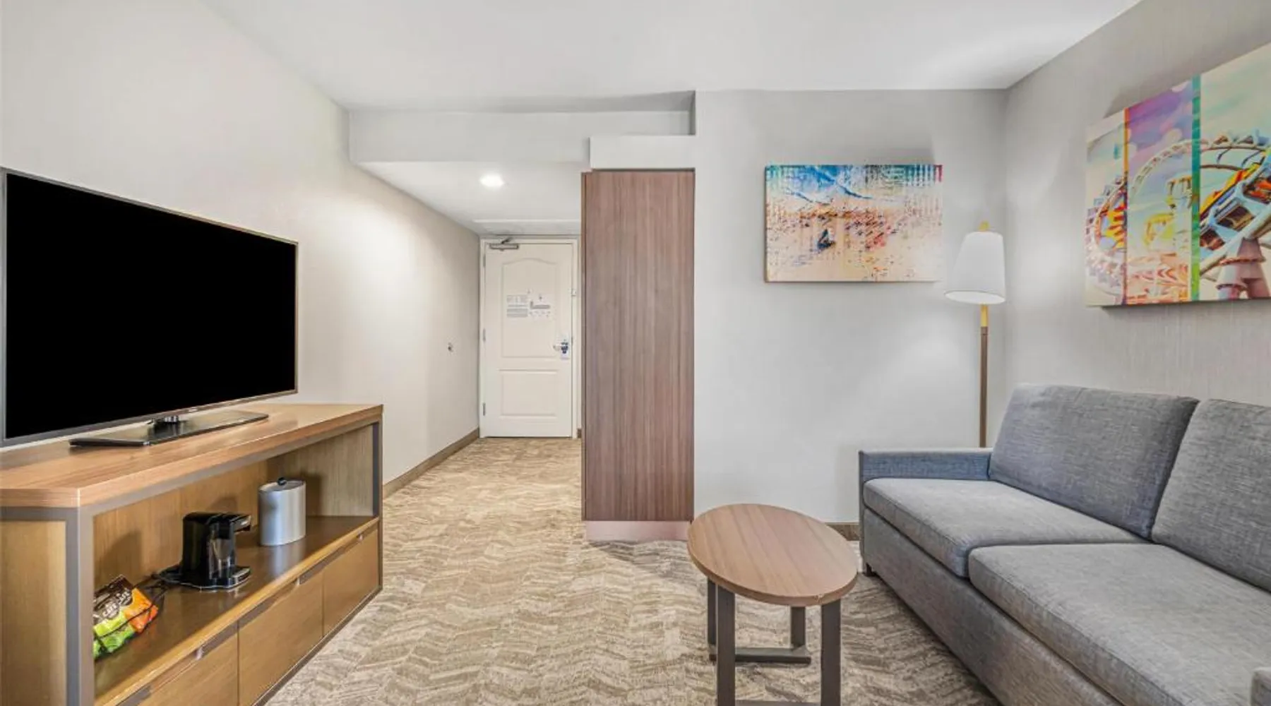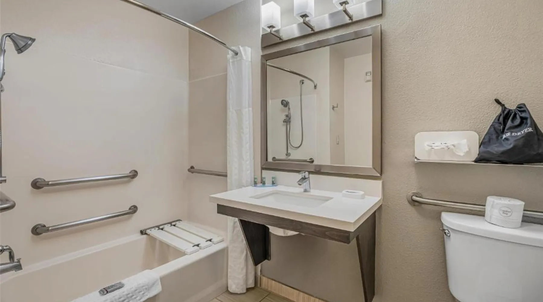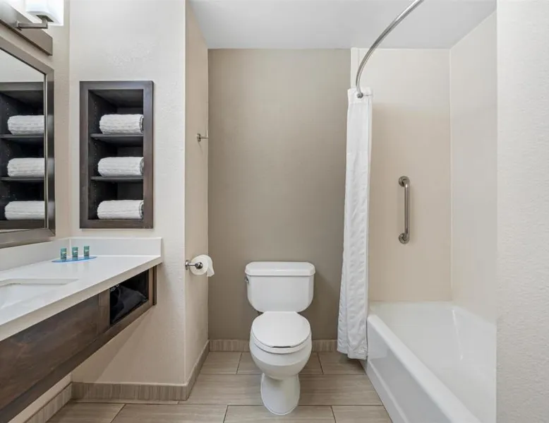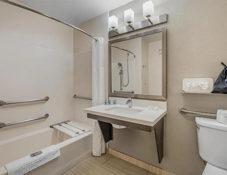 Offering outdoor pool and a restaurant, the Best Western Valencia/Six Flags Inn & Suites is 5 minutes’ drive to Six Flags Magic Mountain amusement park. Free Wi-Fi is provided in all rooms. A built in counter with a sink, cupboards full of tableware, a built in microwave, petite refrigerator and tea and coffee making facilities are provided at the Best Western Valencia/Six Flags Inn & Suites. The private bathroom features free toiletries and plush towels. An assortment of pastries, coffee and juice are offered in the daily continental breakfast. A fitness center and a business center are offered. Other facilities offered include meeting facilities, a ticket service and dry cleaning at the Best Western Valencia/Six Flags Inn & Suites. Los Angeles International Airport is 40 miles away. Westfield Valencia Town Center, featuring a variety of shops and restaurants is 5 minutes’ drive away. Disneyland Resort is 1 hours’ drive away from the Best Western Valencia/Six Flags Inn & Suites. The spacious double room features air conditioning, a tea and coffee maker, as well as a private bathroom boasting a bath and a hairdryer. The double room provides a wardrobe, a carpeted floor, heating and a flat-screen TV. The unit has 1 bed.