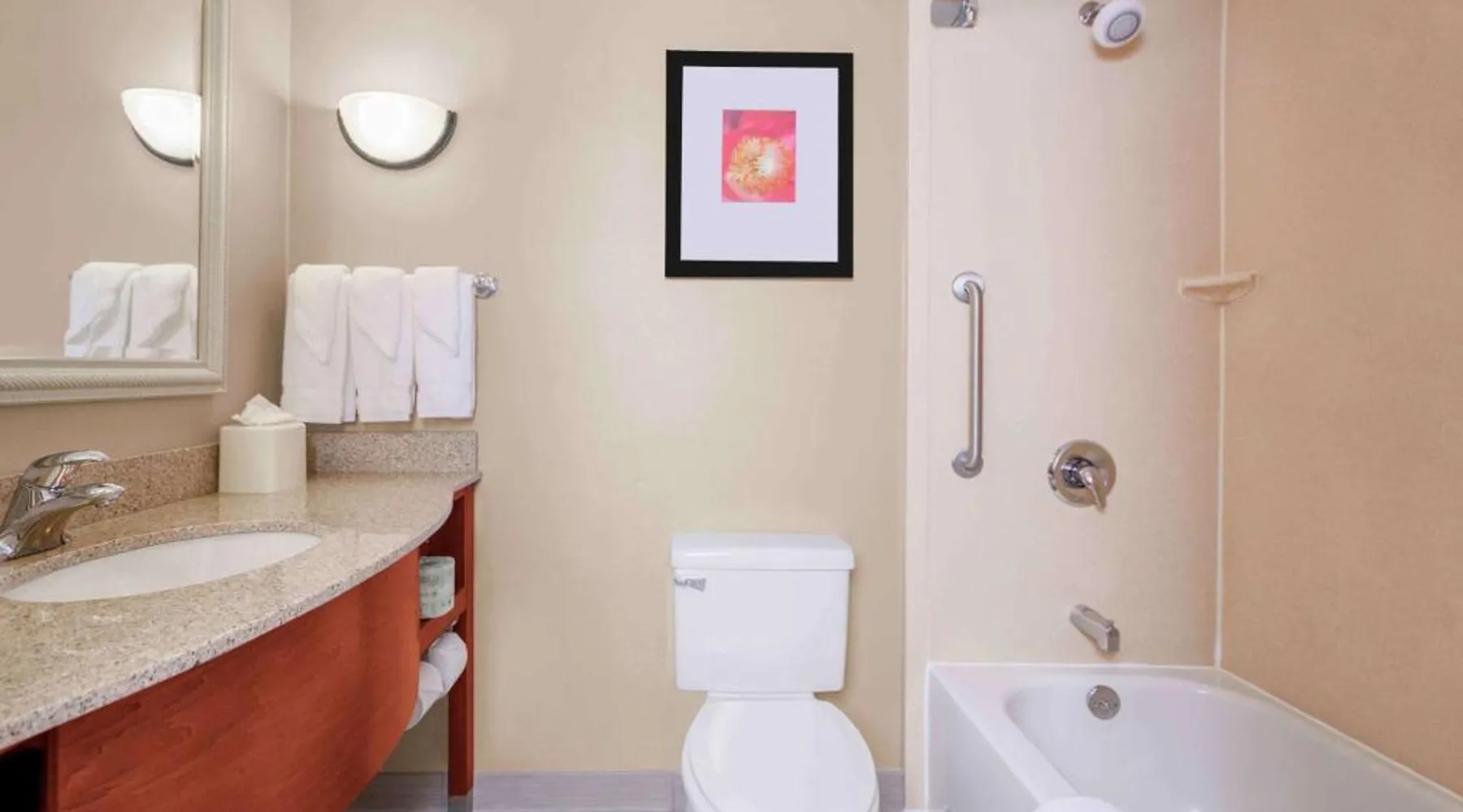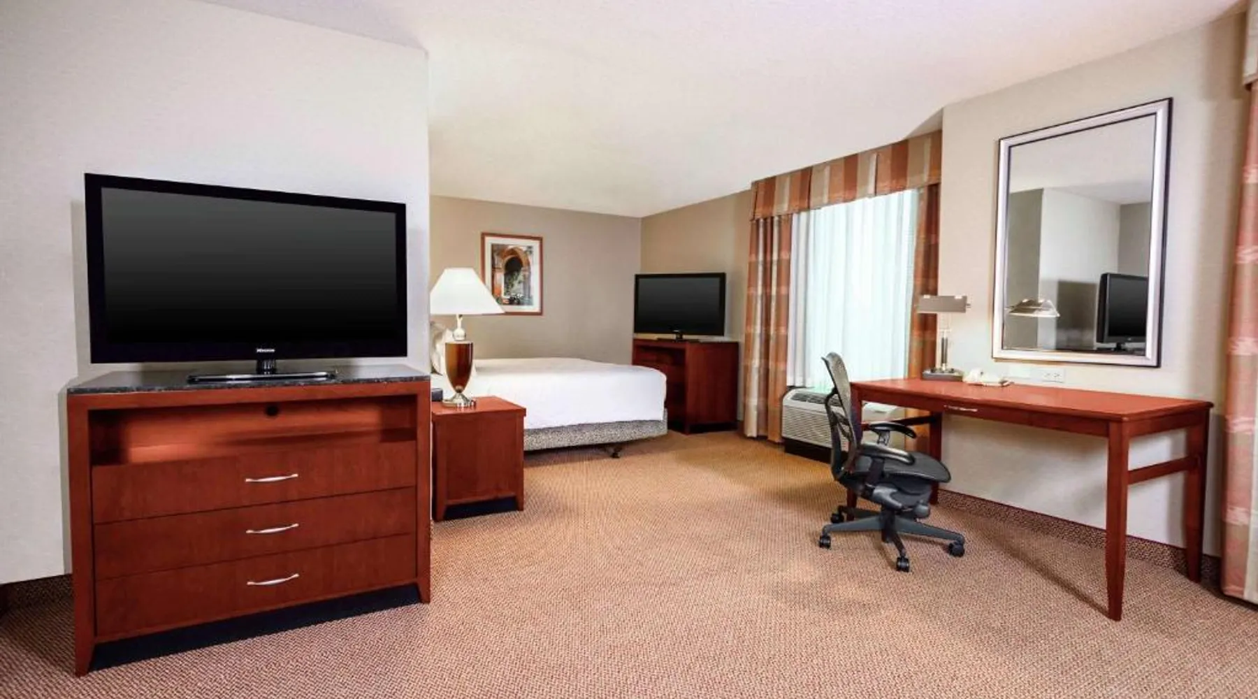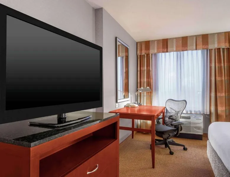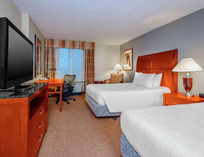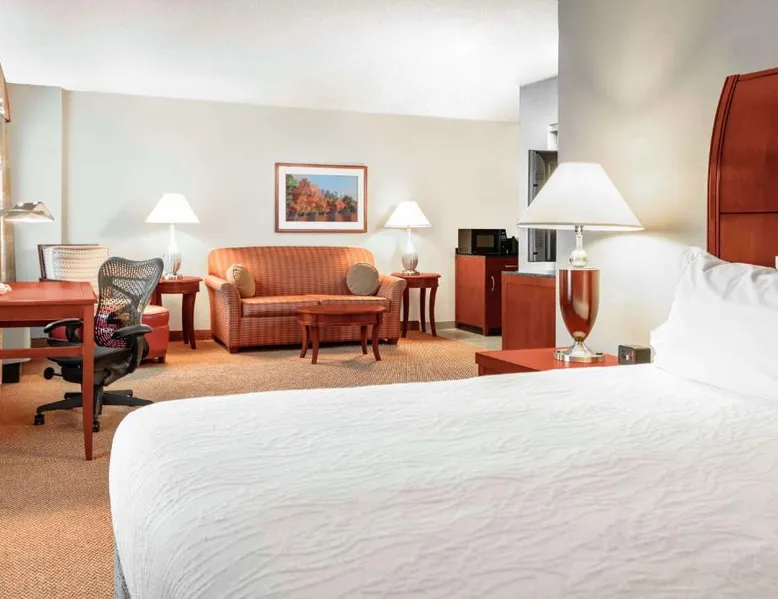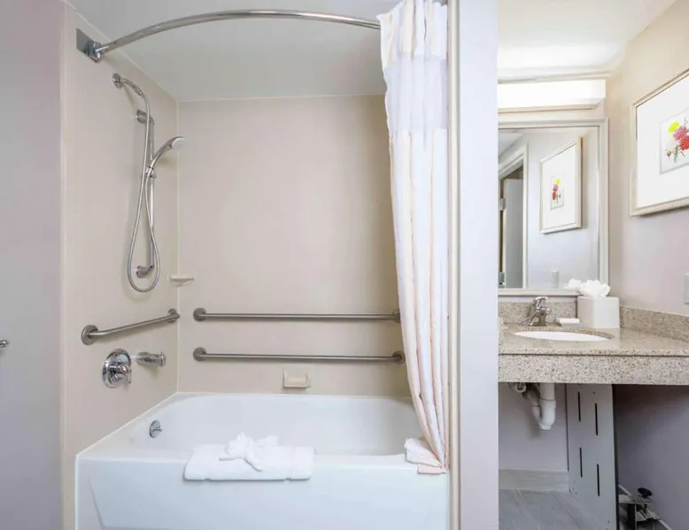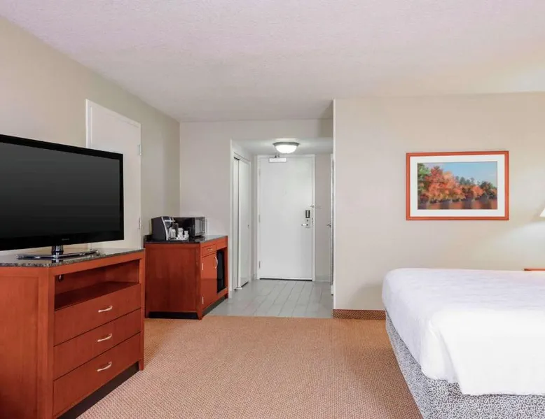 Comfortable Accommodations: Hilton Garden Inn Independence in Independence offers family rooms with air-conditioning, free WiFi, and modern amenities. Each room includes a work desk, refrigerator, and TV. Dining and Leisure: Guests can enjoy a family-friendly restaurant serving American cuisine in a modern ambiance. The hotel features a fitness center, indoor swimming pool, and hot tub. Free on-site parking is available. Convenient Location: Located 34 mi from Kansas City International Airport, the hotel is near attractions such as Kauffman Stadium (8.7 mi) and Union Station Kansas City (15 mi). Guests appreciate the convenient location and excellent service. The room has a visual alarm, and notification devices for the doorbell or door knock and incoming telephone calls.
