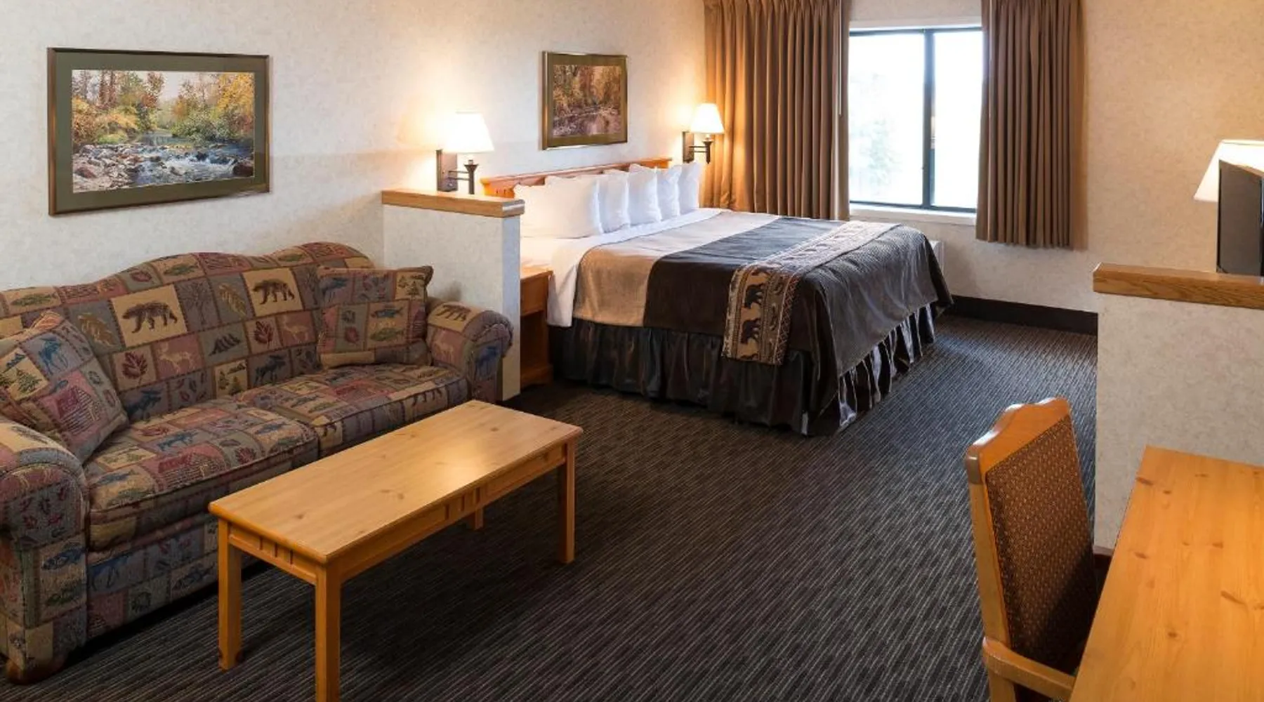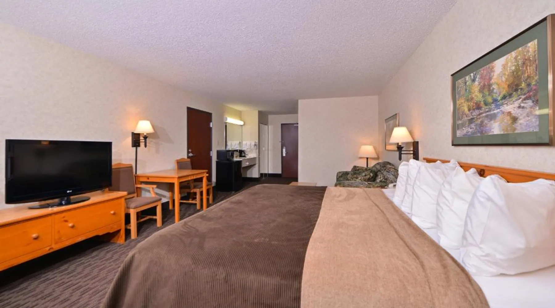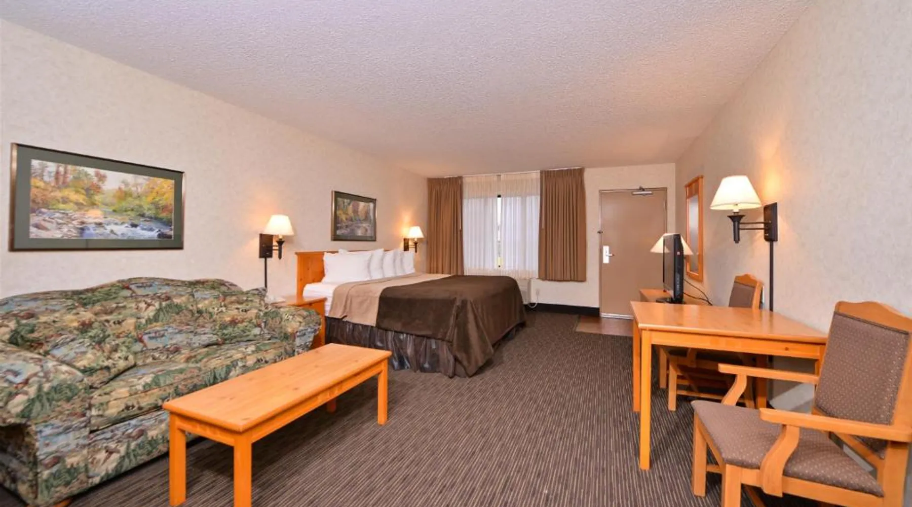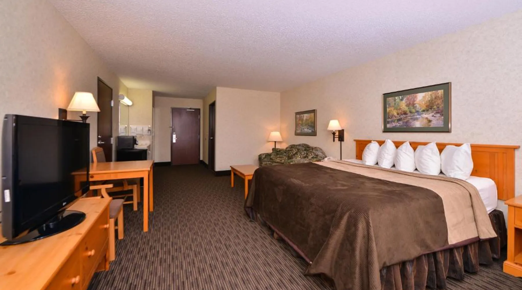 Just off Interstate 90 and less than 2 miles from the Dakota Discover Museum, this Mitchell hotel features guest rooms with free Wi-Fi and 37-inch flat-screen TVs. A complimentary continental breakfast is served each morning. Tea and coffee-making facilities, a refrigerator and a microwave are provided in all rooms at Kelly Inn and Suites Mitchell. Ironing facilities and a hairdryer are also provided in each guest room. Guests can enjoy a swim in the indoor pool or workout in the fitness center at Mitchell Kelly Inn and Suites. A laundromat and a business center are also available on site. The Corn Palace is an 8-minute drive from this South Dakota hotel. The Mitchell Prehistoric Indian Village is 5 miles from the property. Offering free Wi-Fi and a 37-inch flat-screen cable TV, this room is equipped with tea and coffee-making facilities, a refrigerator and a microwave.